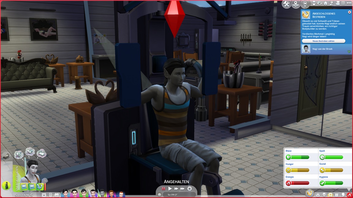 Nagi stellt fest, dass er Fitness mag. Mira treibt ihren Sohn ebenfalls für eine Kerbe aufs Band.