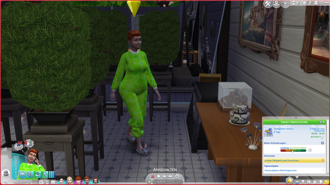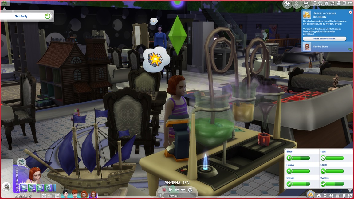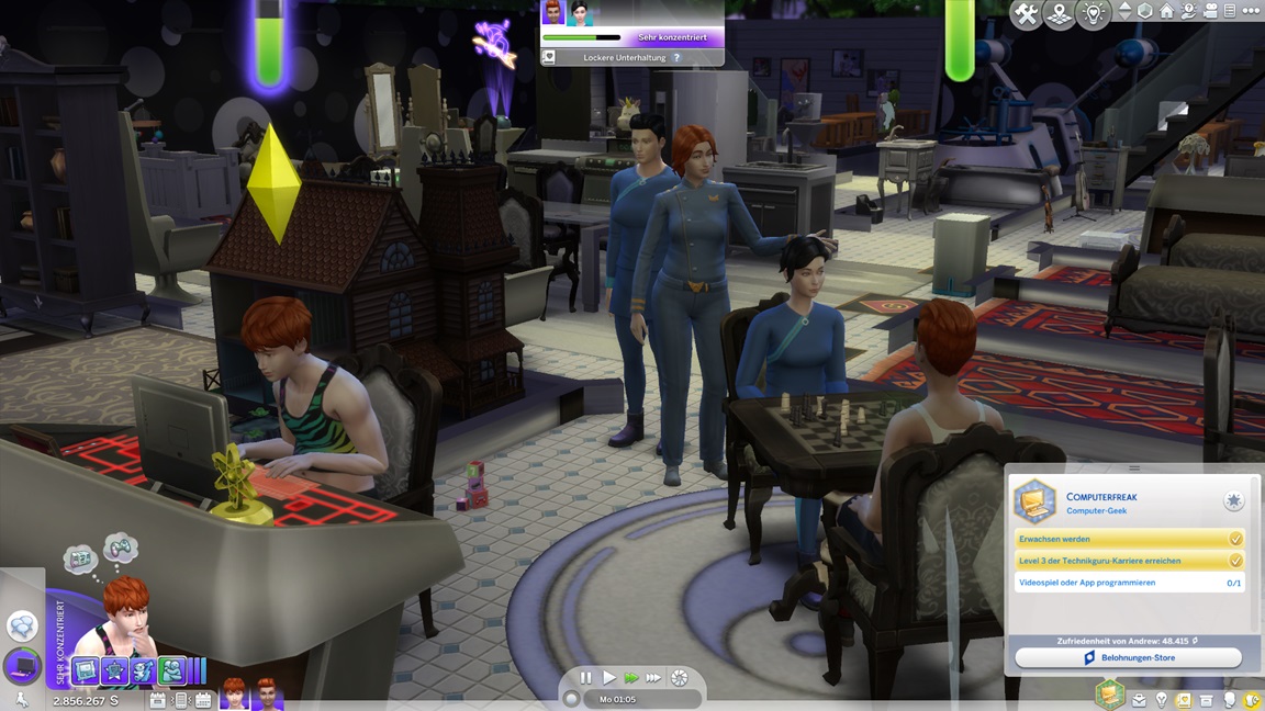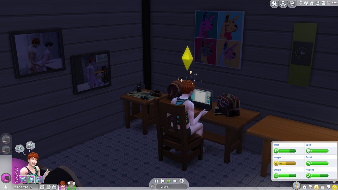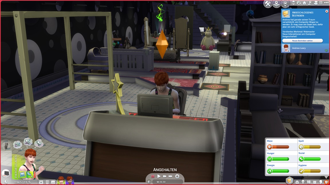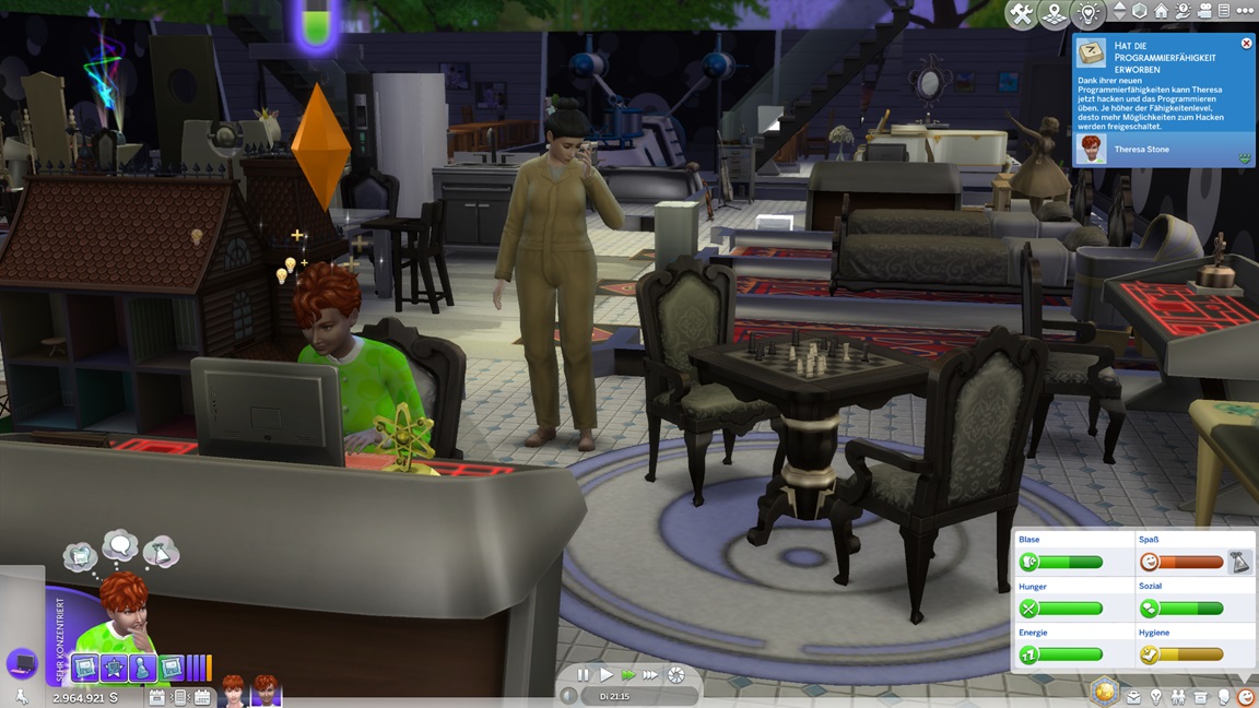 Er schafft sich dafür in seinem Zimmer einen passenden Arbeitsplatz, ohne sich daran zu erinnern, dass er die Fertigkeit bereits maximierte.
