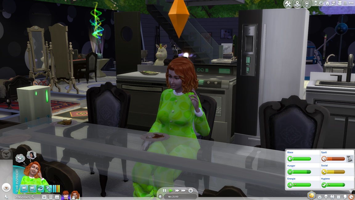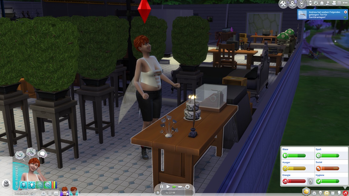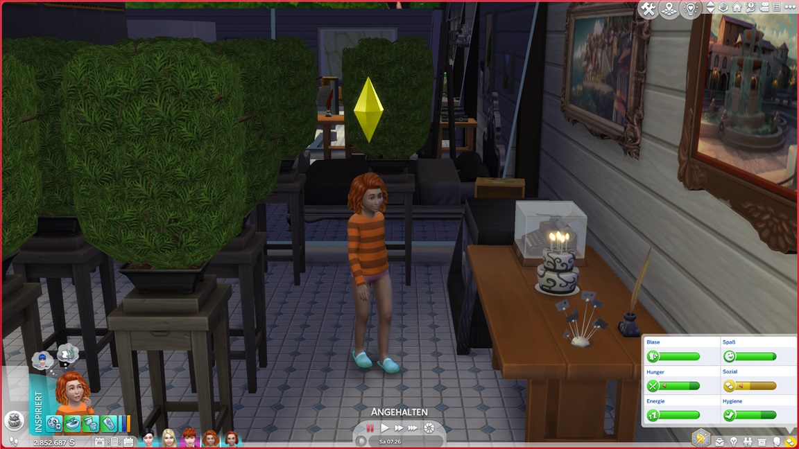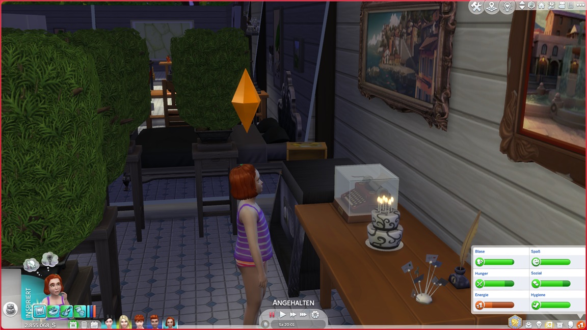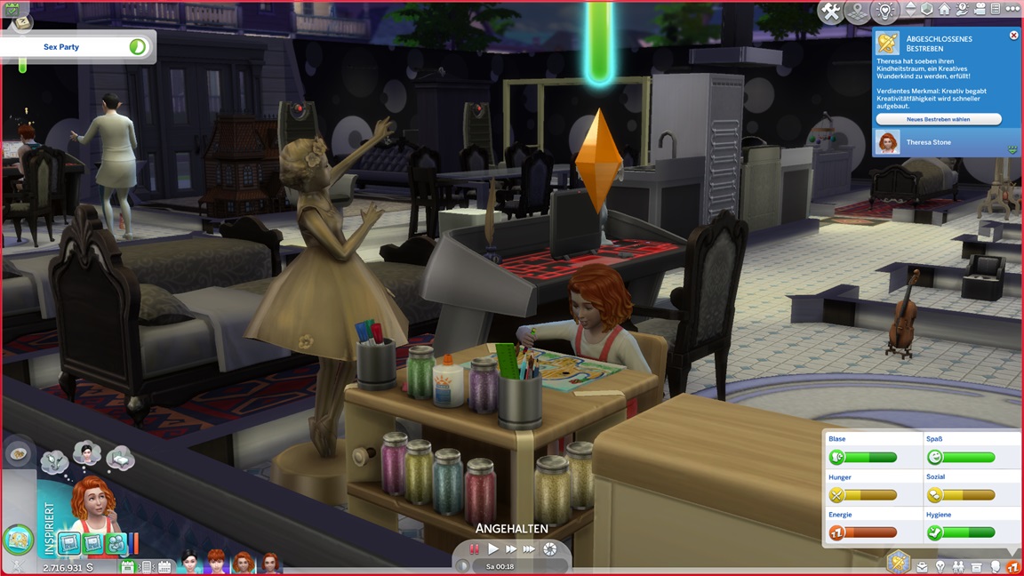 Theresa lässt sich von den Denkblasen noch von einem Umweg über die Leinwand überzeugen, stellt direkt ihre Liebe für Malerei fest, und tritt dann vor den Kuchen.