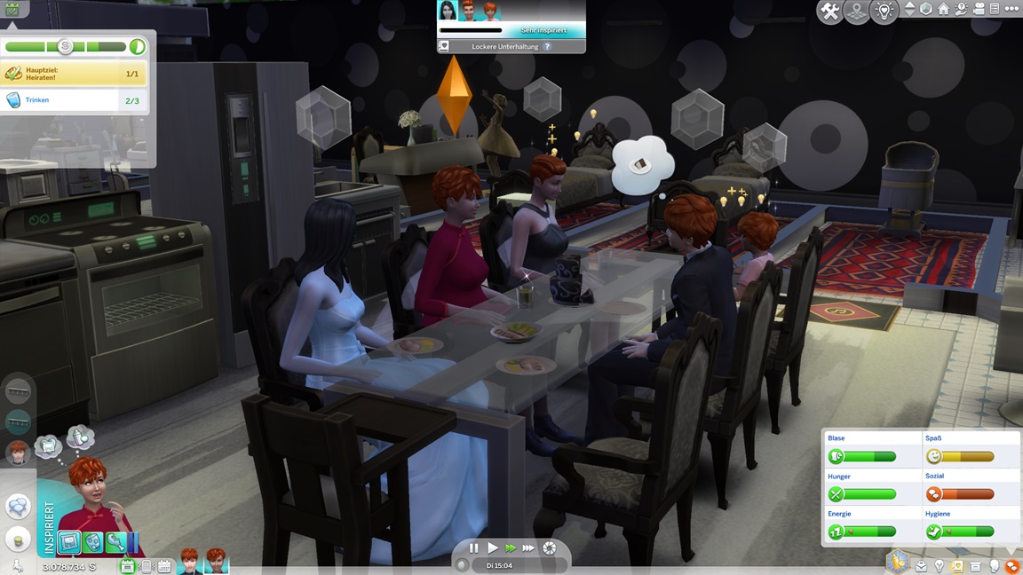 Theresa absolviert direkt ihre "drei Getränke während einer Veranstaltung zubereiten"-Forderung und stellt fest, dass sie Mixen mag. Andrew muss sich um die eigene Torte kümmern.