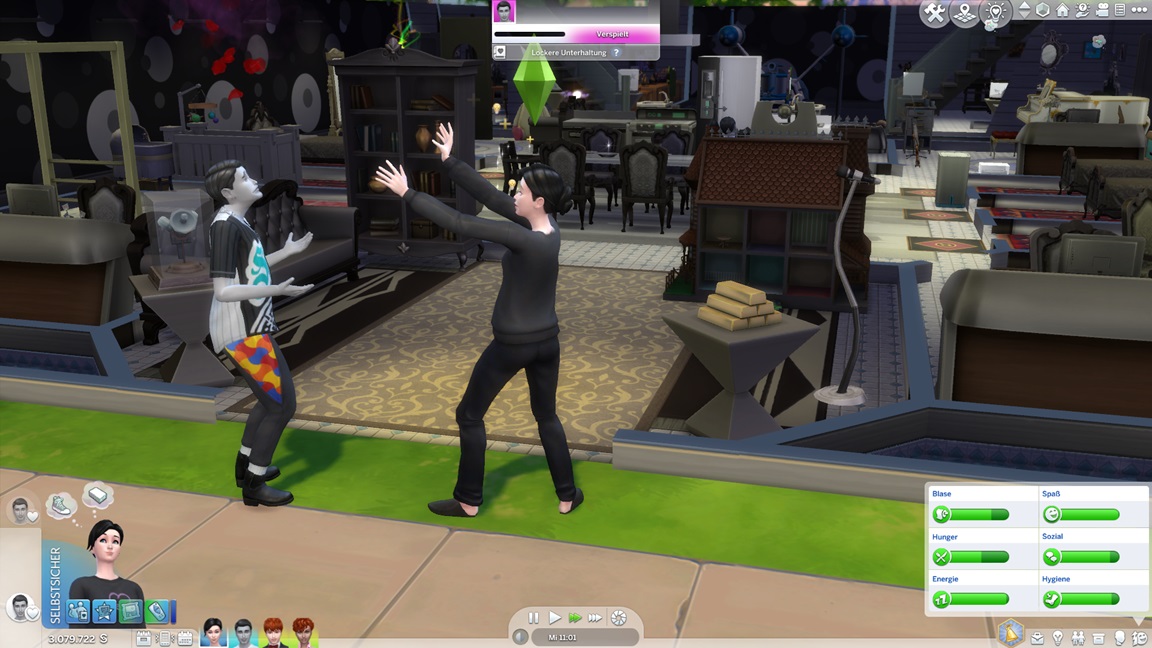 Er hilft ihr dabei, die Bilder abzuschließen, und gemeinsam plündern sie den Fundus für Einrichtungen. Sie wissen nicht, wieviele Kinder dieser Feier entspringen werden - sie war auf Swingen eingestellt -, doch sie kamen an und sind bereit.