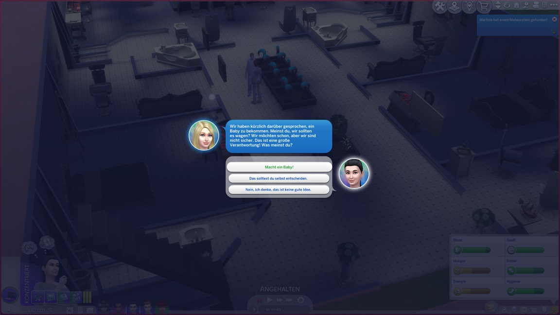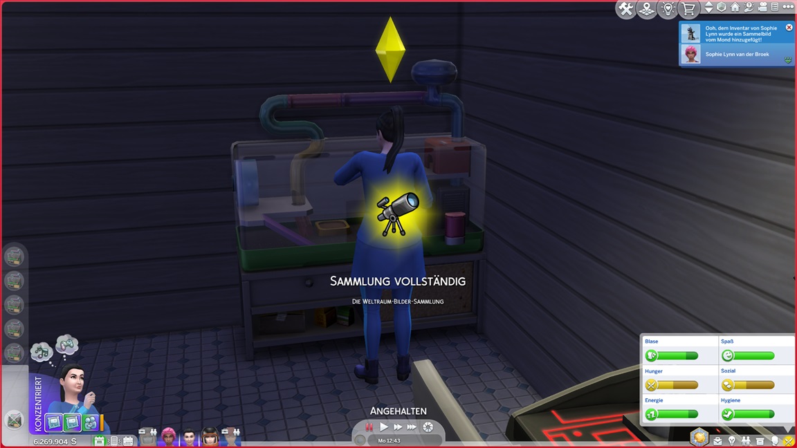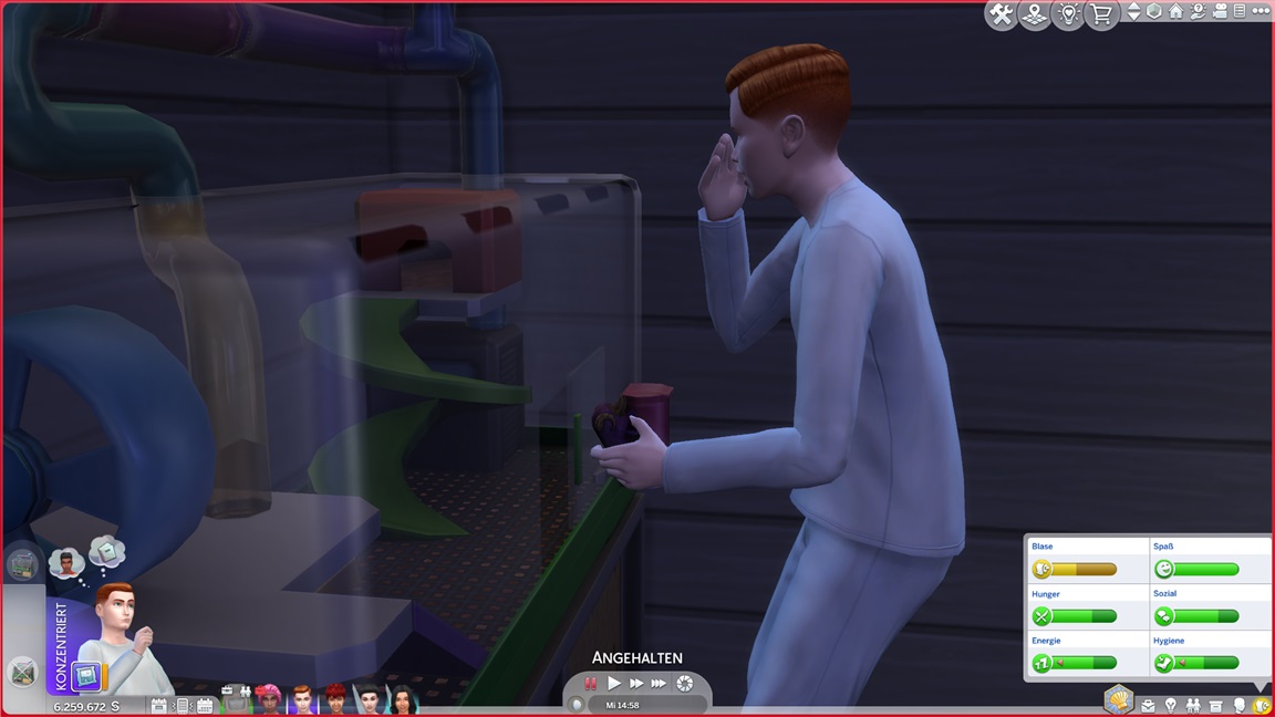 Sie treten auf der Stelle. In letzter Zeit bemühten sie sich intensiv darum, die fehlenden beiden Aliens zu finden, kamen aber nicht weiter. Die Sammelei tröpfelt naturgemäß nur langsam dahin. Der nächste Plan besteht darin, Pflanzen und Fische einmal zu micromanagen.