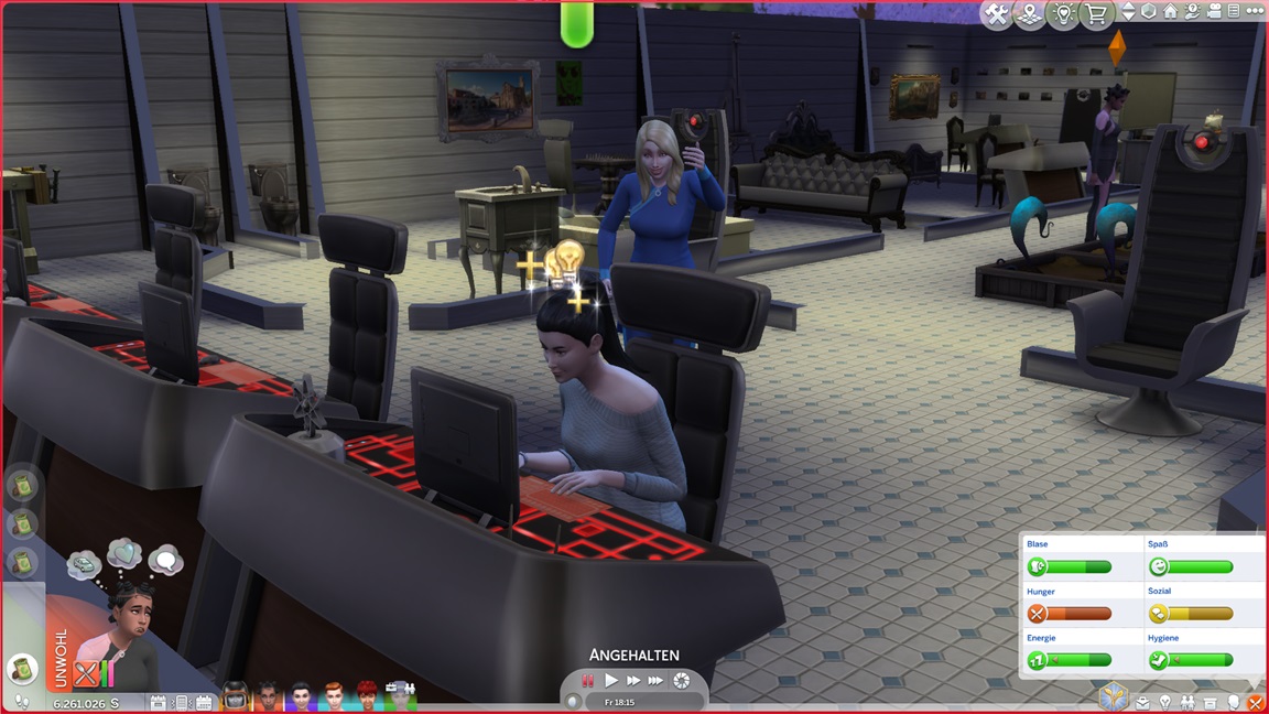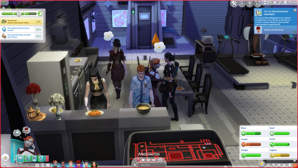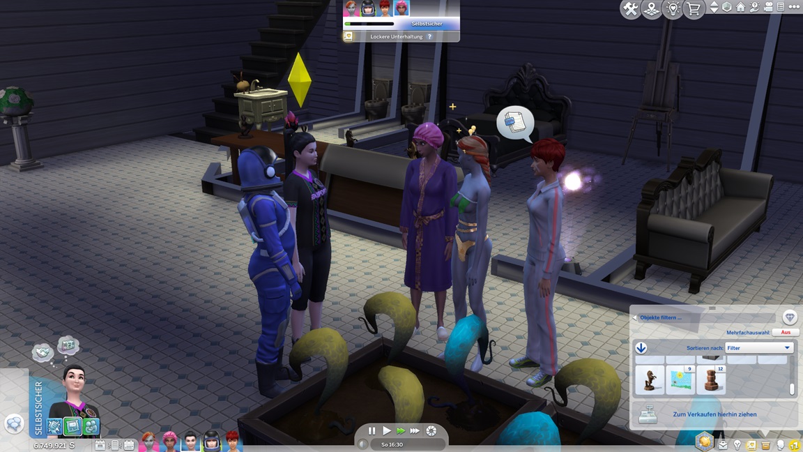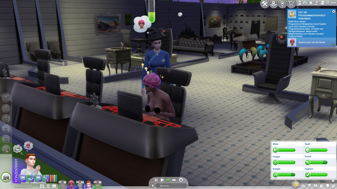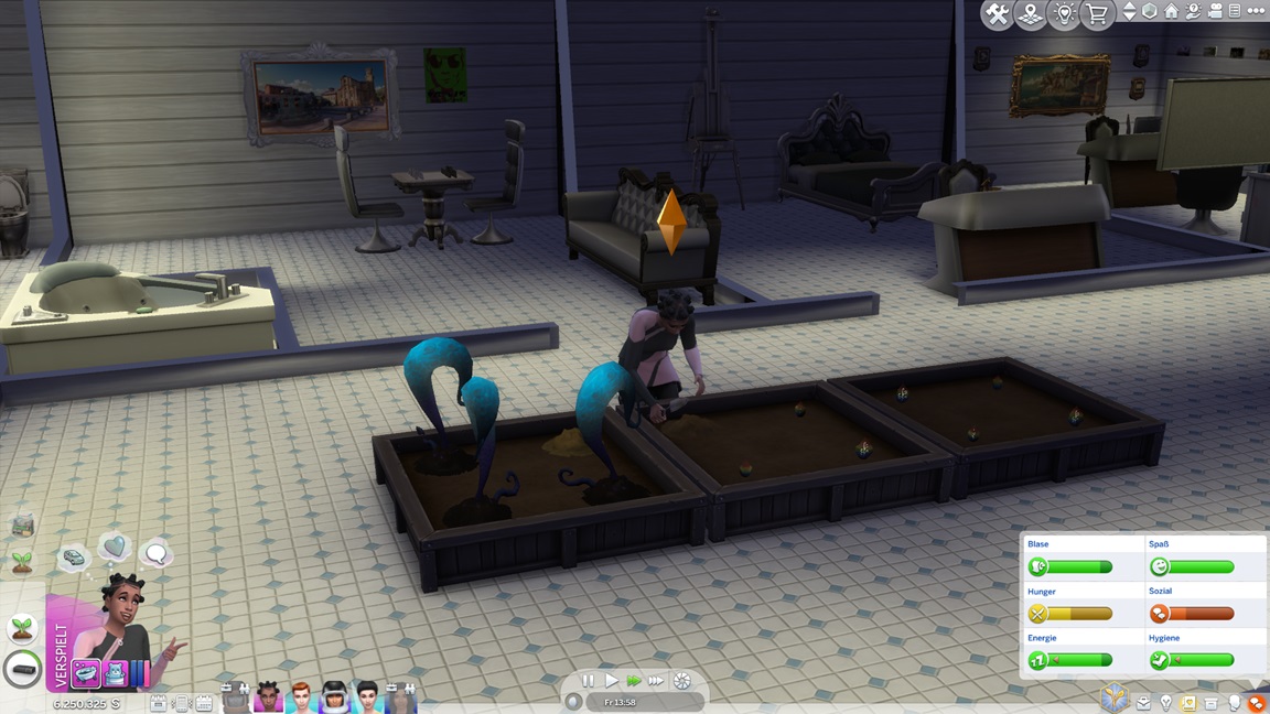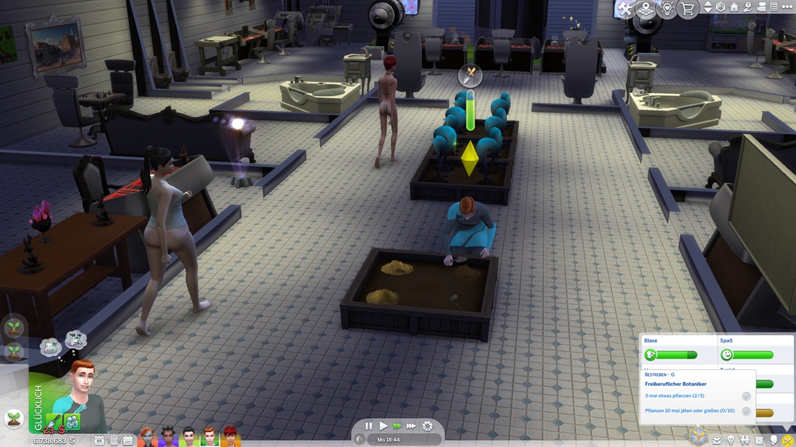 Jaslene stellt beim Pflegen der Alienpflanzen fest, dass sie Gartenarbeit mag. Mizuko verführt Tina, und da Adina gerade unter Einsamkeit leidet, lasse ich sie beispringen.