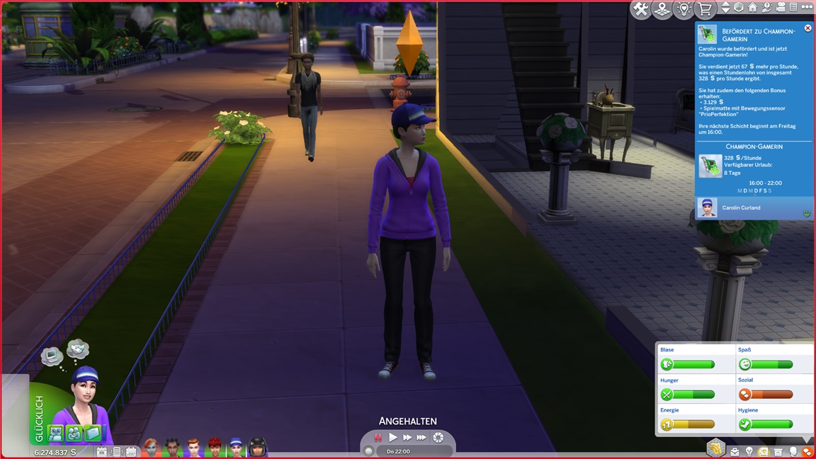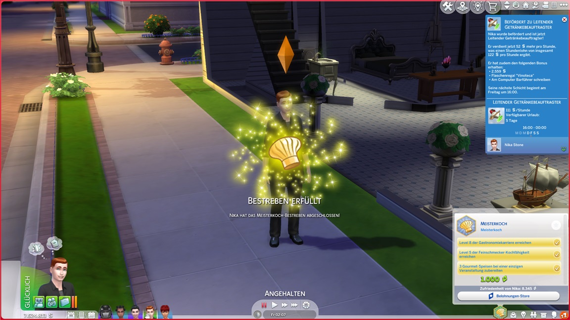 Um einige Punkte bereits abzuhaken, übernimmt Nika zeitweise das Gärtnerbestreben, während er beim Koch nur noch auf eine Beförderung wartet.