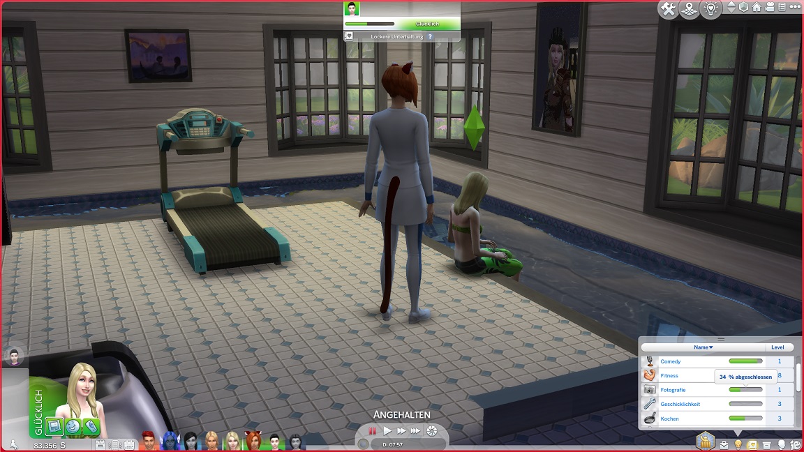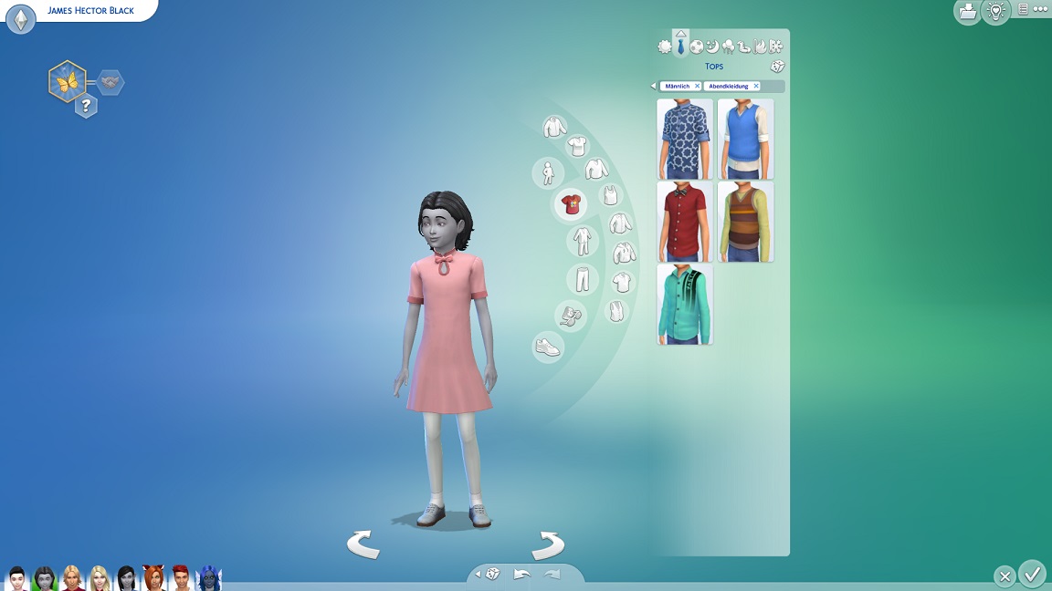 In dieser Phase wurde mir mein Cast zu eintönig, und ich beschloss, diesen noch einmal er erweitern. So erstellte ich einen weiteren Haushalt mit einem erwachsenen Sim vom Band und der Teenagerin Vij, die ich direkt in den Tannhuber-Haushalt umziehen ließ. (Dirk führte Christinas Namen weiter.)