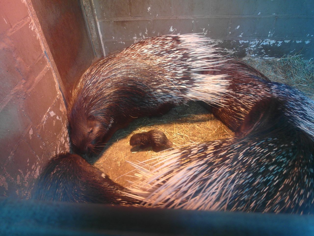Eine unauffällige Scheibe, man guckt durch Zufall rein und entdeckt die Stachelschweinbabies. In etwa hamstergroß und superniedlich!