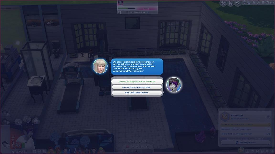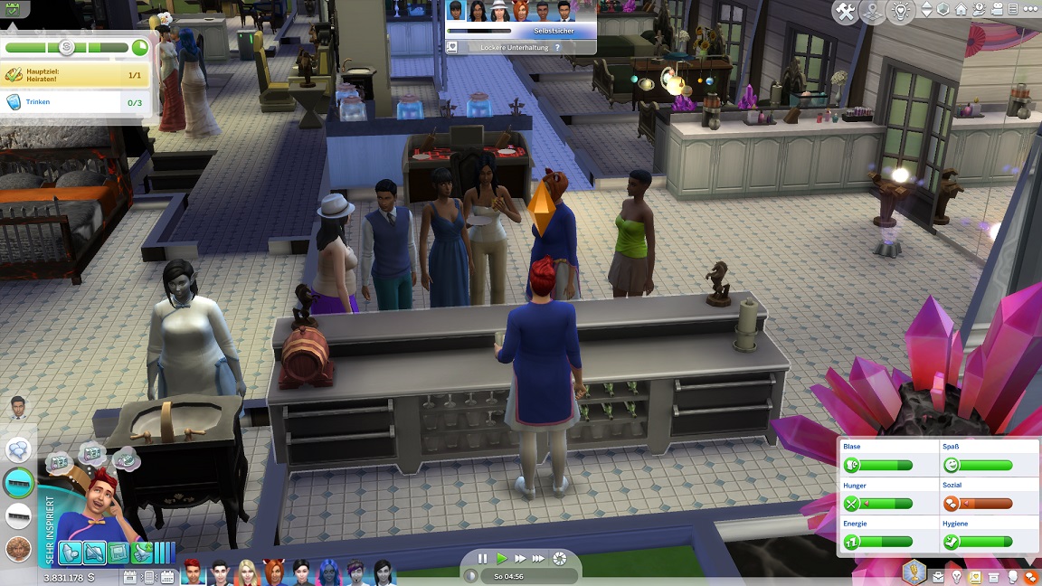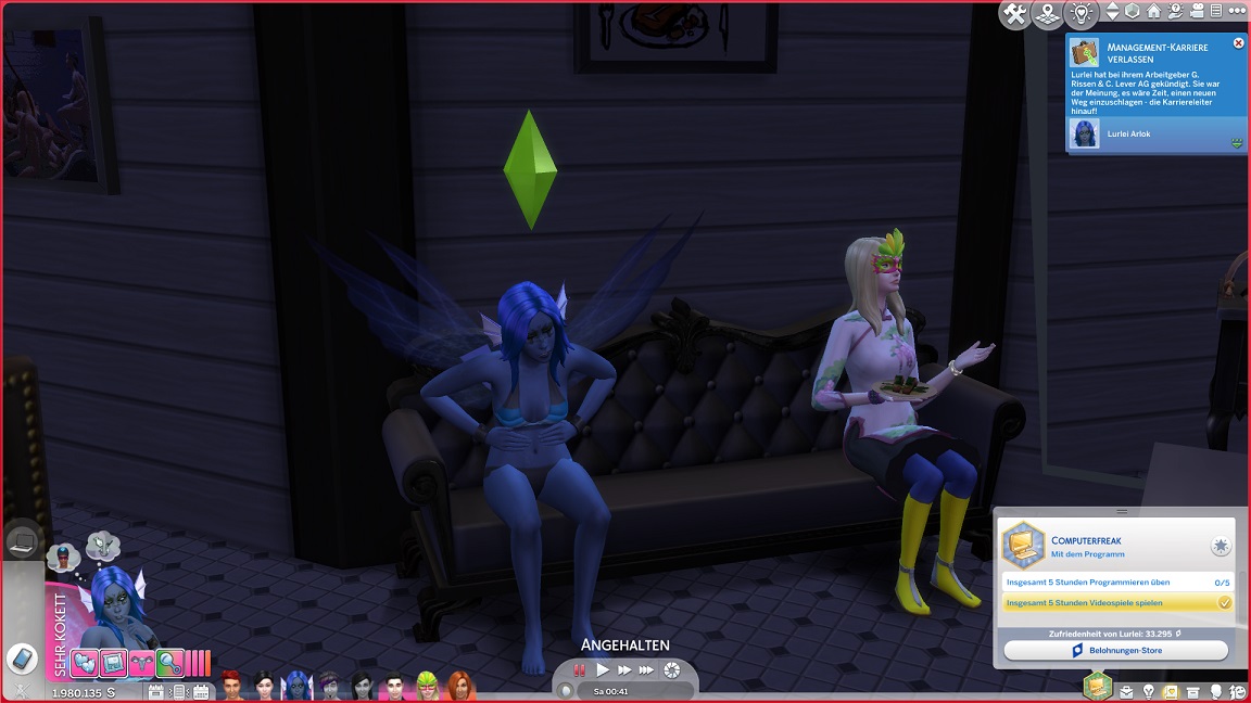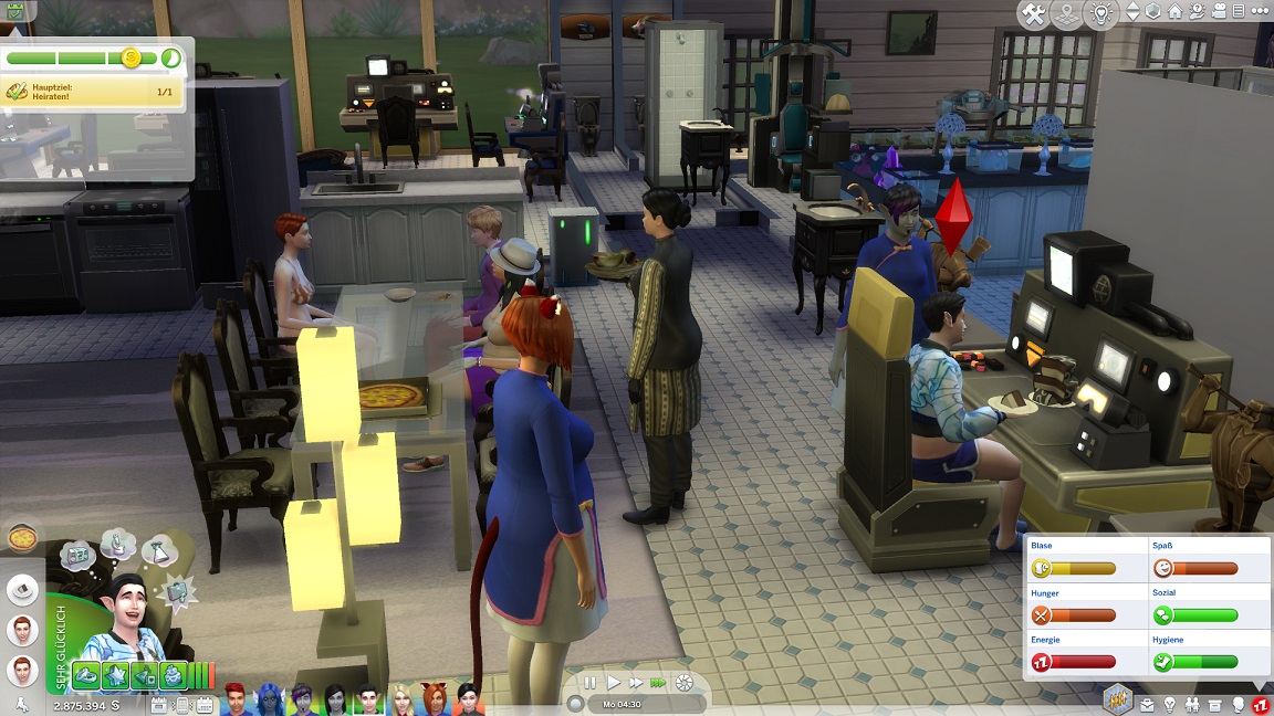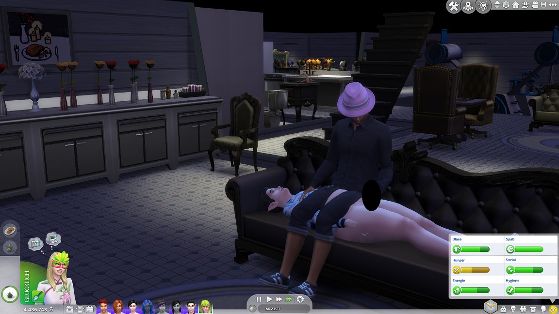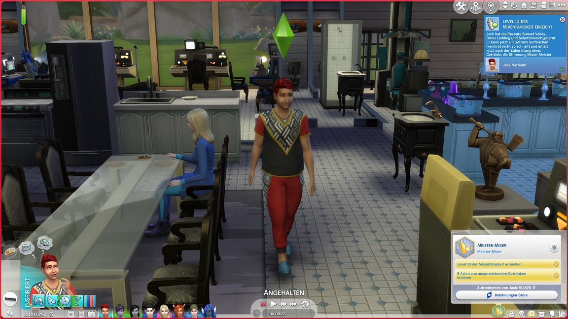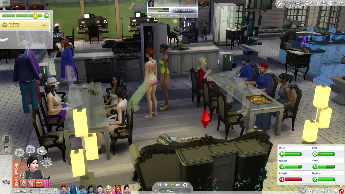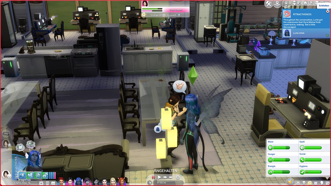 Artjom lädt einige von Renas Kindern zu sich ein, da er herausfinden möchte, ob er verkuppelte Sims in Richtung Verlobung schicken kann (soviel ich weiß, geht es tatsächlich nicht). Natürlich spricht er auch ein Kompliment über ihre Garderobe aus.