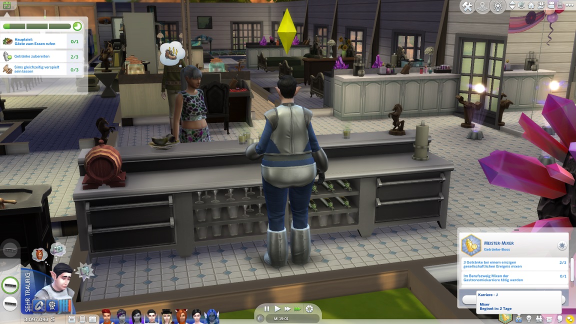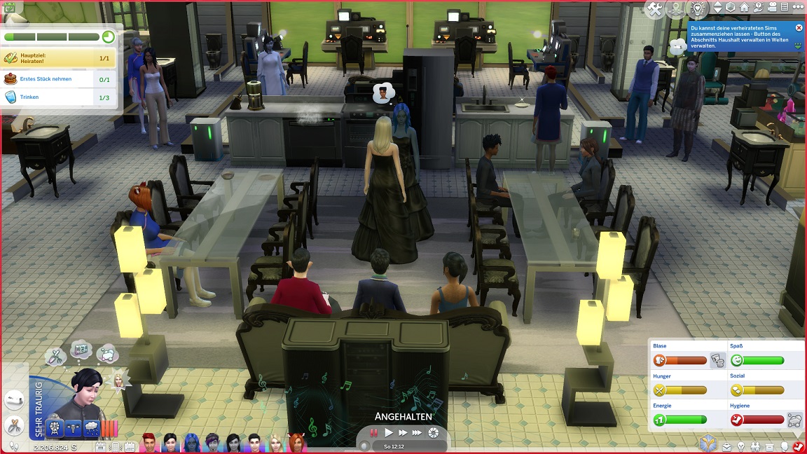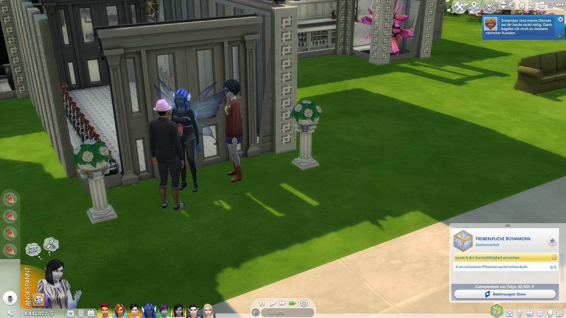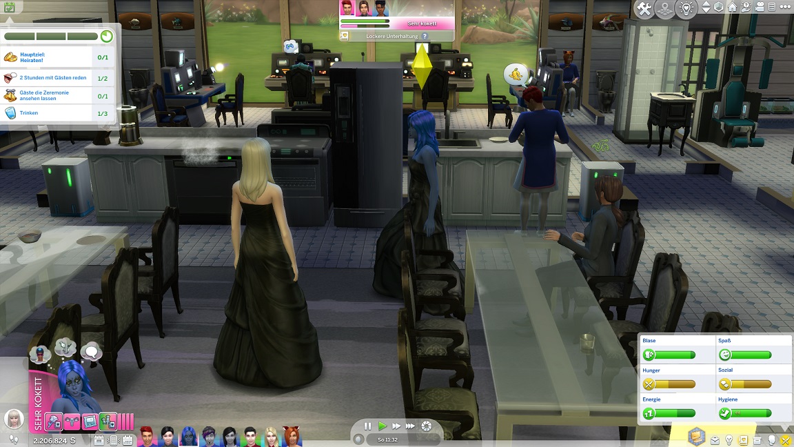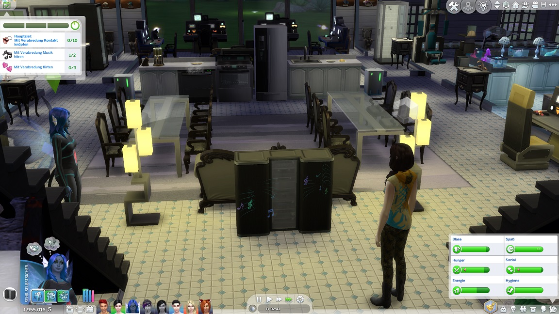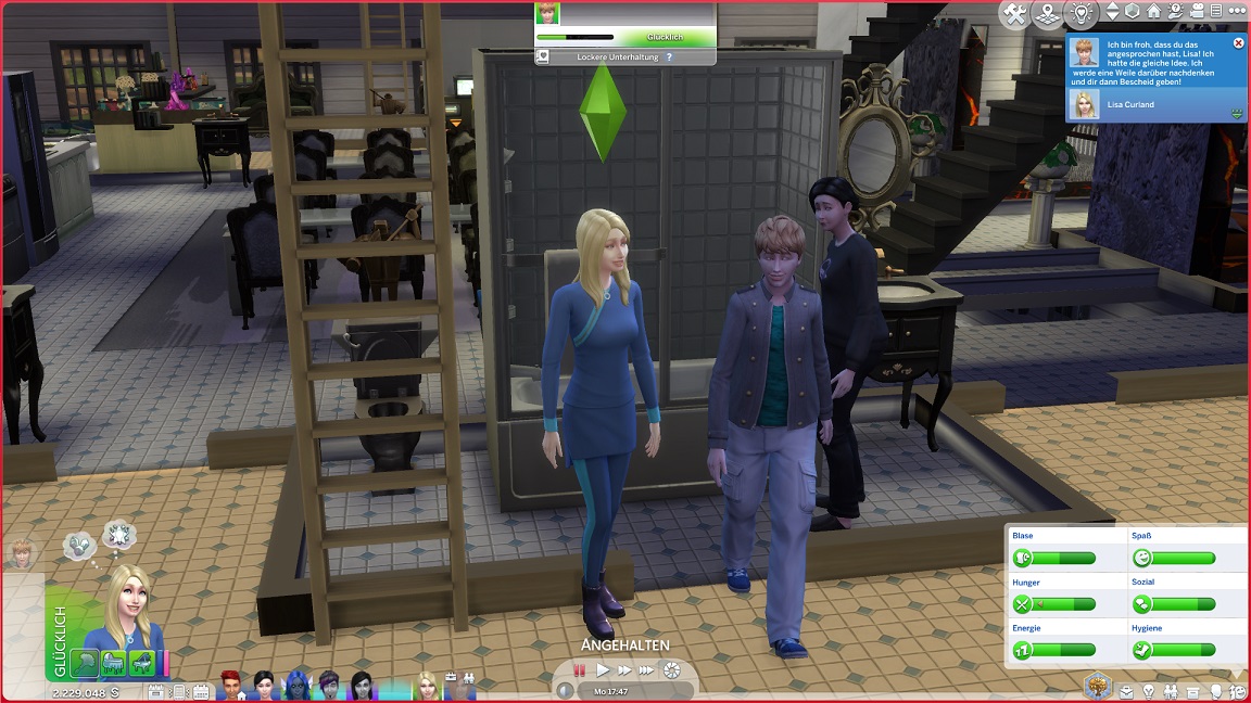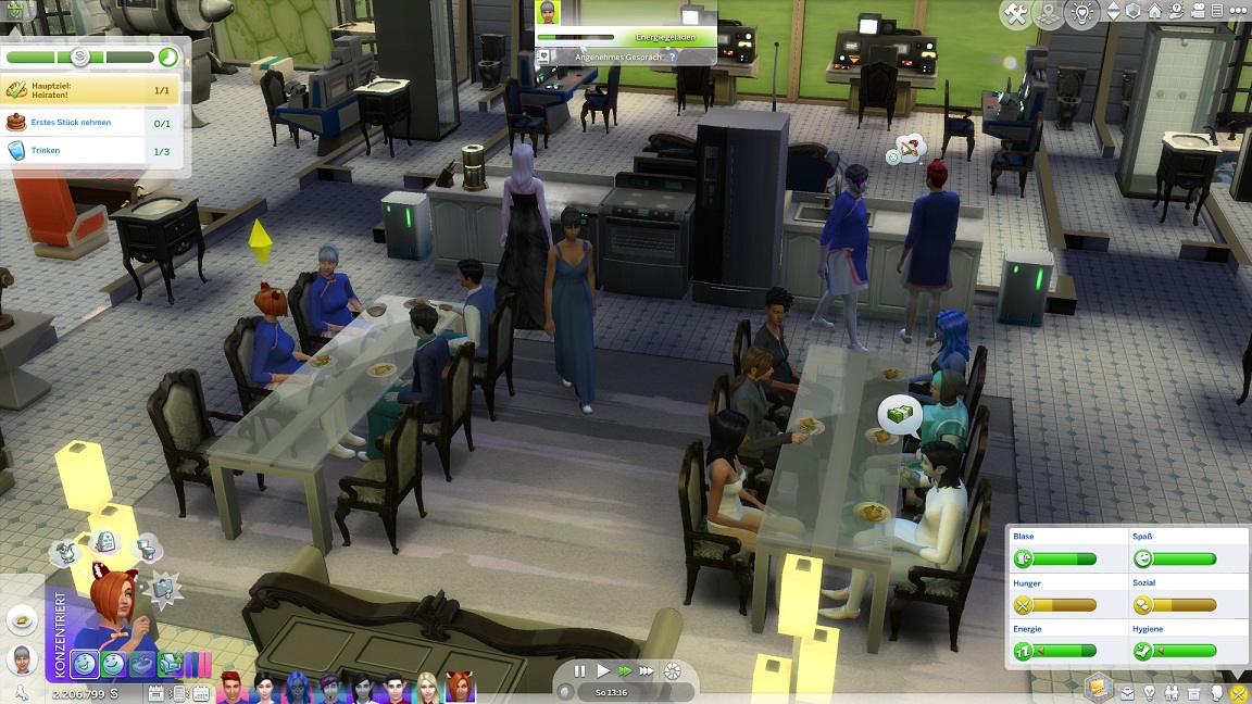 Artjom lädt einige von Renas Kindern zu sich ein, da er herausfinden möchte, ob er verkuppelte Sims in Richtung Verlobung schicken kann (soviel ich weiß, geht es tatsächlich nicht). Natürlich spricht er auch ein Kompliment über ihre Garderobe aus.
