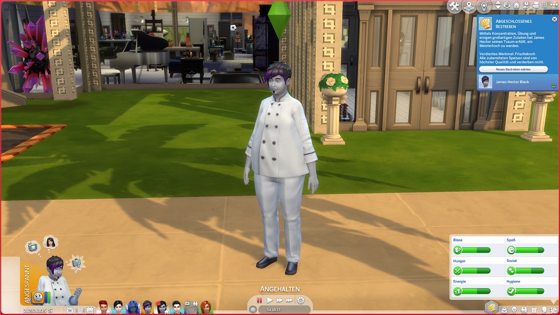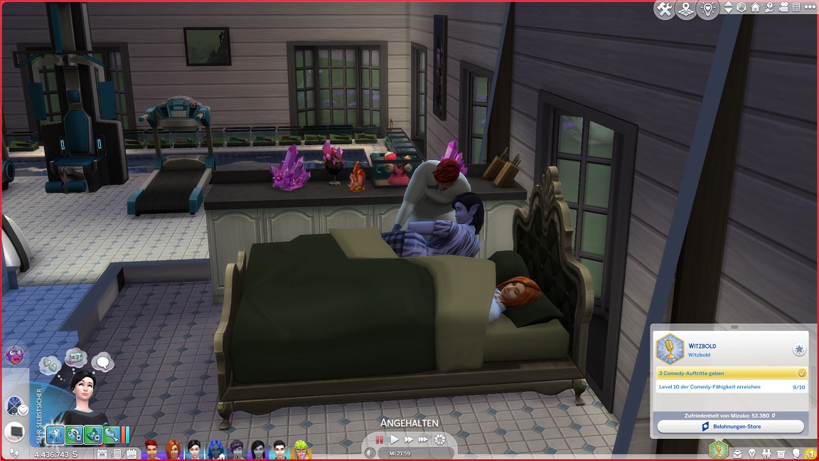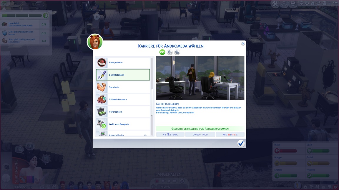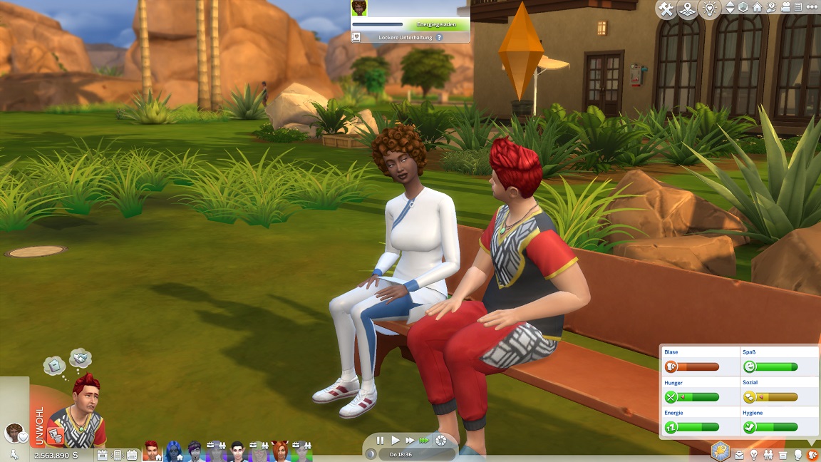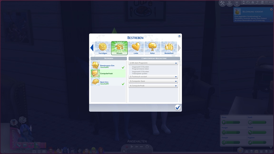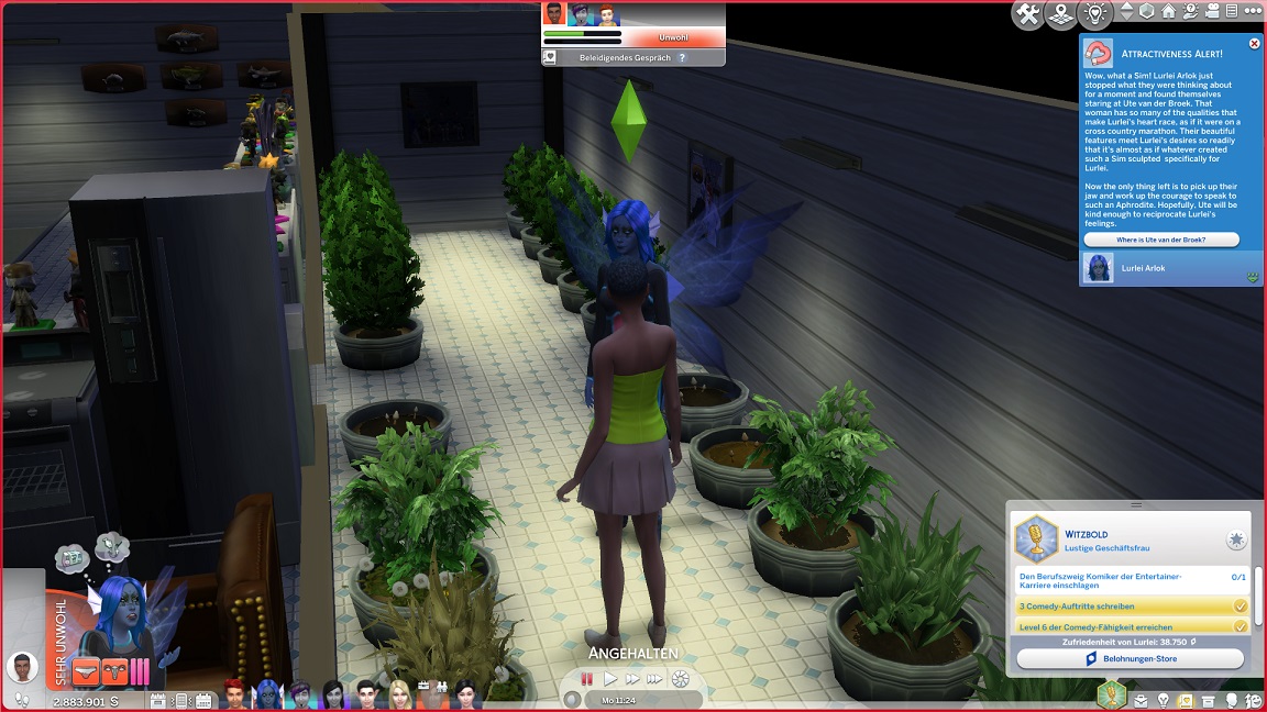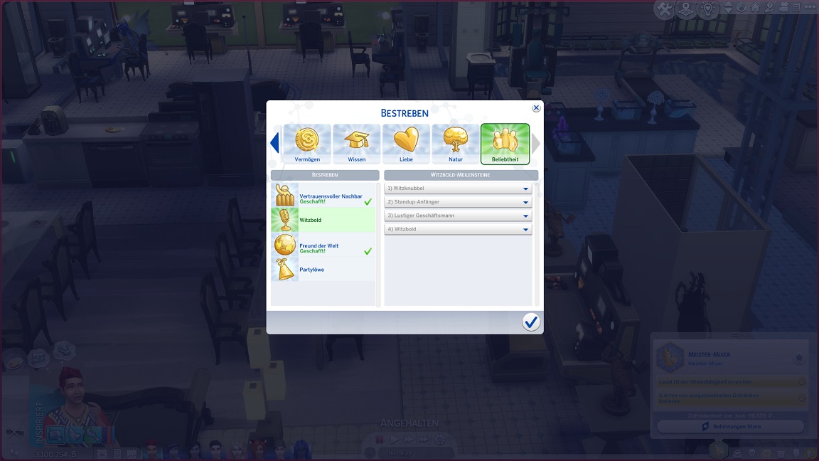Artjom lädt einige von Renas Kindern zu sich ein, da er herausfinden möchte, ob er verkuppelte Sims in Richtung Verlobung schicken kann (soviel ich weiß, geht es tatsächlich nicht). Natürlich spricht er auch ein Kompliment über ihre Garderobe aus.