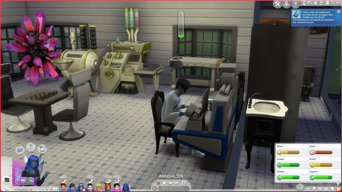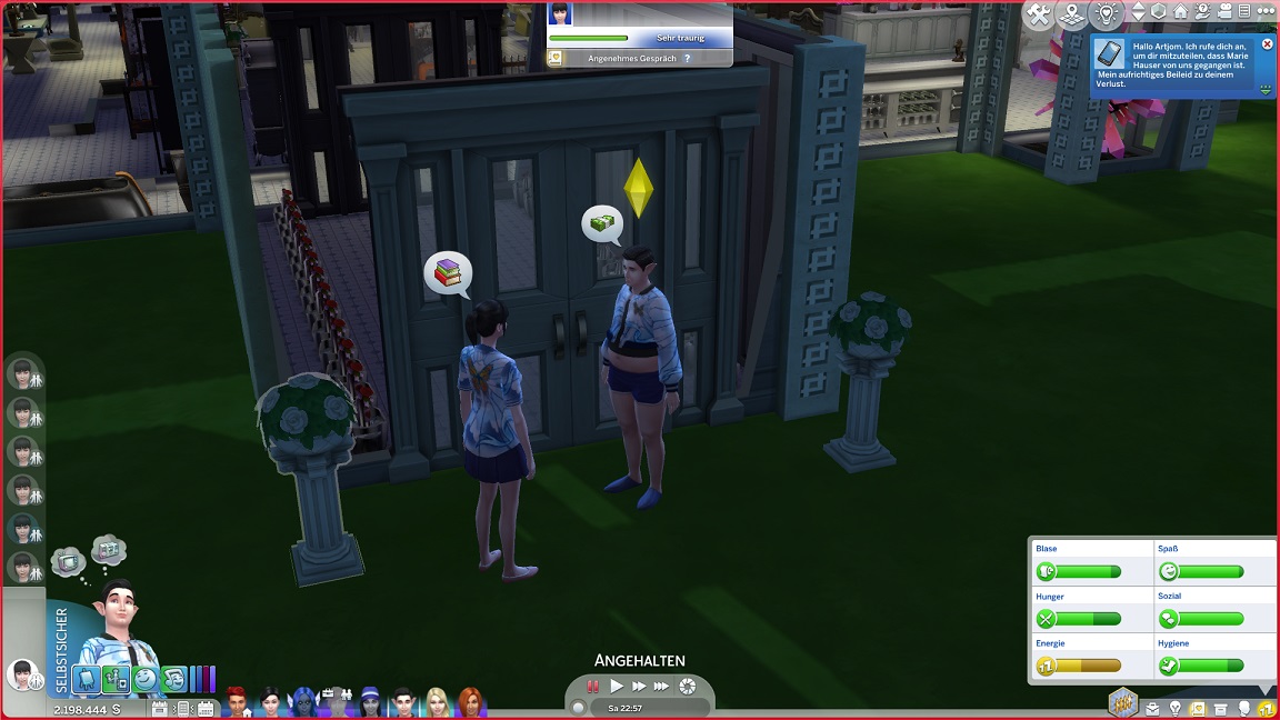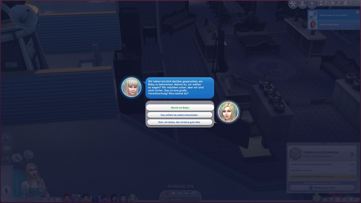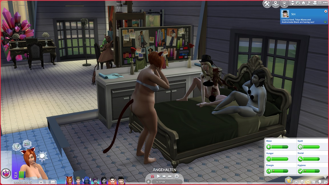 Am nächsten Morgen berichtet das Spiel vom Beischlaf zweier Nachbarn, den ich nicht aufspüren kann. Sylvia ruft bei Andromeda an... und nein, scheinbar wurde es noch nicht gepatcht.