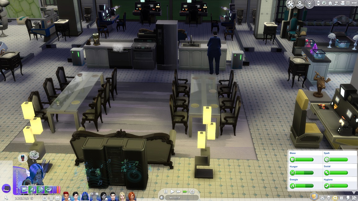 Da viele Besatzungsmitglieder mit ihrer Fitness zu kämpfen haben, erfolgt im Fitnessraum mit einem zweiten Laufband eine Umgestaltung. Eine zur passenden Stimmung beitragende Statuette ersetzt derweil in der Ecke den rein symbolischen Sales-Award.