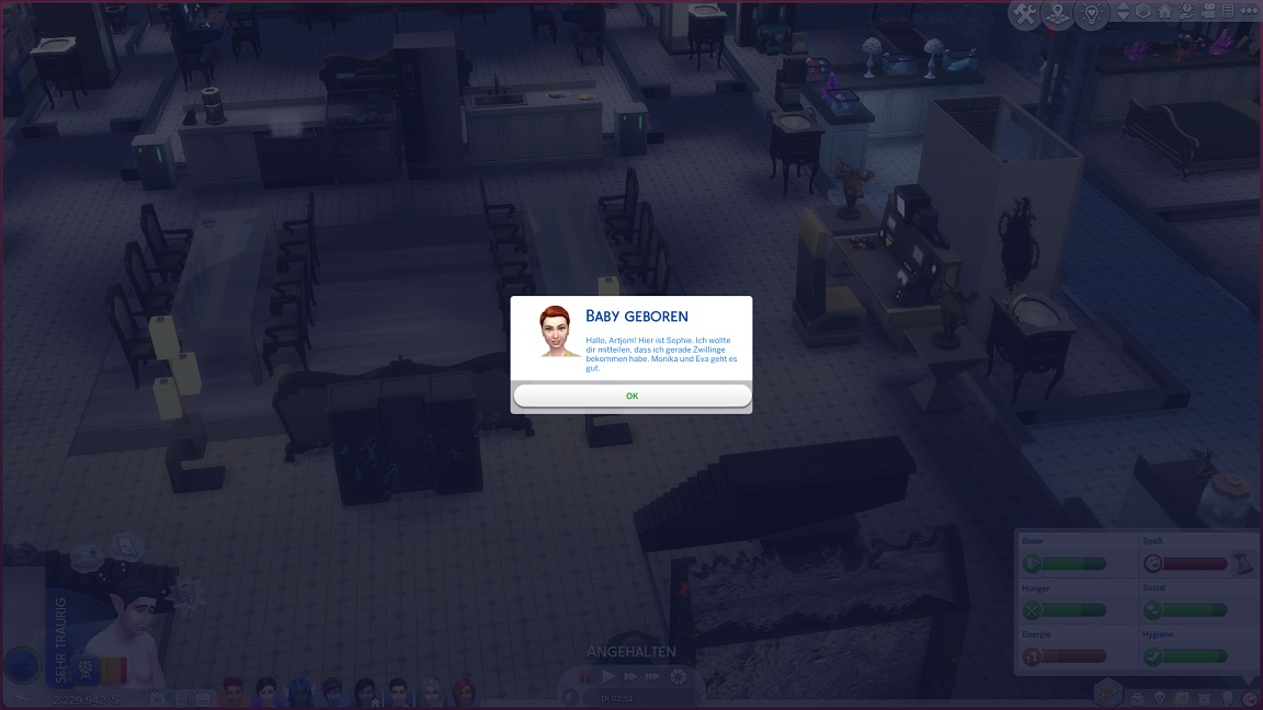 Beim Blick über die Haushalte stelle ich fest, dass der erste der Mjsnas verstarb und Ralf sein Versprechen wahr machte, indem er ein Kind adoptierte. (Moment, die beiden neugeborenen Kinder zählen als Tanten? Gut, bei Artjom handelt es sich um den Vater von Yanniks Vater, bei den Mädchen um Artjoms Töchter. Mütterlicherseits handelt es sich aber zugleich bei beiden Mädchen um die Töchter der Schwester von Yanniks Vater, also seine Cousinen.)