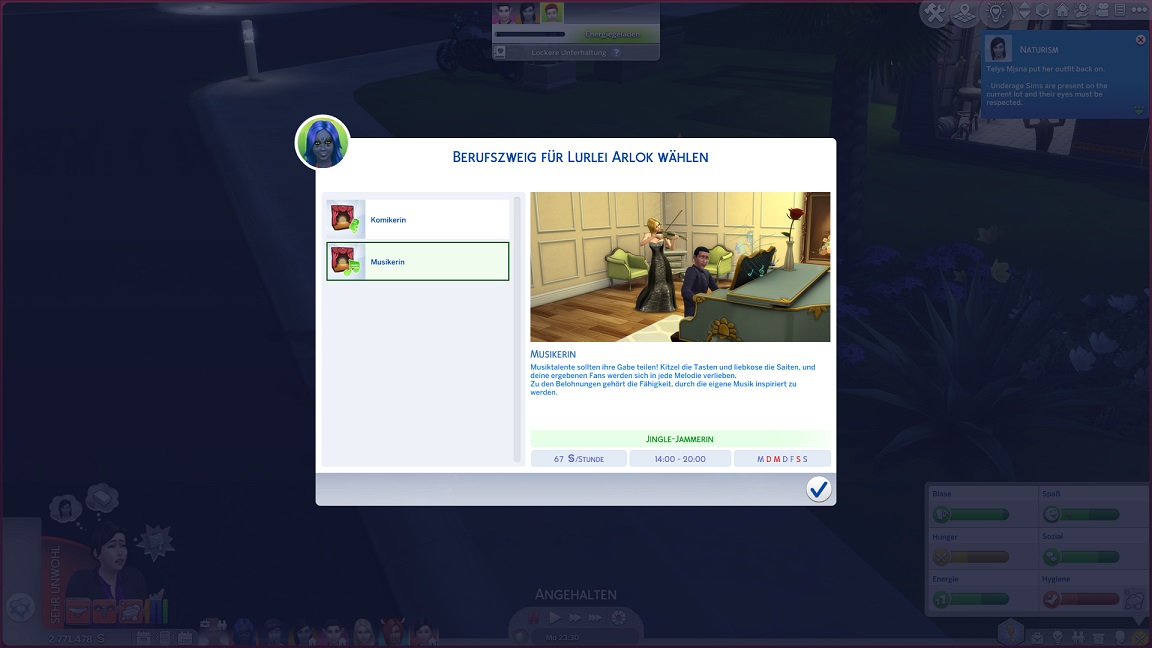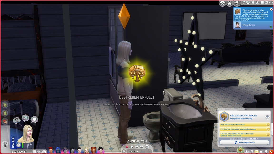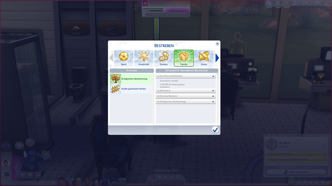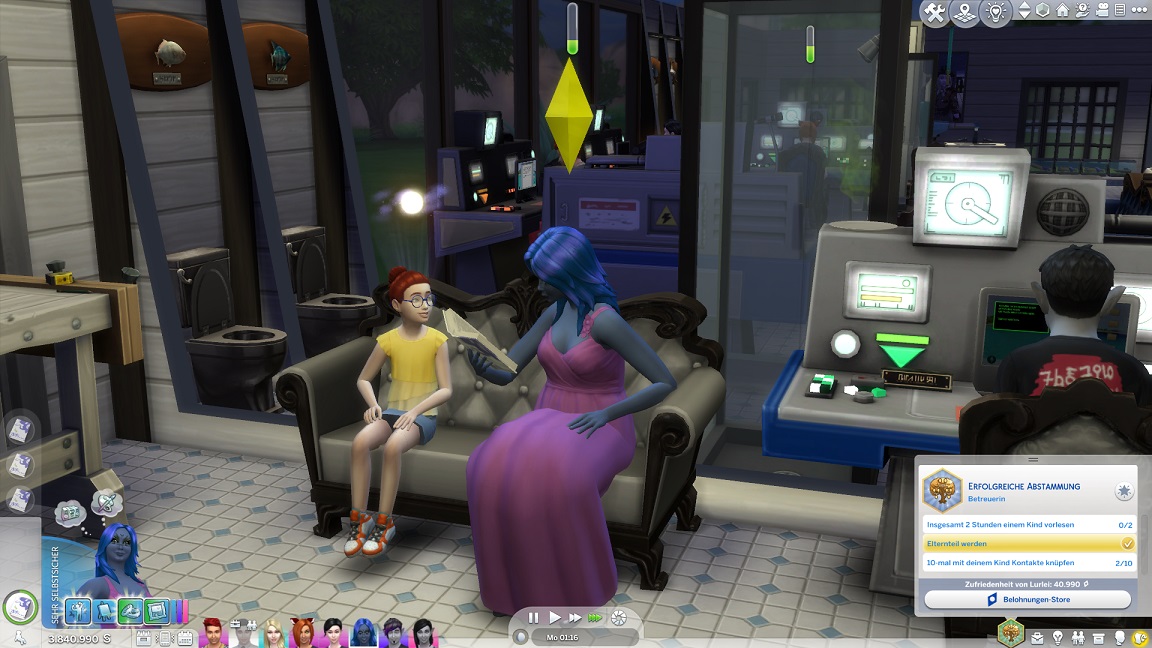 Lurlei muss auf der nächsten Stufe einem Kind bei den Hausaufgaben helfen, ein Kind auf Einserschnitt bringen und ein Kind eine Fähigkeit maximieren lassen - und dies alles ist ohne ein Kind im Spielerhaushalt kaum zu bewerkstelligen. Sie lässt deshalb die Helikoptereltern-Bestrebung hinter sich und wechselt auf die Matriarchin.