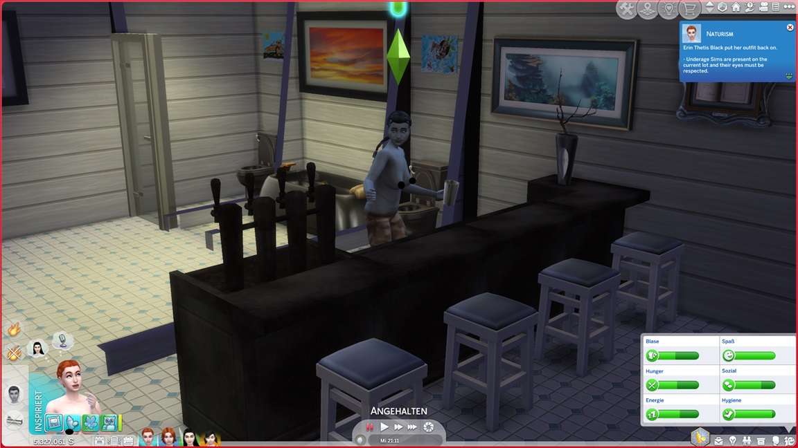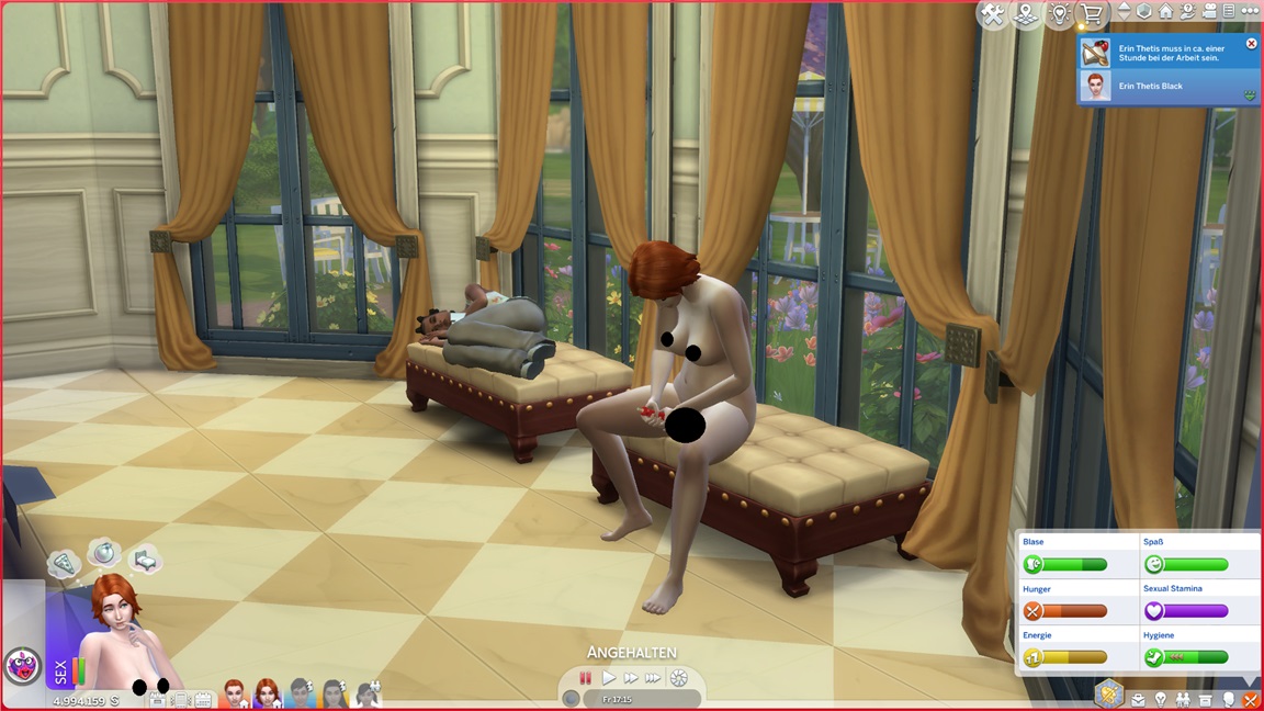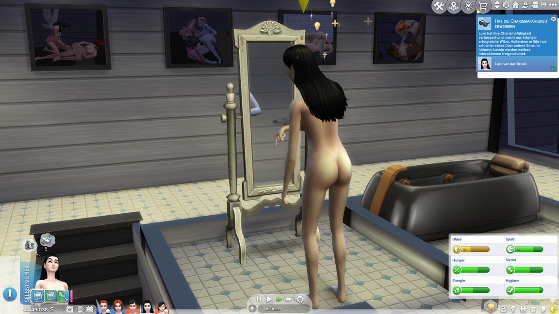 Zum Exhibitionismus gehört die Fähigkeit, eine Runde zu drehen. Stevie testet es aus und stellt fest, dass es sich um Flitzerei (analog zum Joggen) handelt. Sie lässt sich von Lure verführen - und niemand ist da, um ein Bild aufzuzeichnen, da Alexis noch die nötige Stufe fehlt.