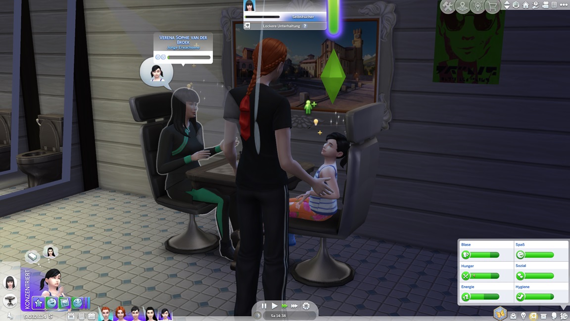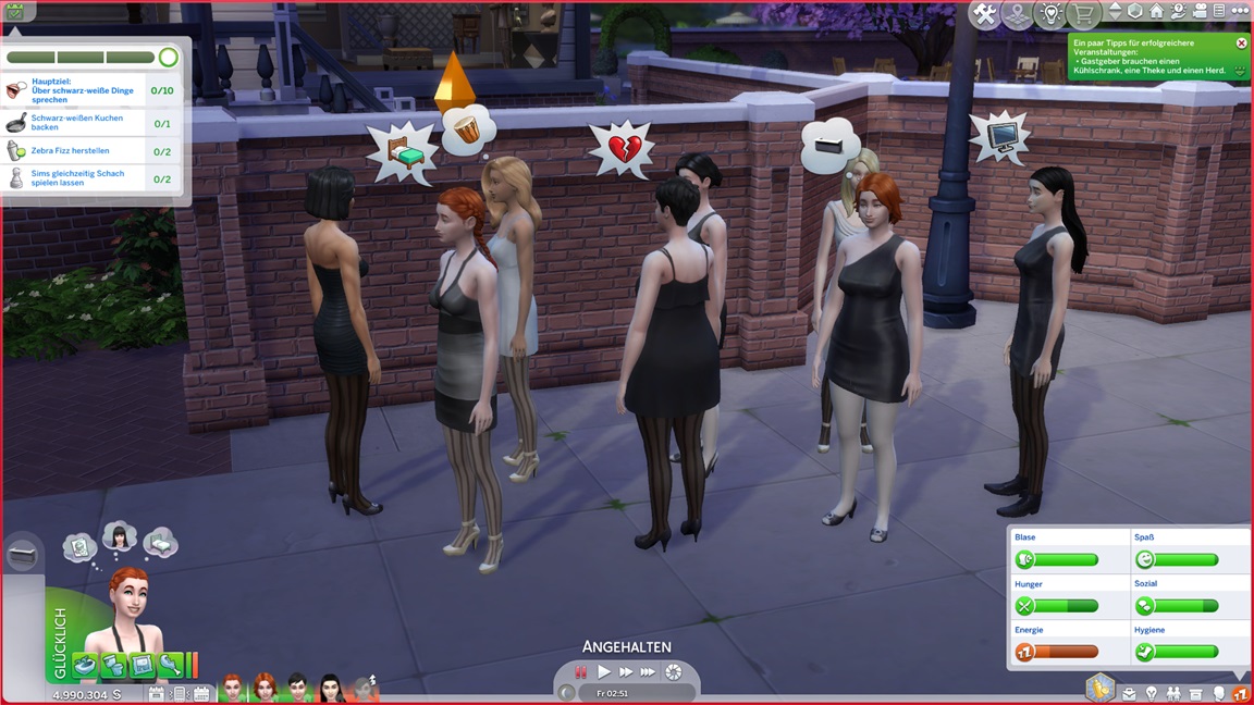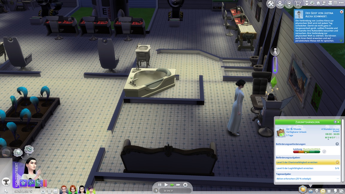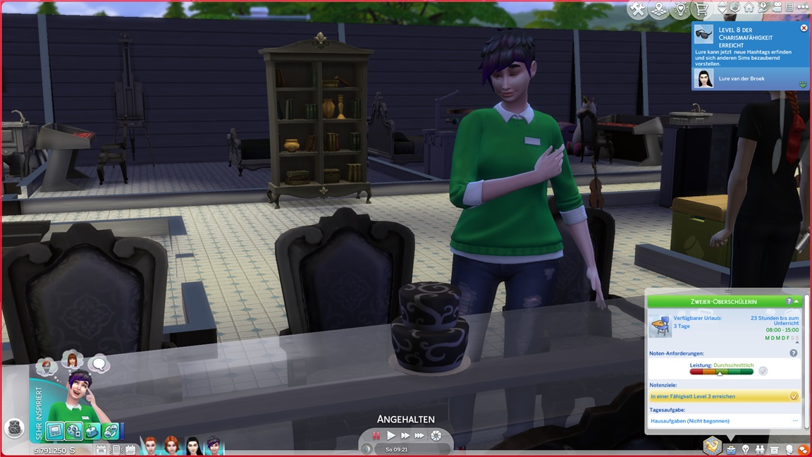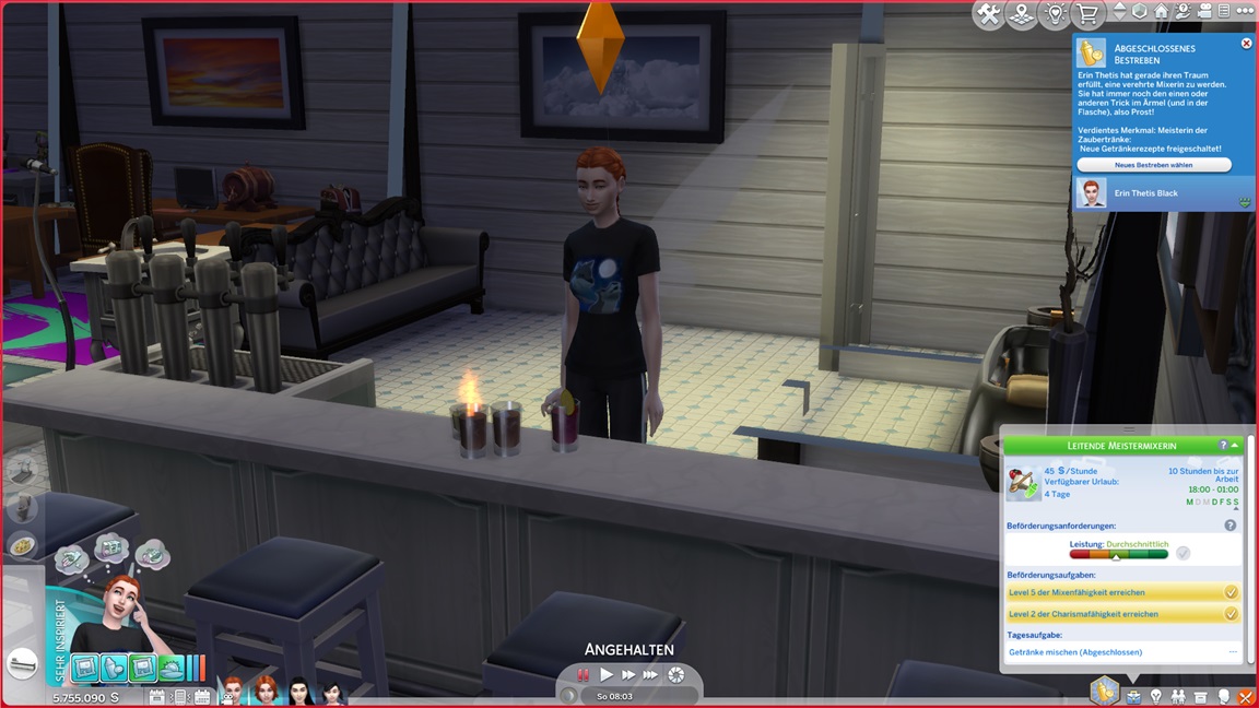 Erin benötigt ein Silber-Galaabendessen. Sie wählt einen kleinen Kreis, teilt sich die Arbeit mit ihrem Zwilling und wird Gold erreichen, wofür sich der weiter ausgeschmückte Spaßraum als hilfreich erweist.