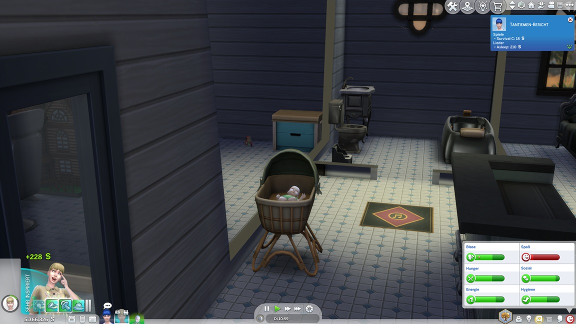 Annika kümmert sich um ihn und erlaubt ihm, den vollen Bonus abzuschöpfen. Das Bett entsteht nun am Ort der Bar, mit etwas passendem Wandschmuck.