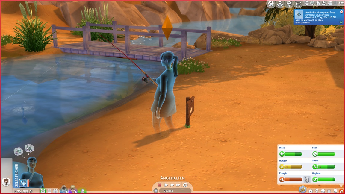 Ambrosia benötigt bekanntlich einen Jugendtrank, einen Kaiserfisch und eine Schnitterblume. Während Salome zur Arbeit aufbricht, reist Annika zu Vier Vorne - und angelt vor dessen Haustür, damit neue Früchte spawnen können.