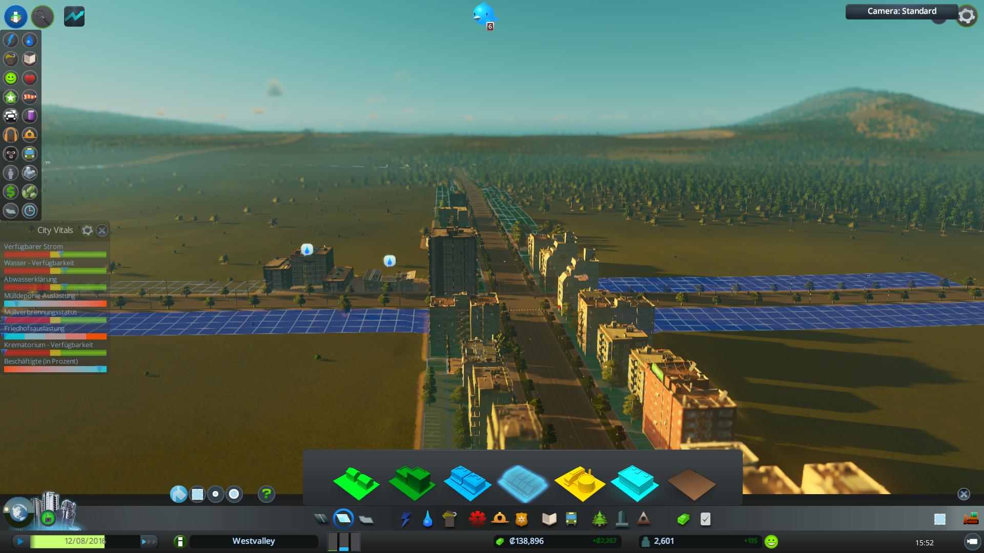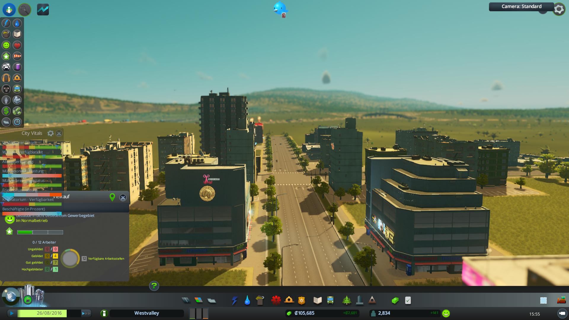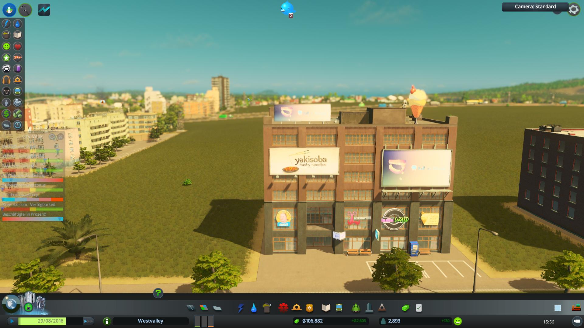 Zweite Erweiterung und gerade das Gegenteil. Wir bauen hier unsere Stadt nach Norden weiter und setzen hier an der großen Straße nur "große" Wohngebiete, d. h. Hochhäuser. Dies dauert zwar ne Weile, am Anfang sind es eher größere Apartments, aber hier ensteht das eigentliche Stadtzentrum.