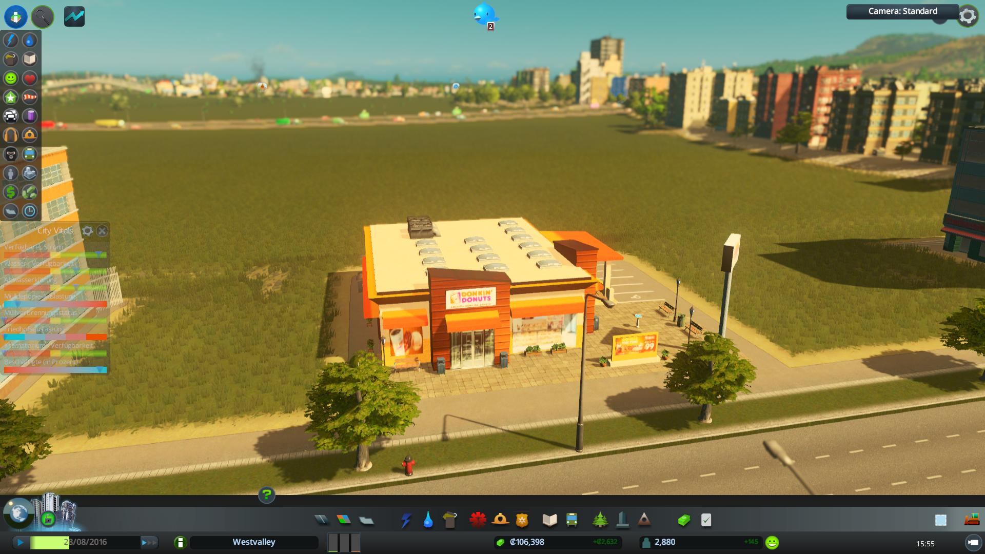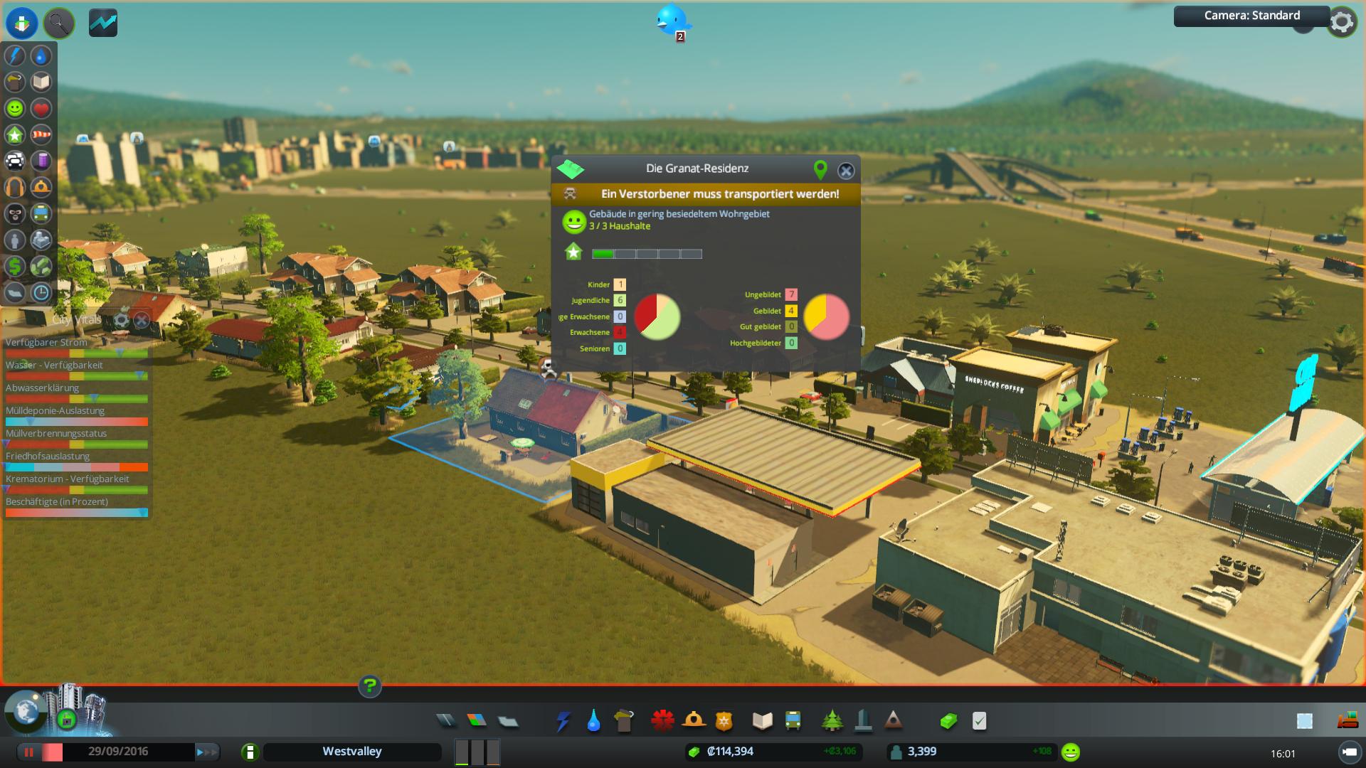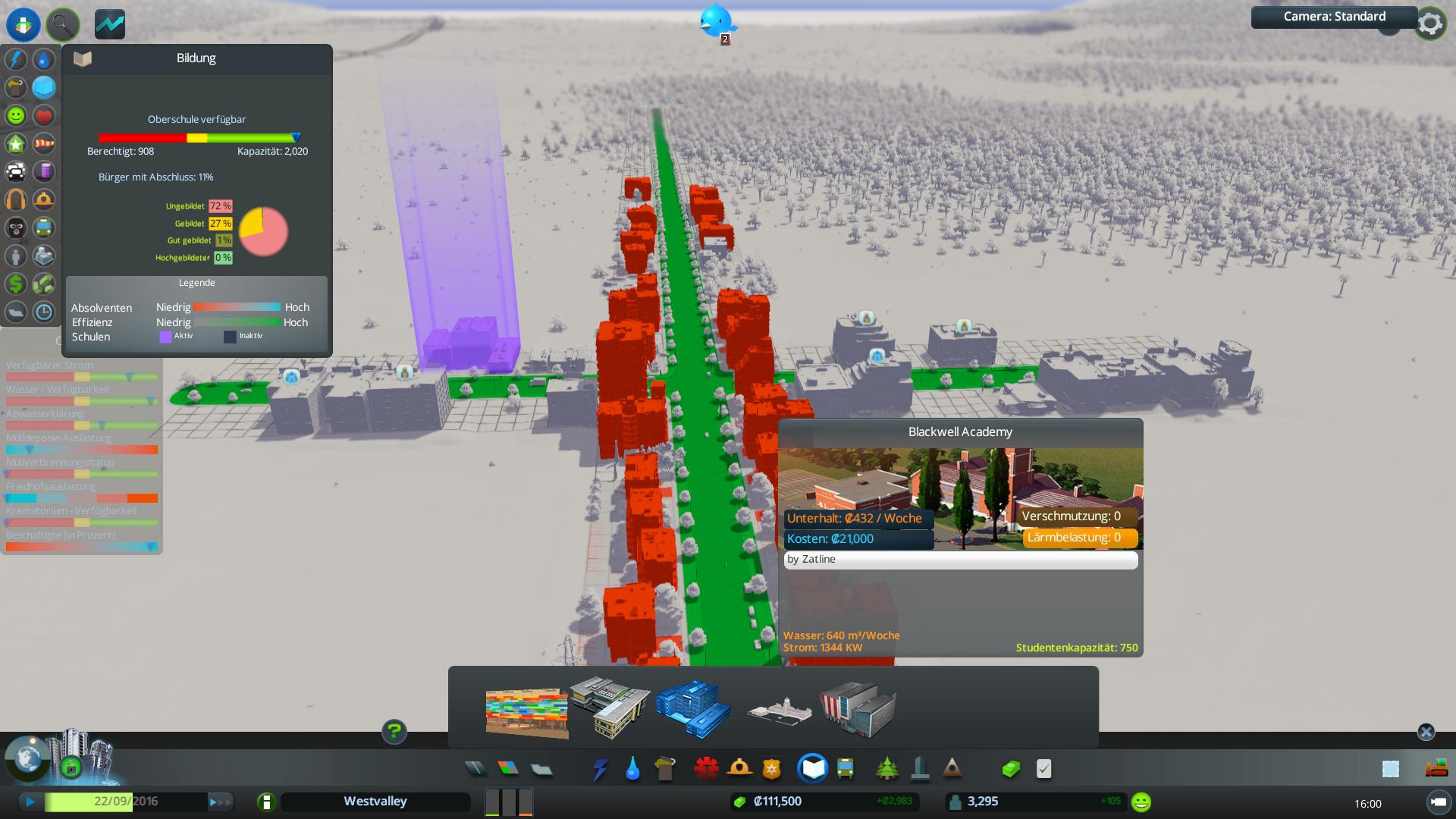 Zweite Erweiterung und gerade das Gegenteil. Wir bauen hier unsere Stadt nach Norden weiter und setzen hier an der großen Straße nur "große" Wohngebiete, d. h. Hochhäuser. Dies dauert zwar ne Weile, am Anfang sind es eher größere Apartments, aber hier ensteht das eigentliche Stadtzentrum.