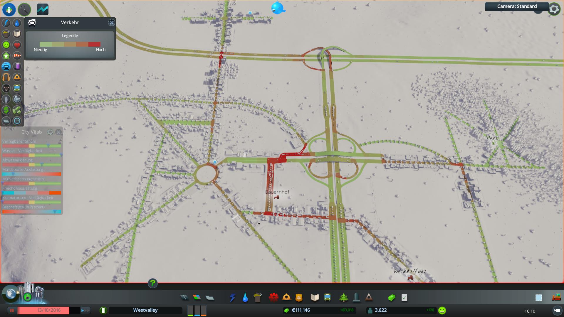 hier der Verkehr.Die roten Straßen sind die mit dem größten Problem, hier werde ich mich zum Teil jetzt drum kümmern.
