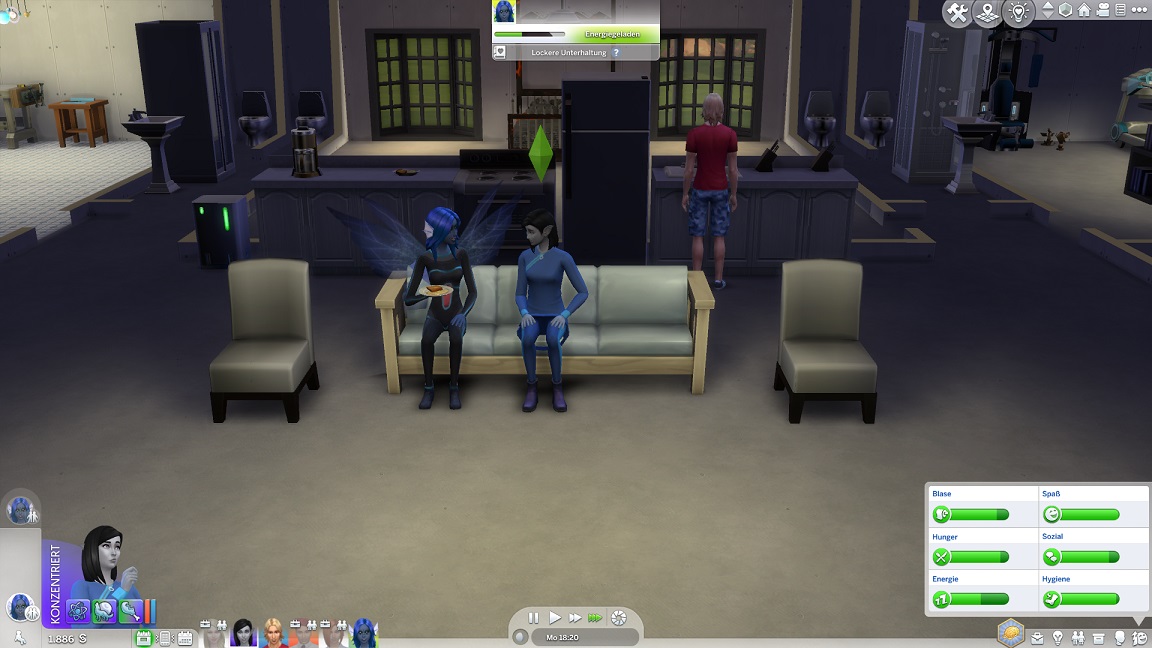 In der Lounge: "Hallo. Oh, neue Aufgabe. Tschau."