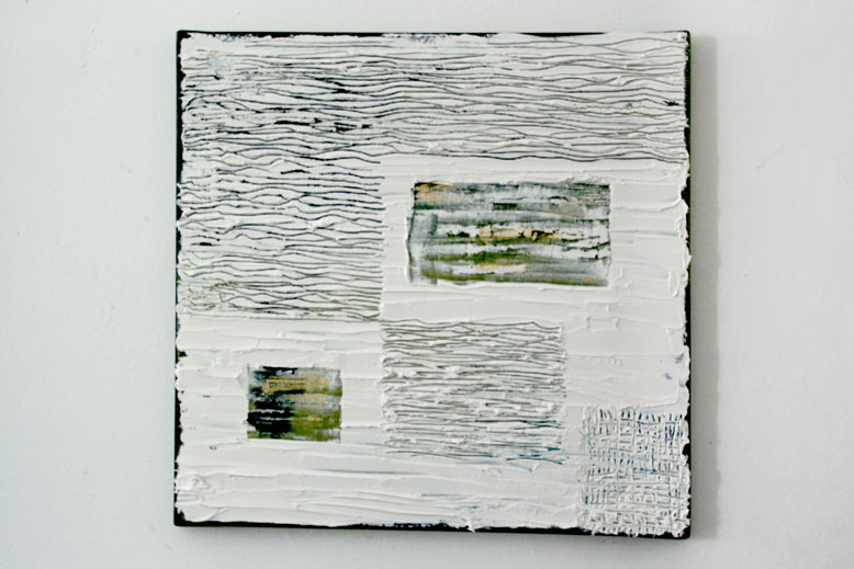 Mir geistert jetzt schon seit Wochen ein Bild im Kopf rum und heute hab ich wegen des Brückentag ( Südstaatenbewohnerin :D ) mal Zeit dafür. Das Abgebildete ist nur ein Probebild und deutlich kleiner (30x30) als das was ich möchte. Die Farben sind auch nicht die, die mir im Kopf rumgehen. Eigentlich will ich Schokobraun, schwarz, grau als "Unterlage". War aber ein lehrreiches Experiment denn jetzt weiss ich, dass die Kontraste der Grundierung stärker sein müssen und ich vermutlich die Strukturpaste einfärben sollte. Hier der Versuch: