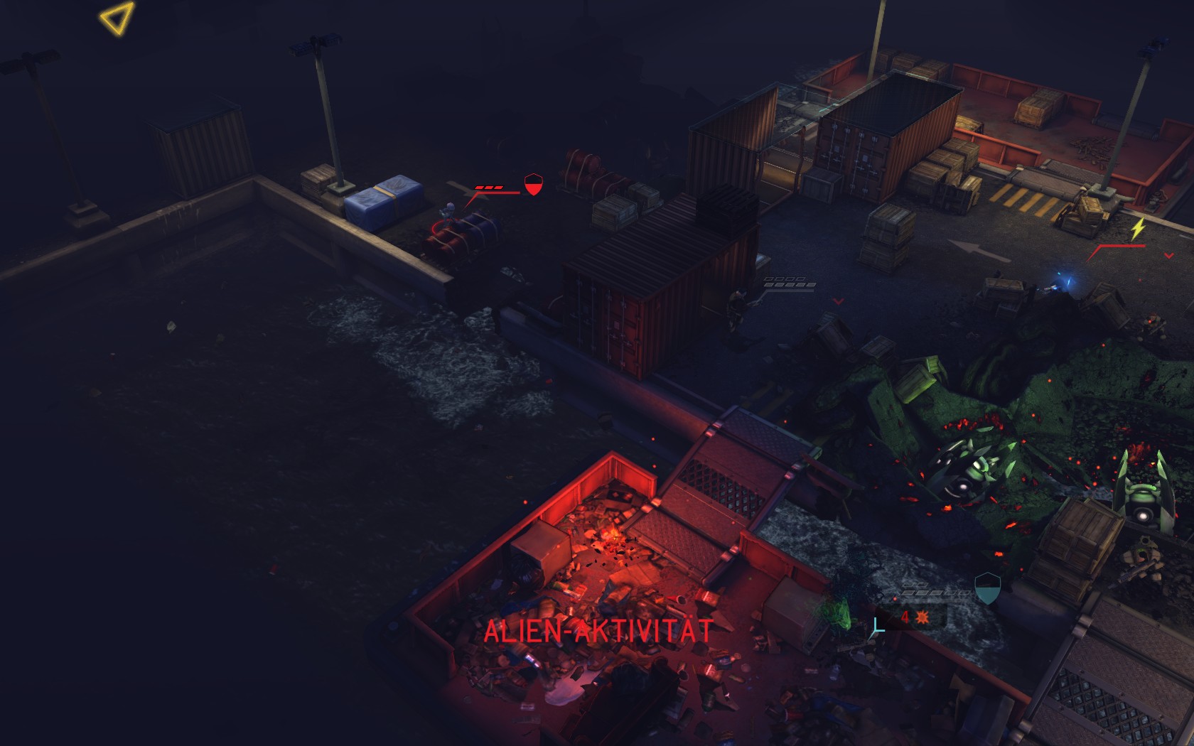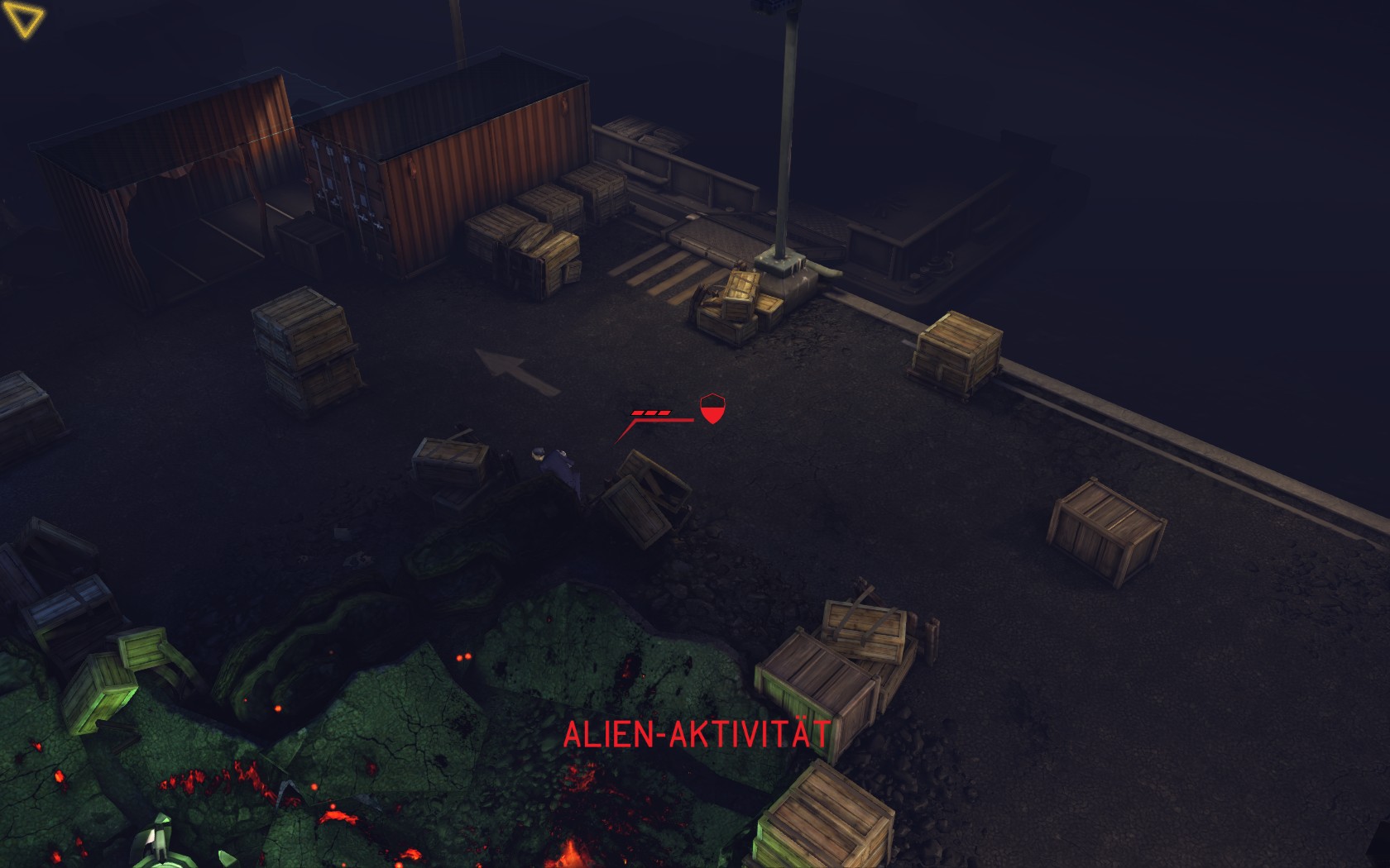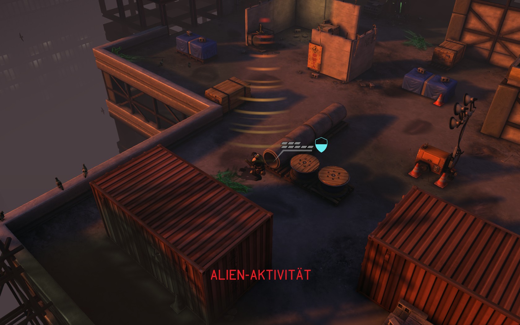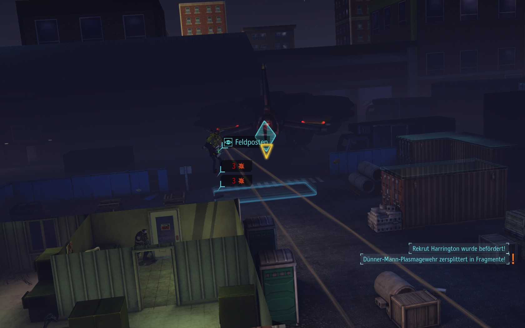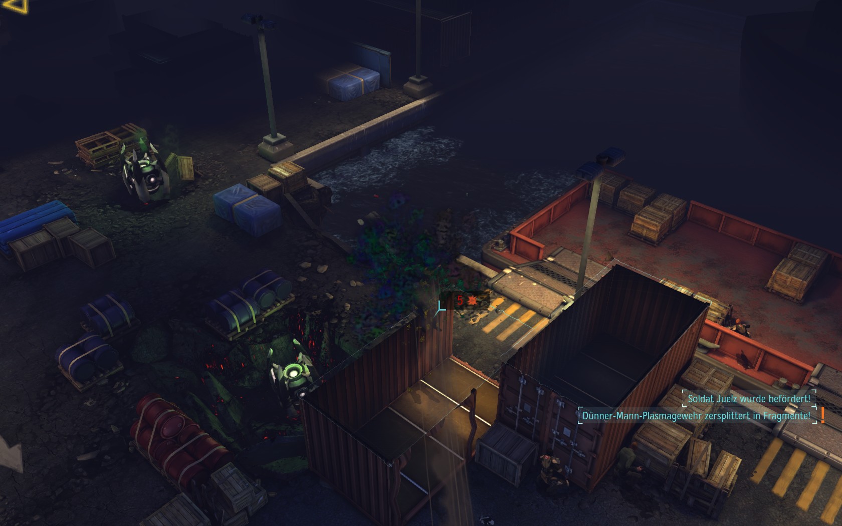 Die Aliens schicken neue Truppen. Einer landet direkt vor uns auf dem Container: