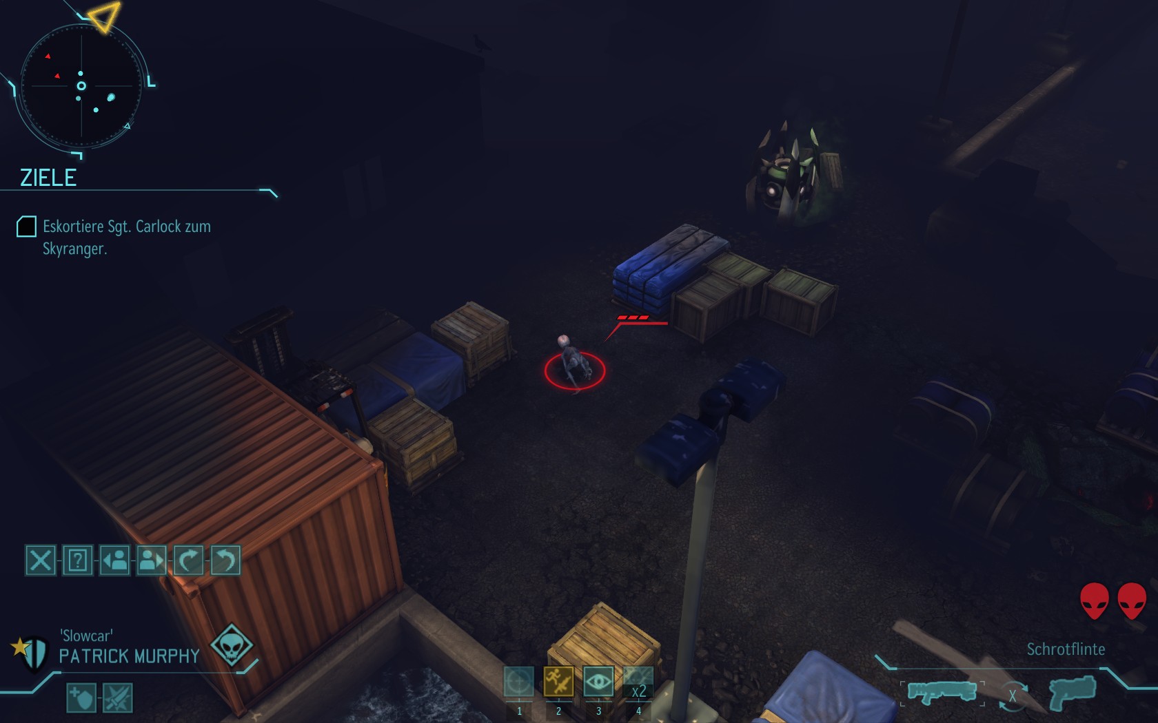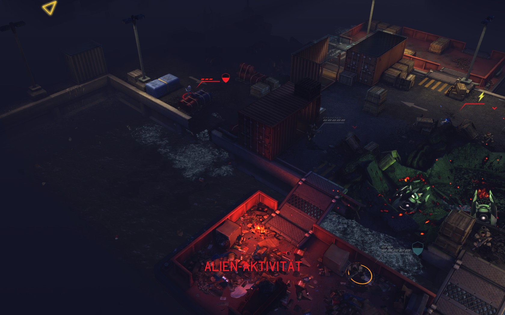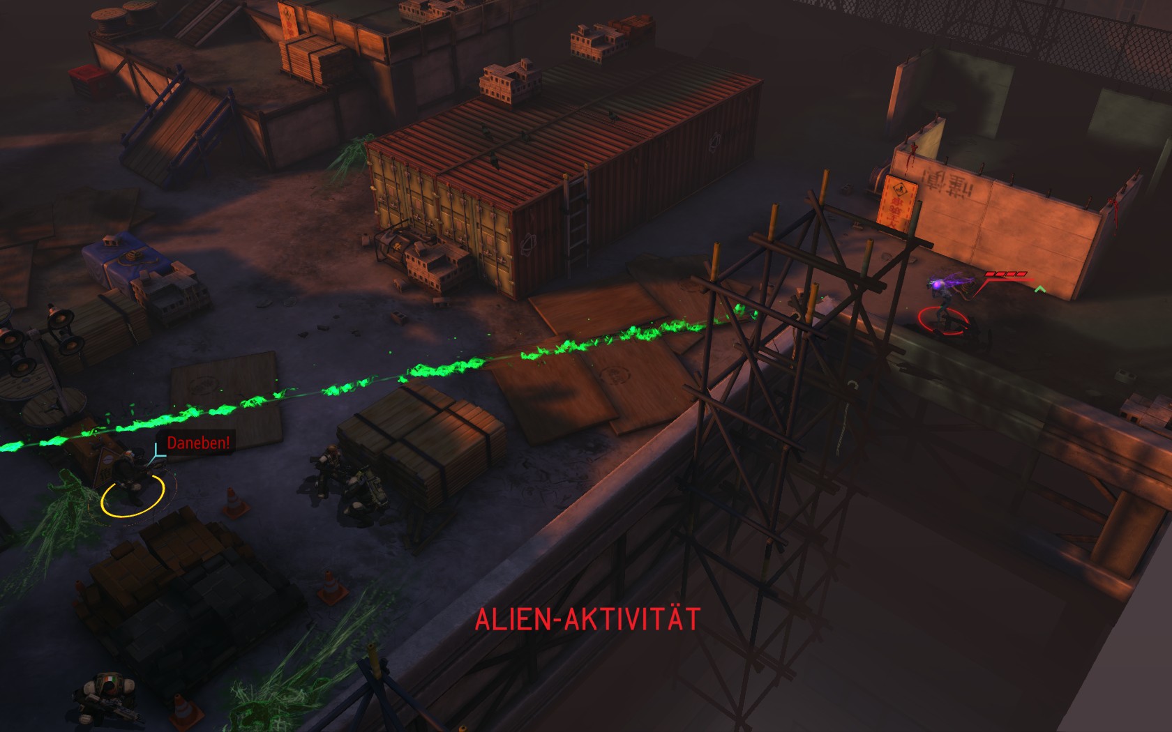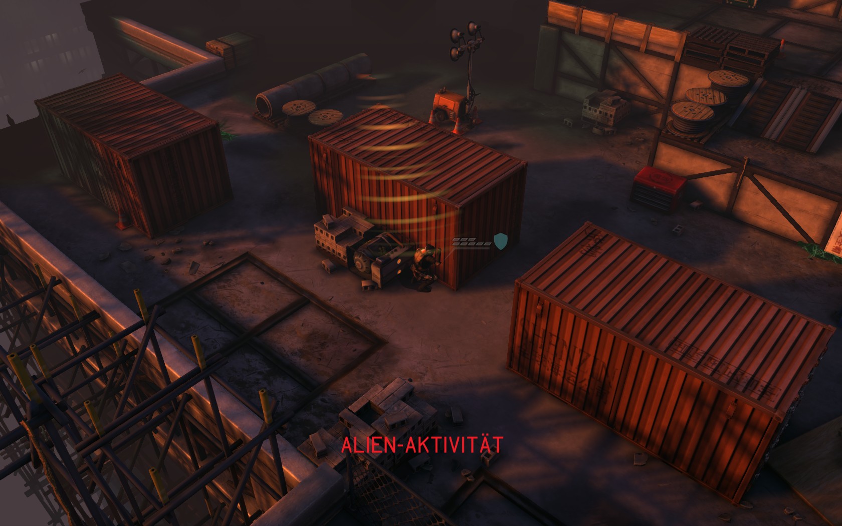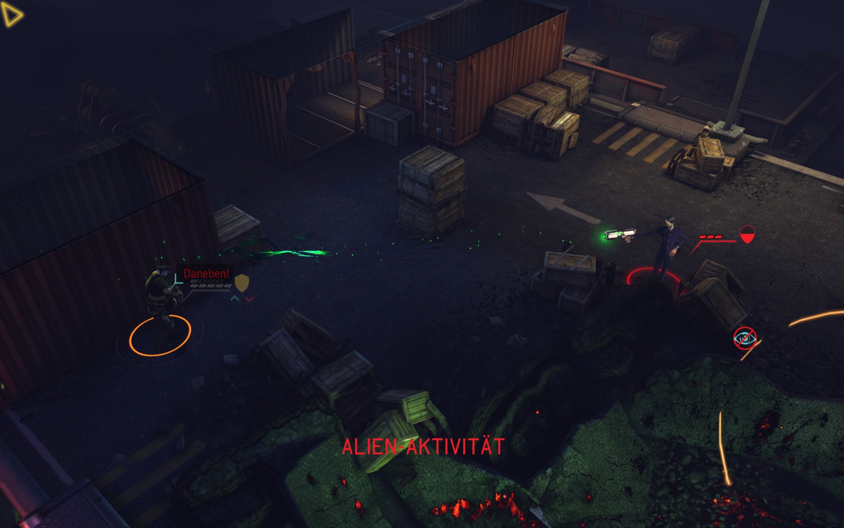 Die Aliens schicken neue Truppen. Einer landet direkt vor uns auf dem Container: