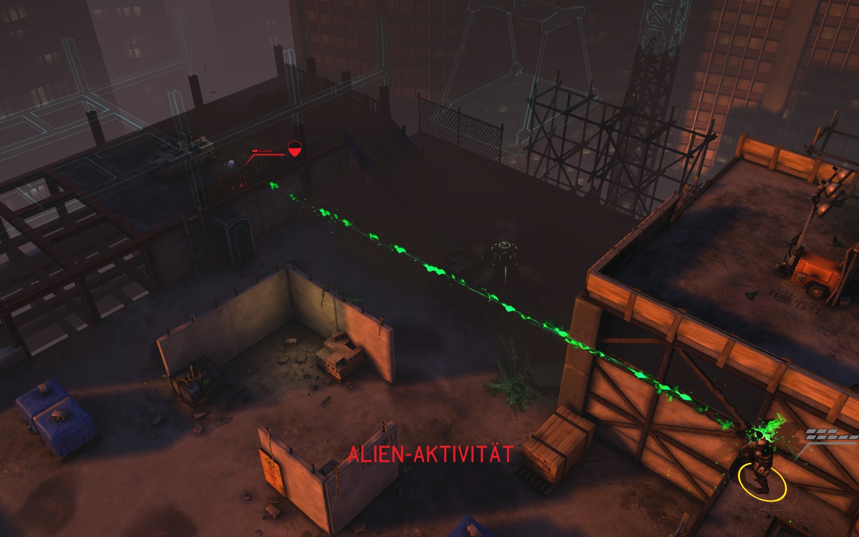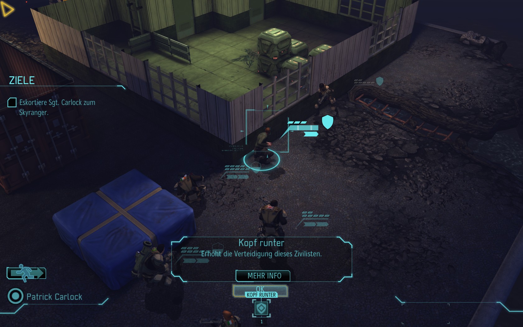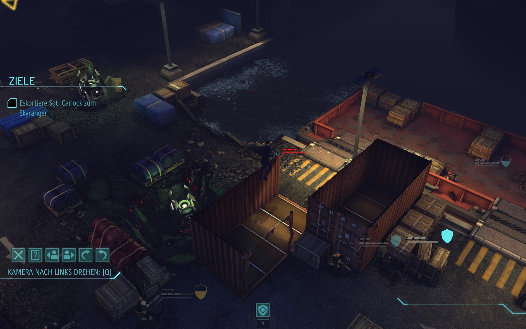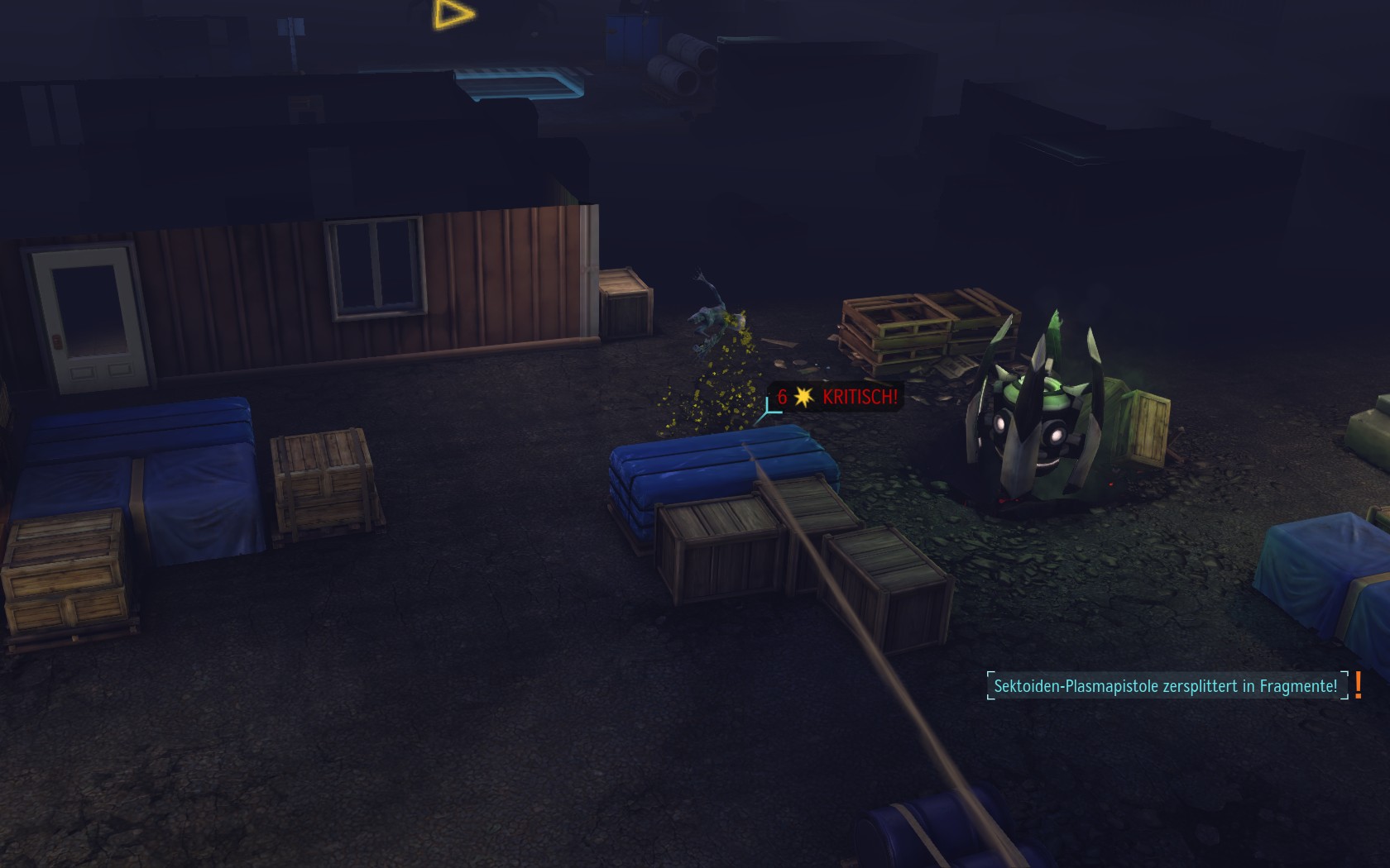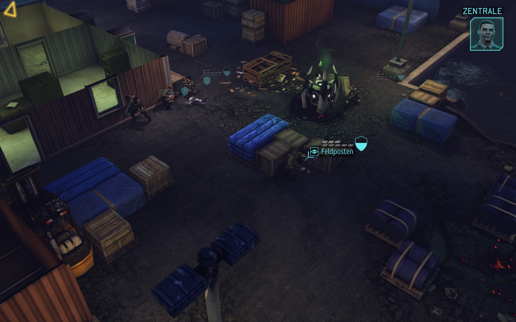 Die Aliens schicken neue Truppen. Einer landet direkt vor uns auf dem Container: