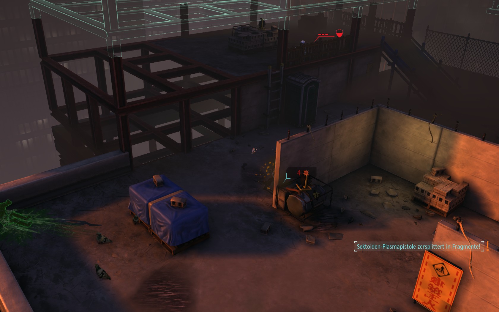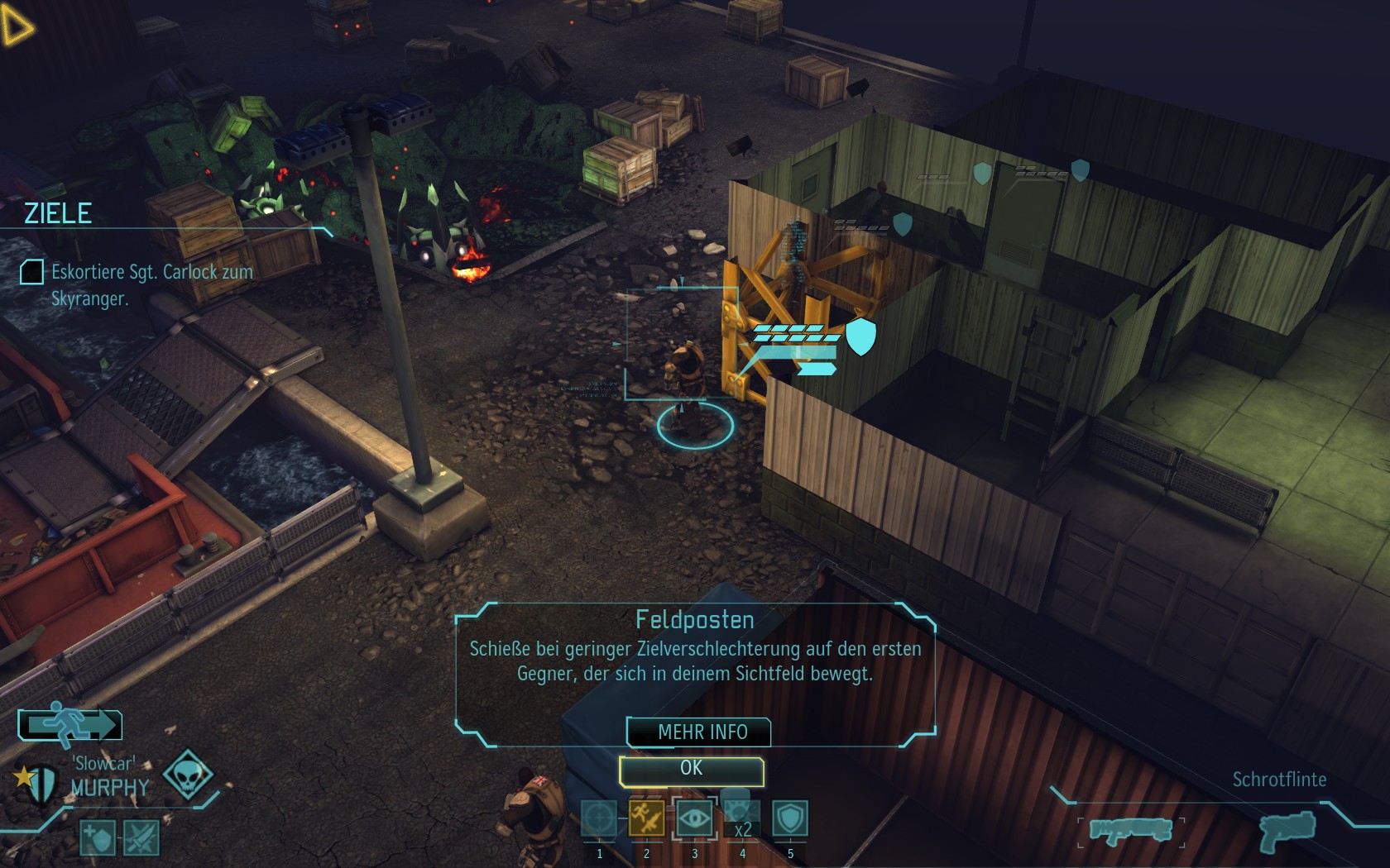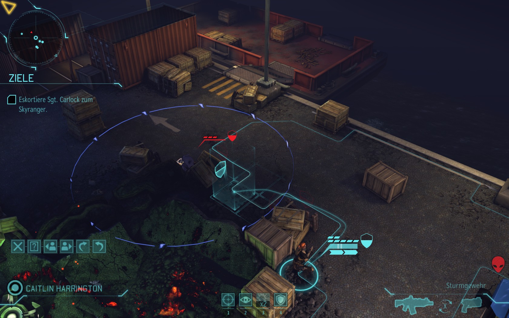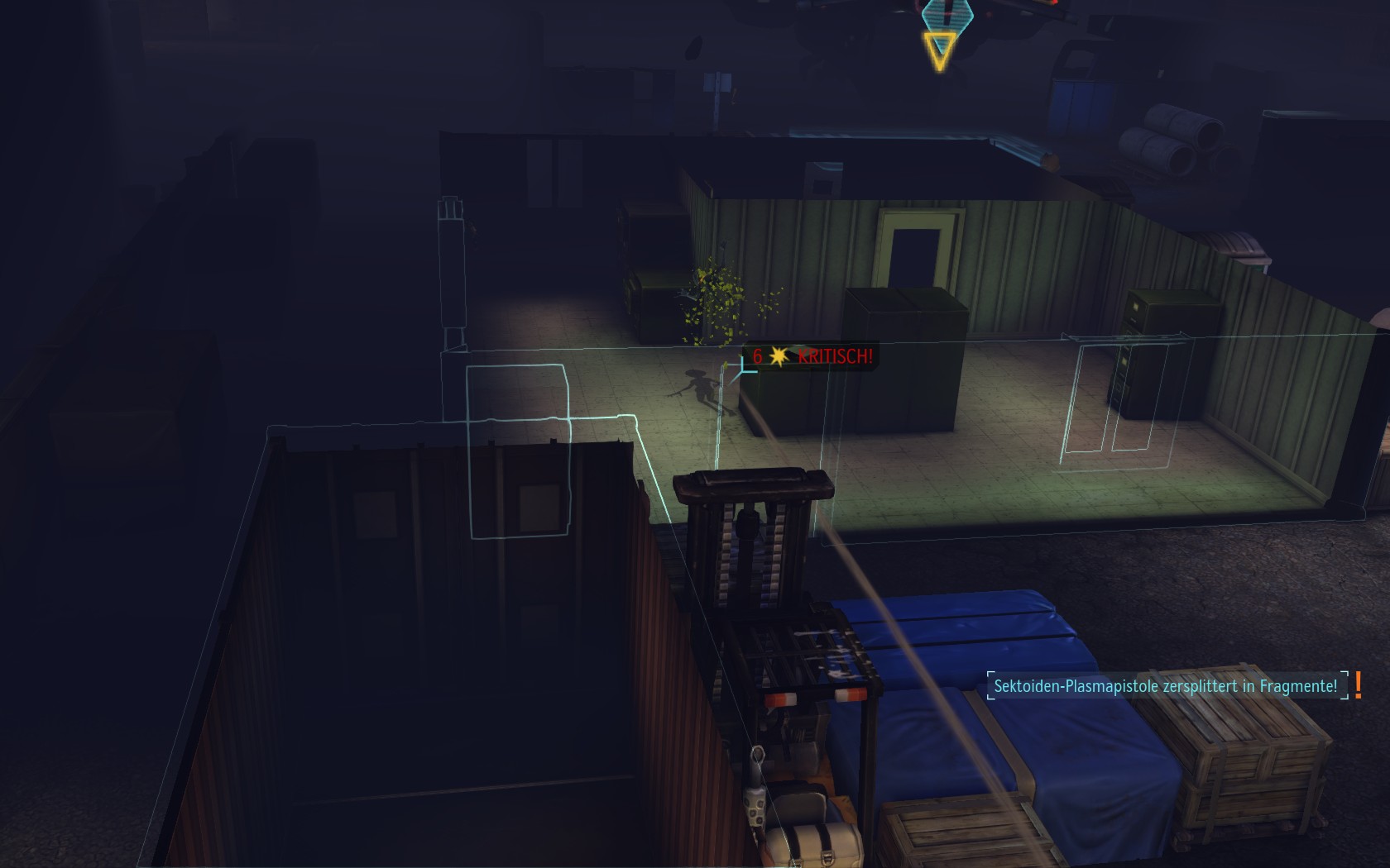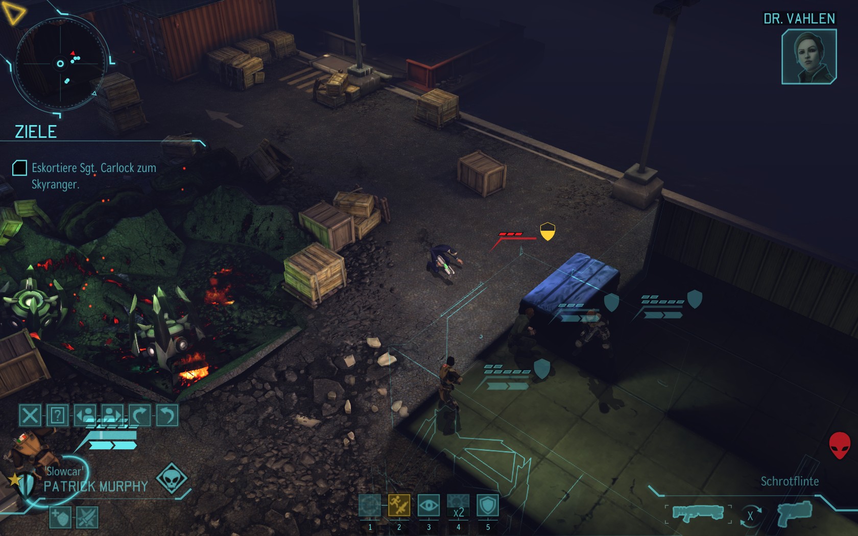 Die Aliens schicken neue Truppen. Einer landet direkt vor uns auf dem Container: