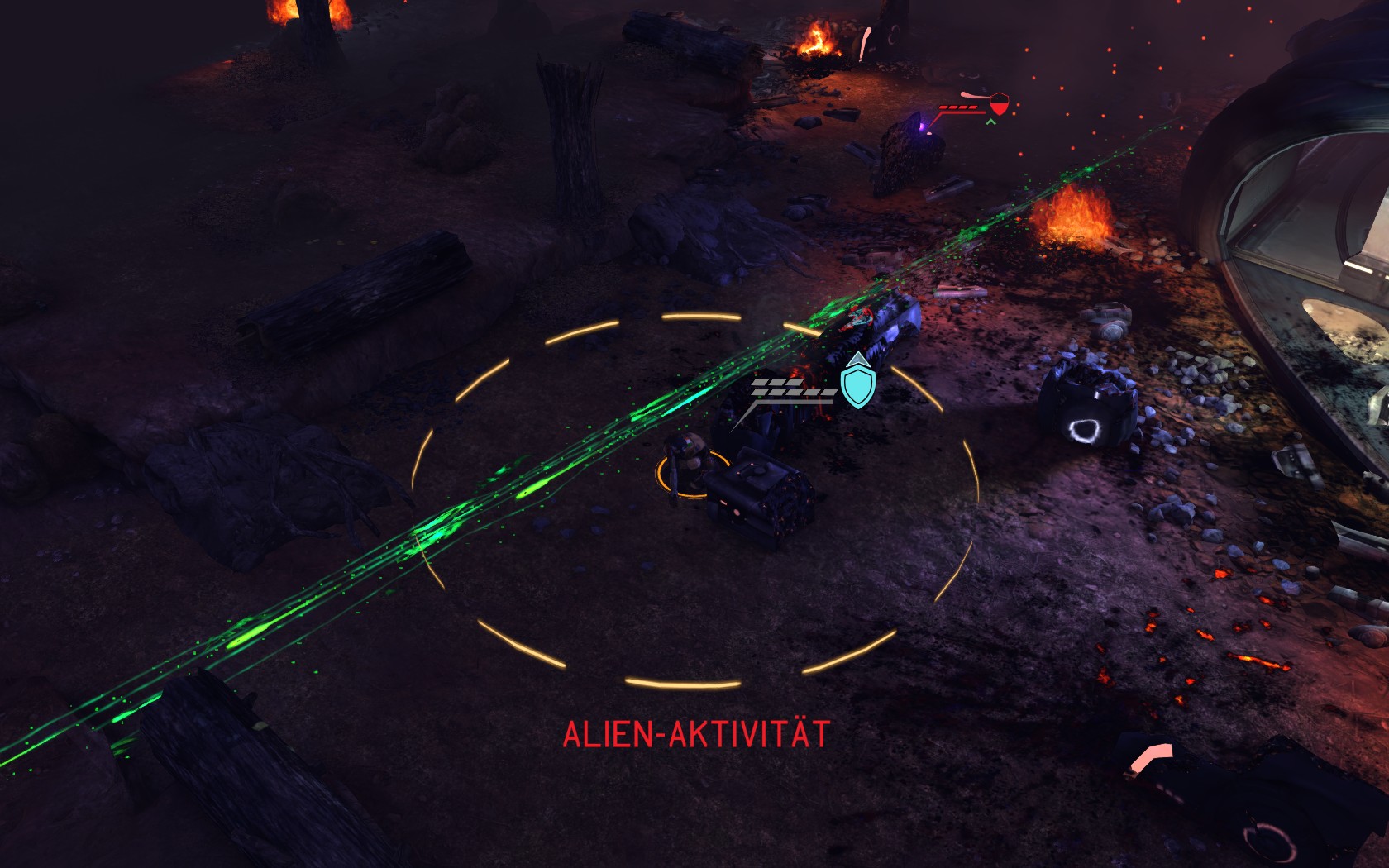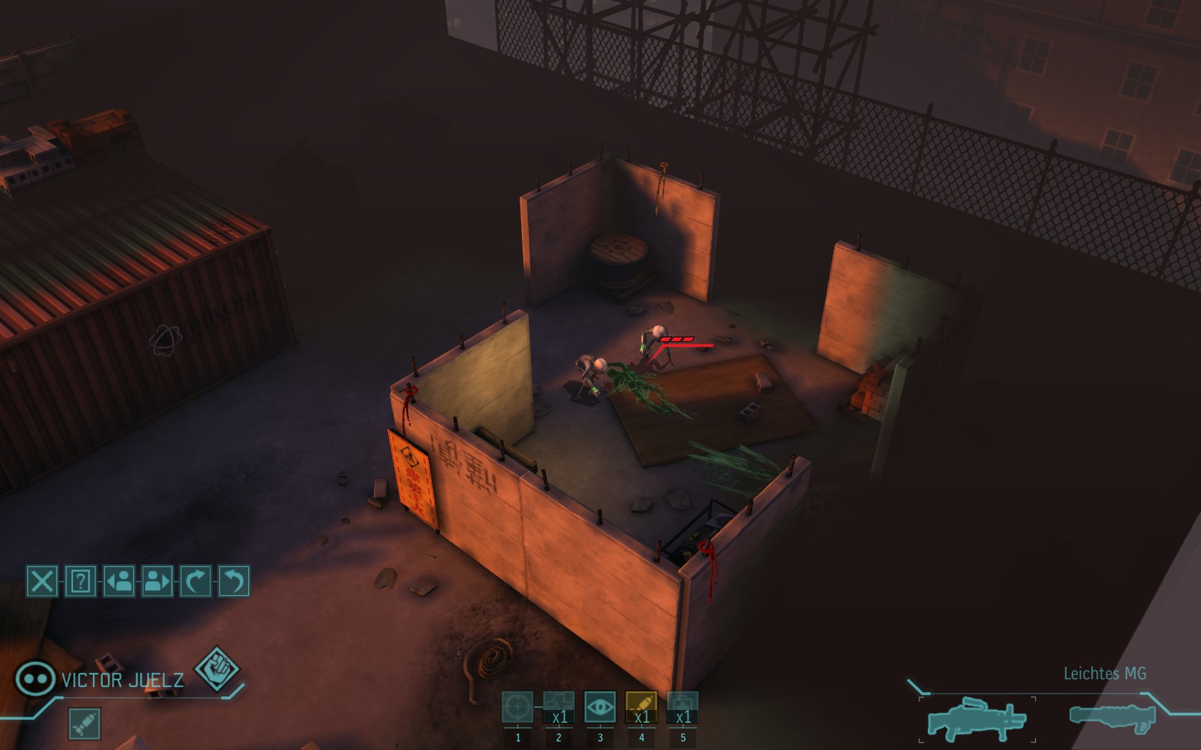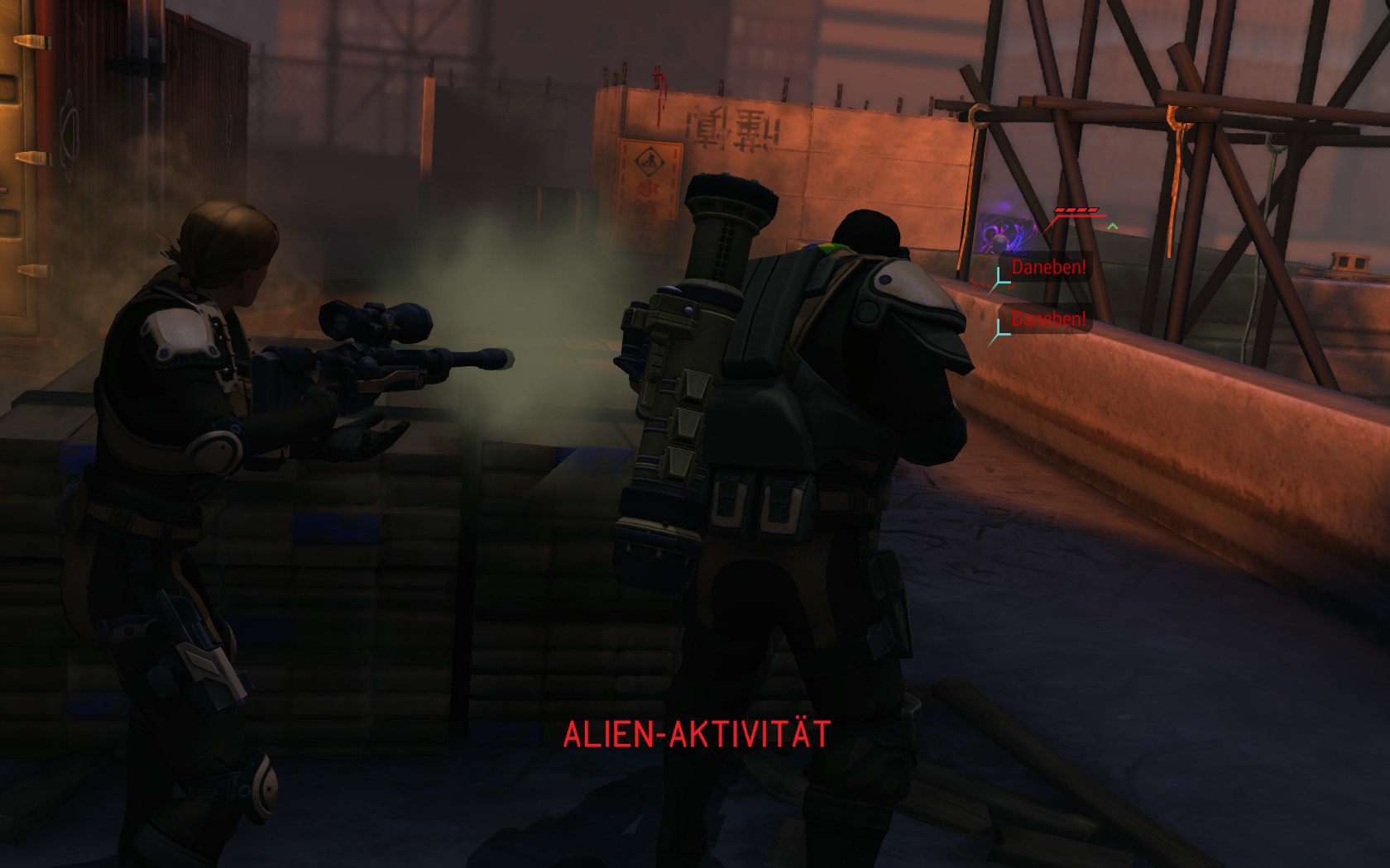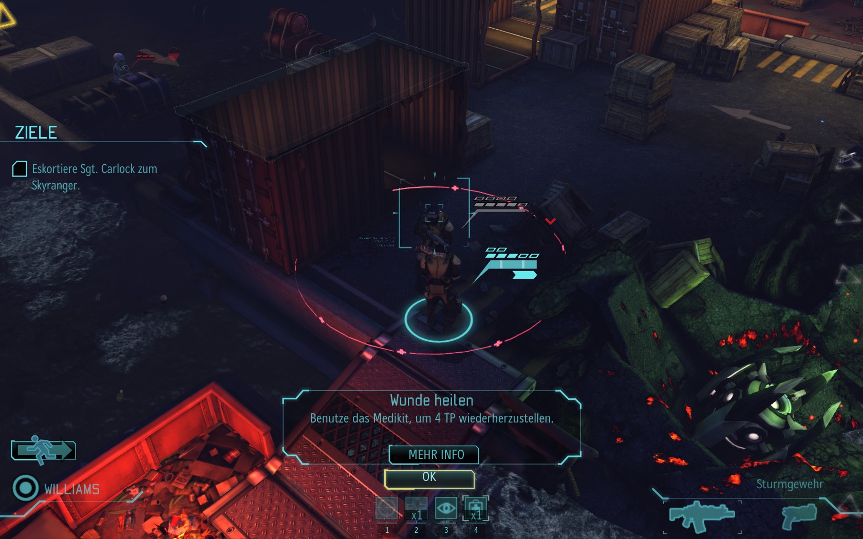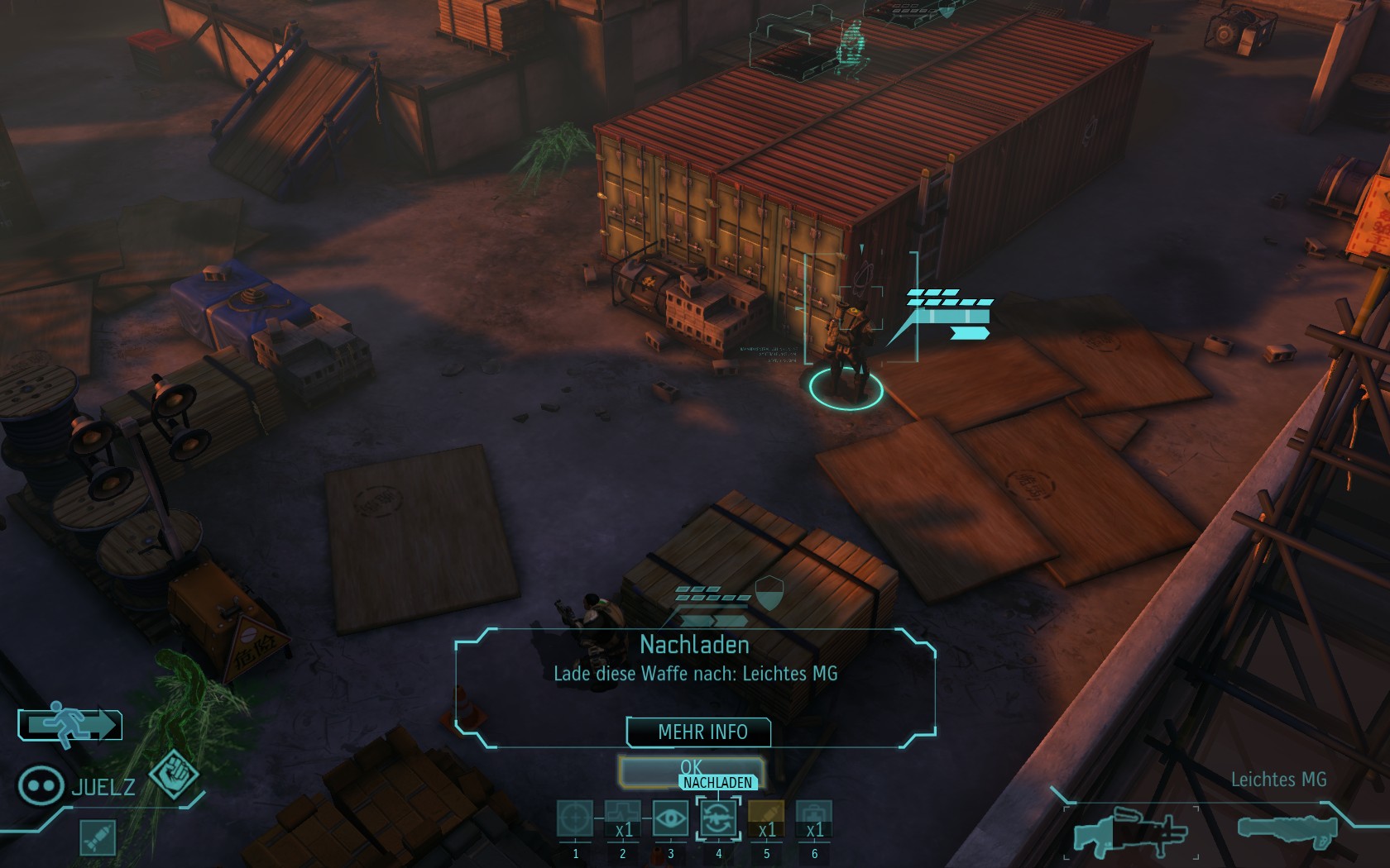 Die Aliens schicken neue Truppen. Einer landet direkt vor uns auf dem Container: