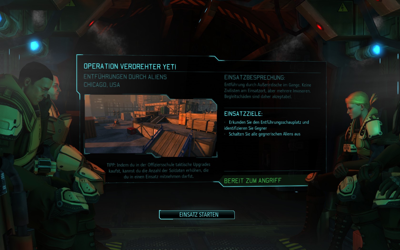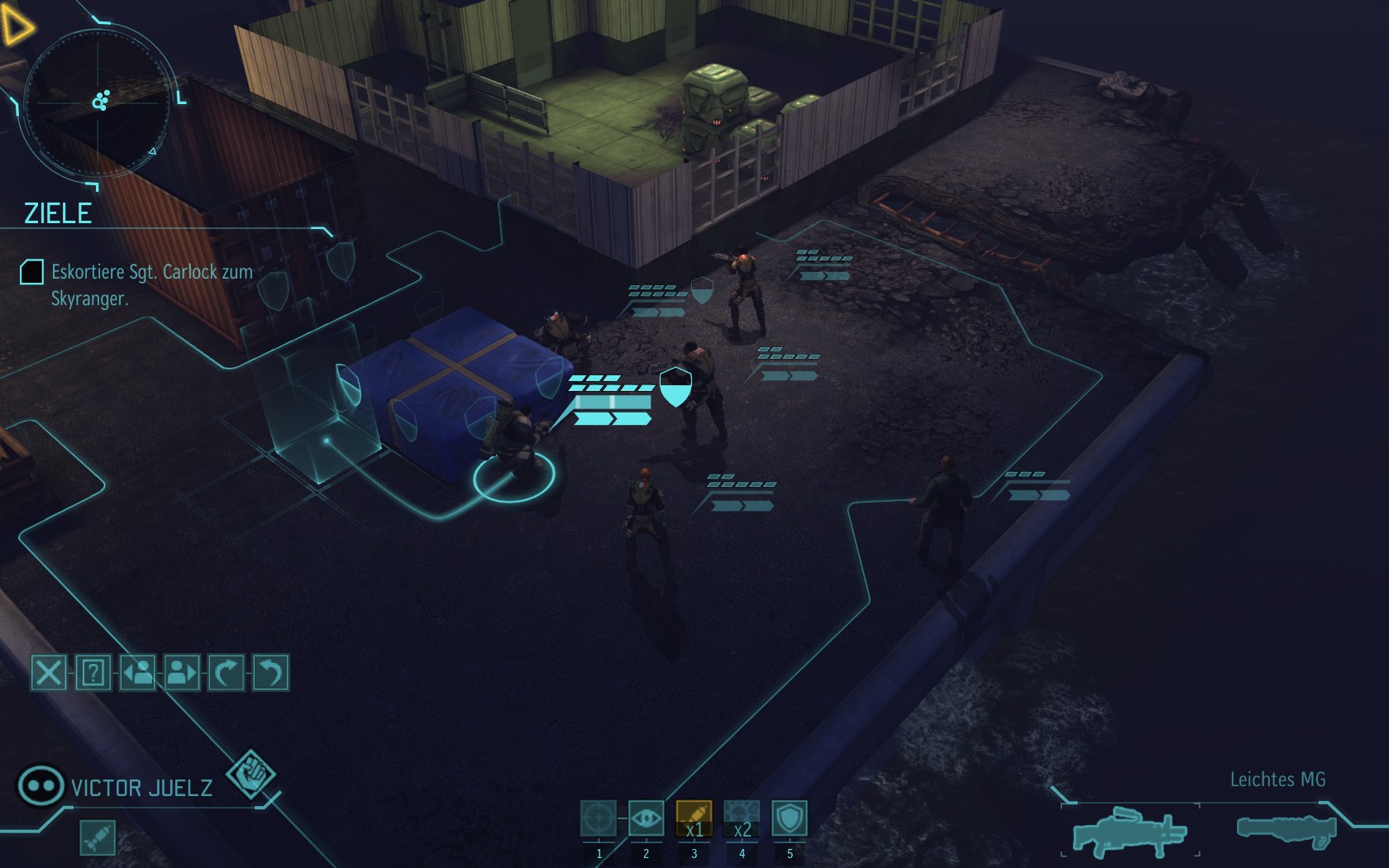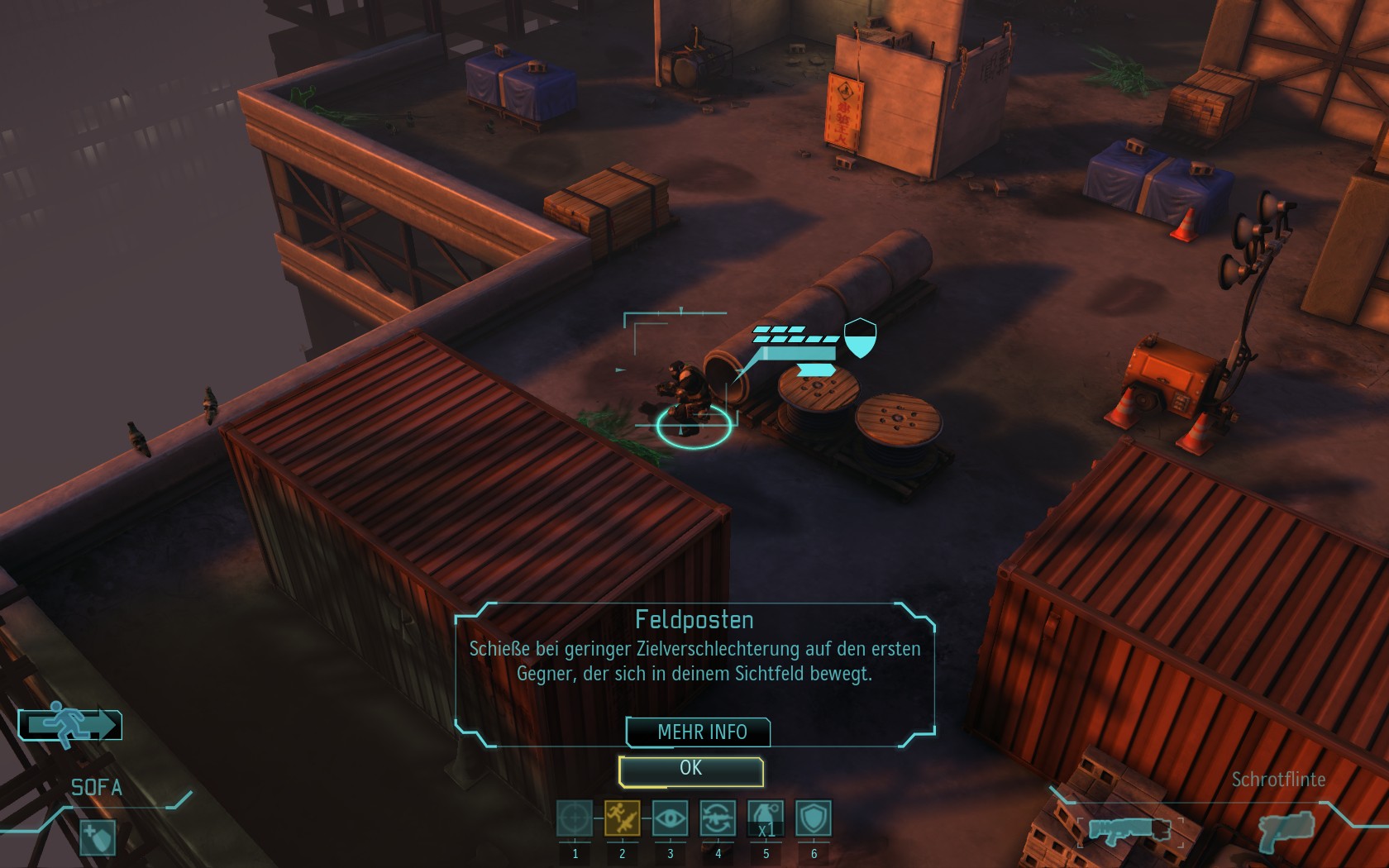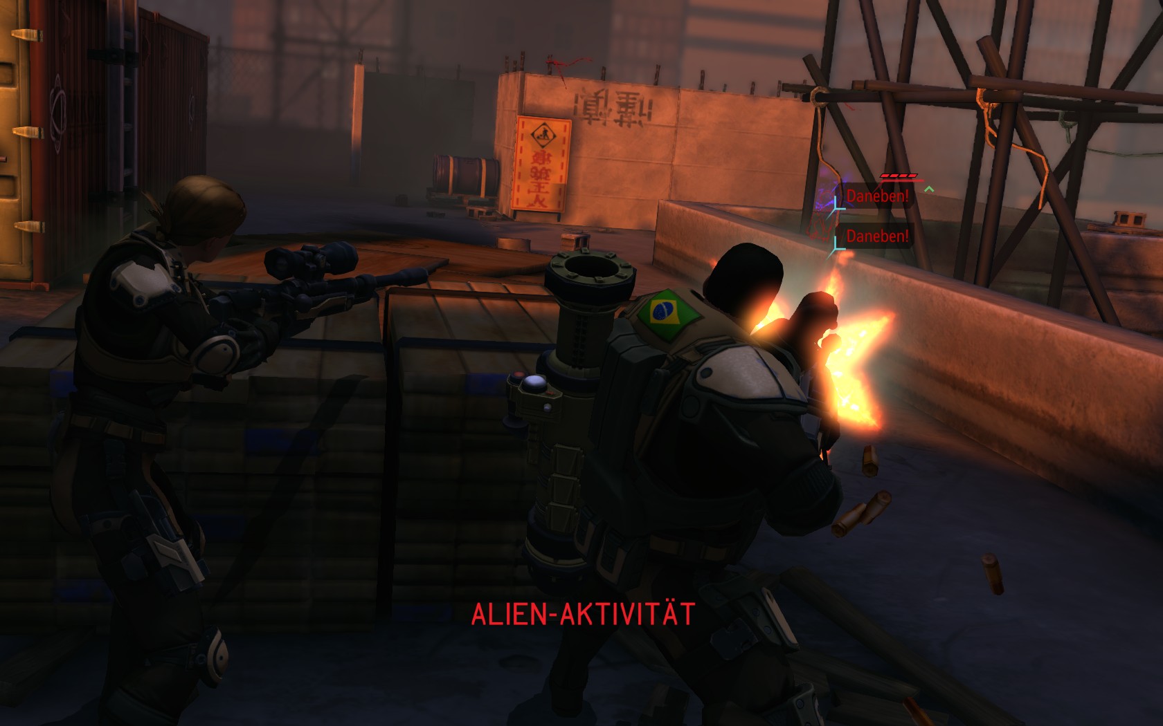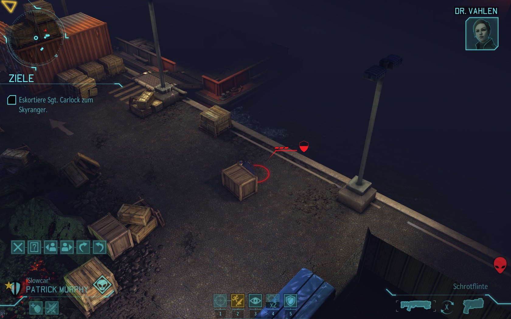 Die Aliens schicken neue Truppen. Einer landet direkt vor uns auf dem Container: