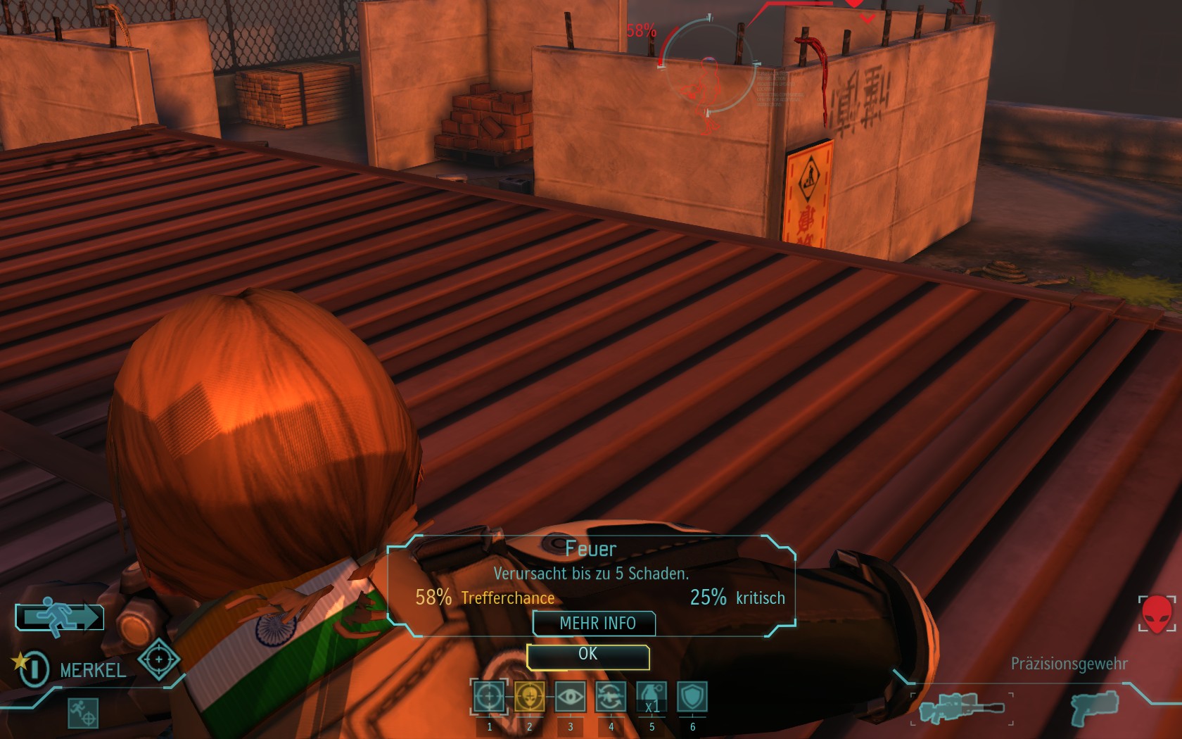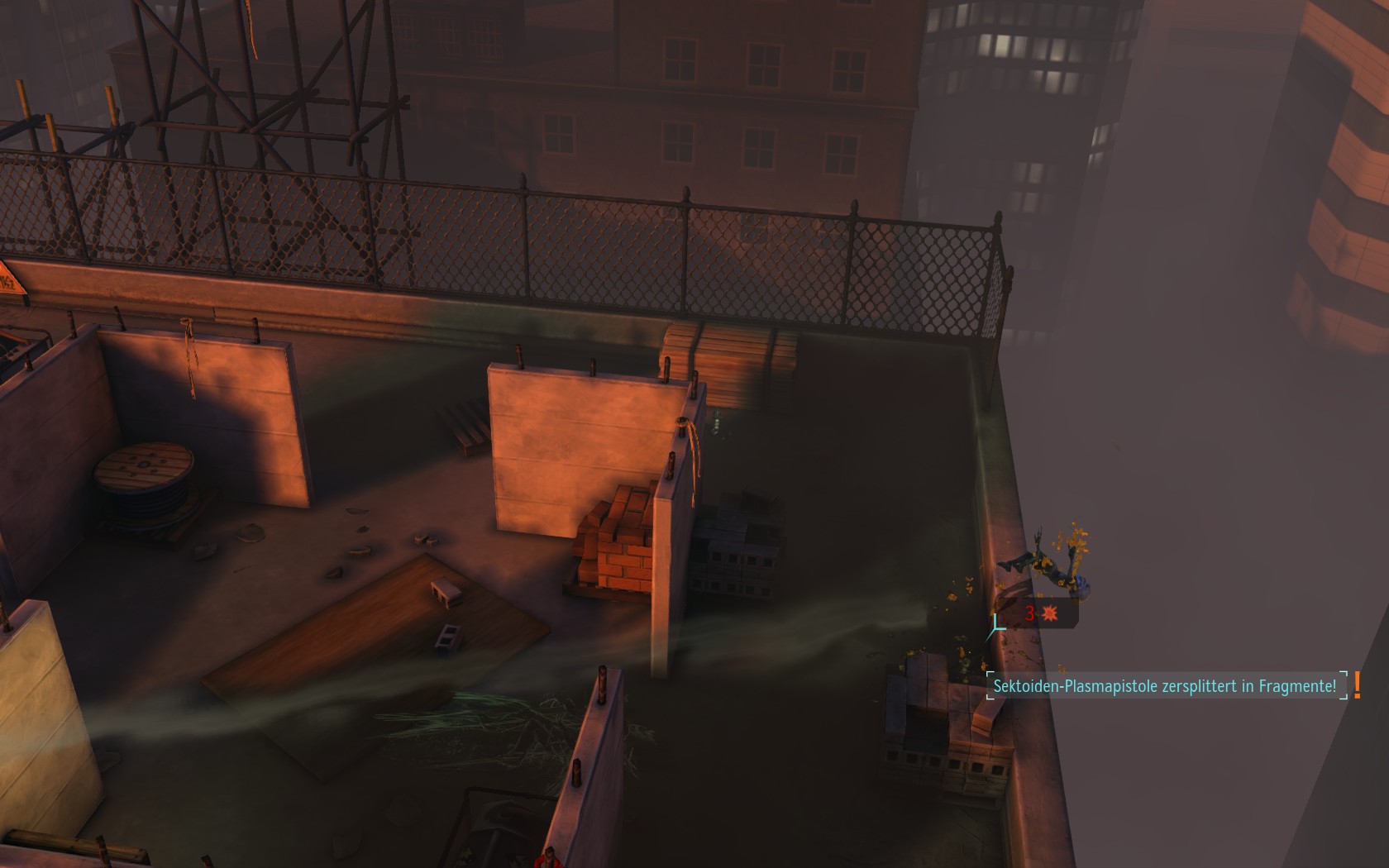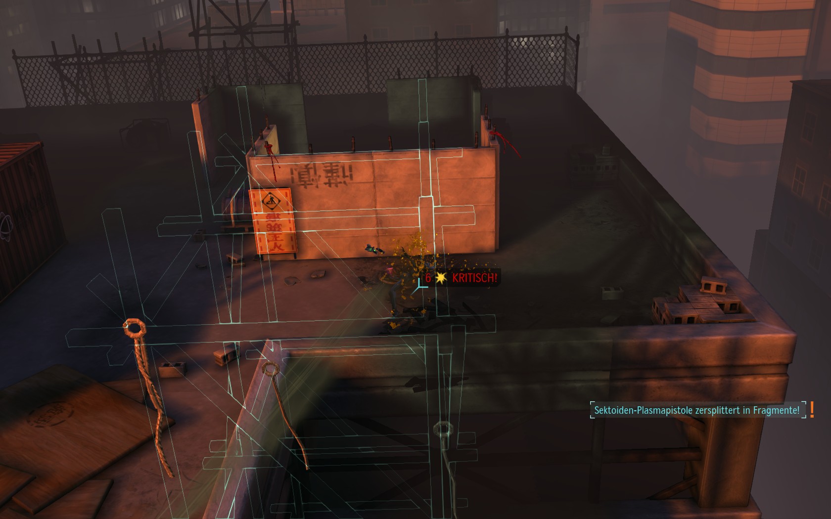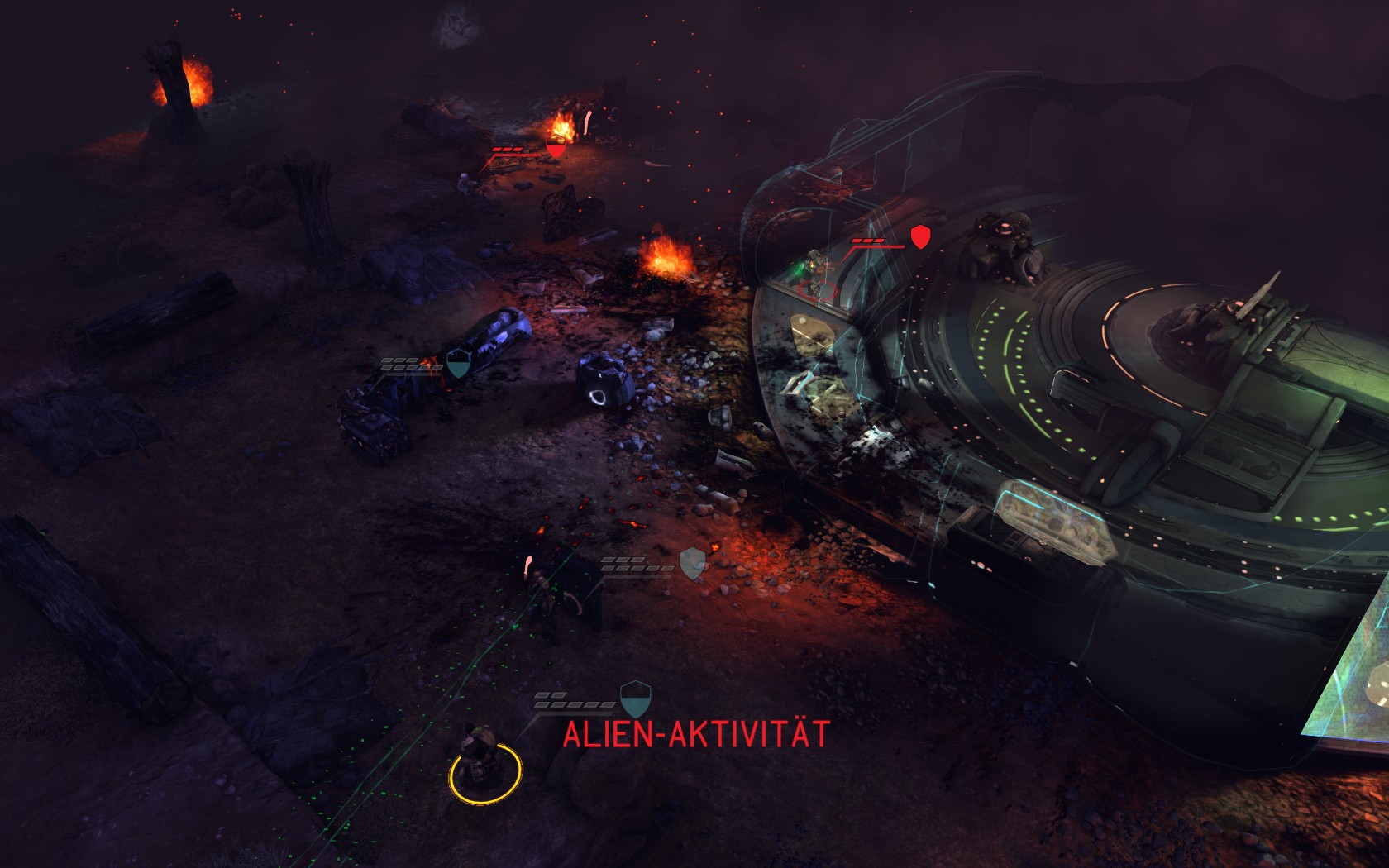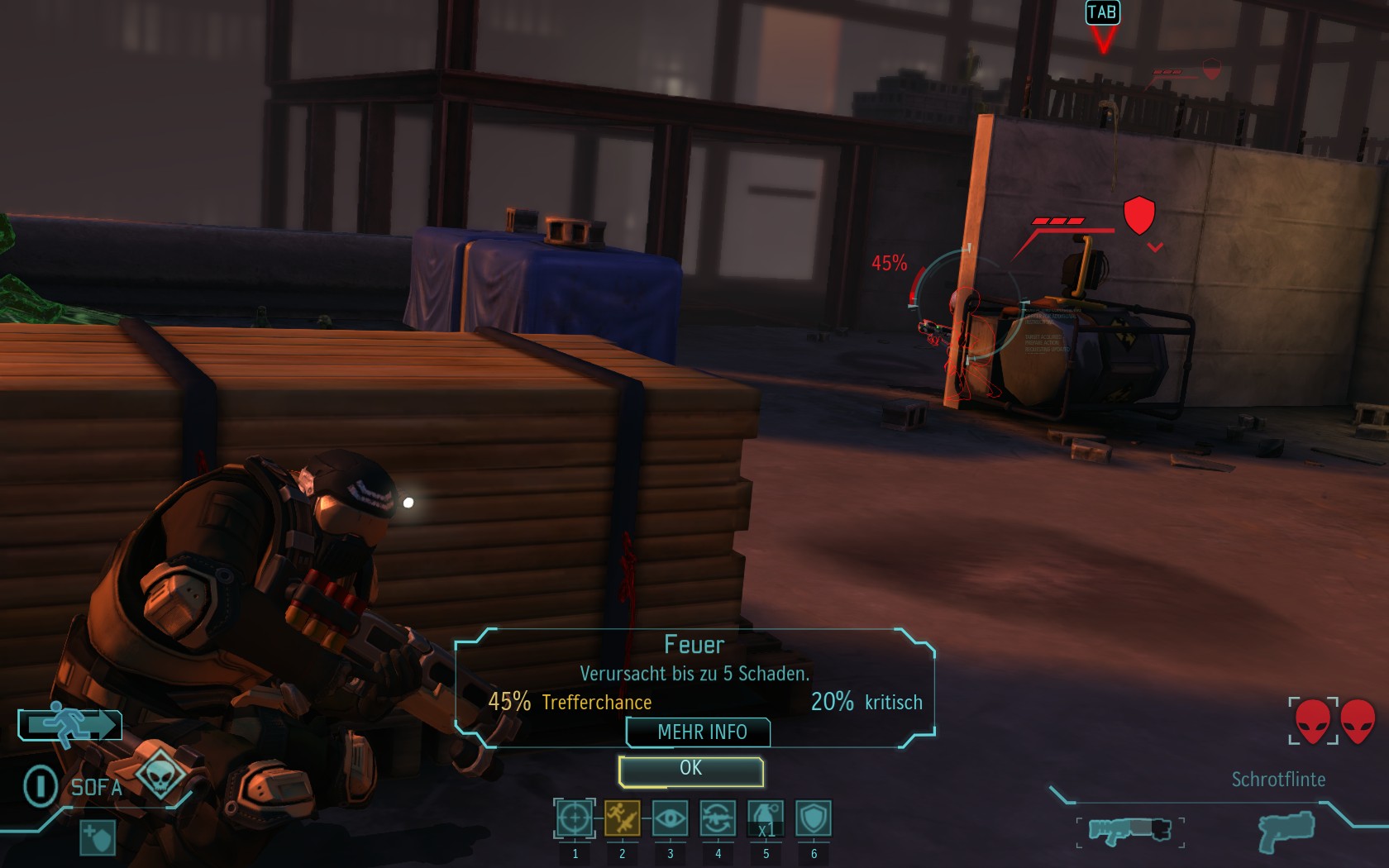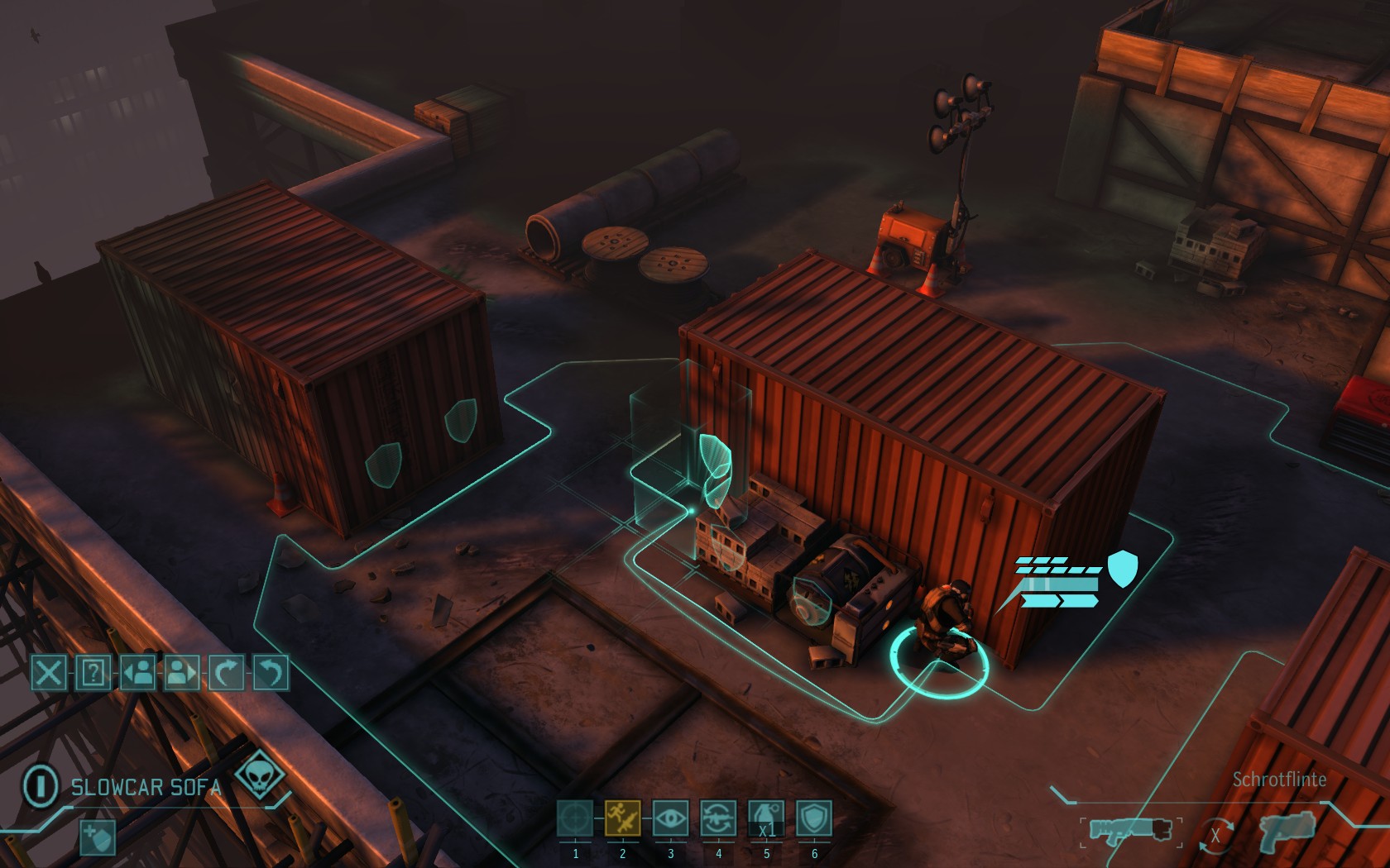 Die Aliens schicken neue Truppen. Einer landet direkt vor uns auf dem Container: