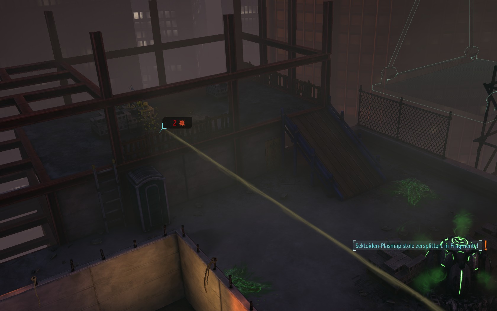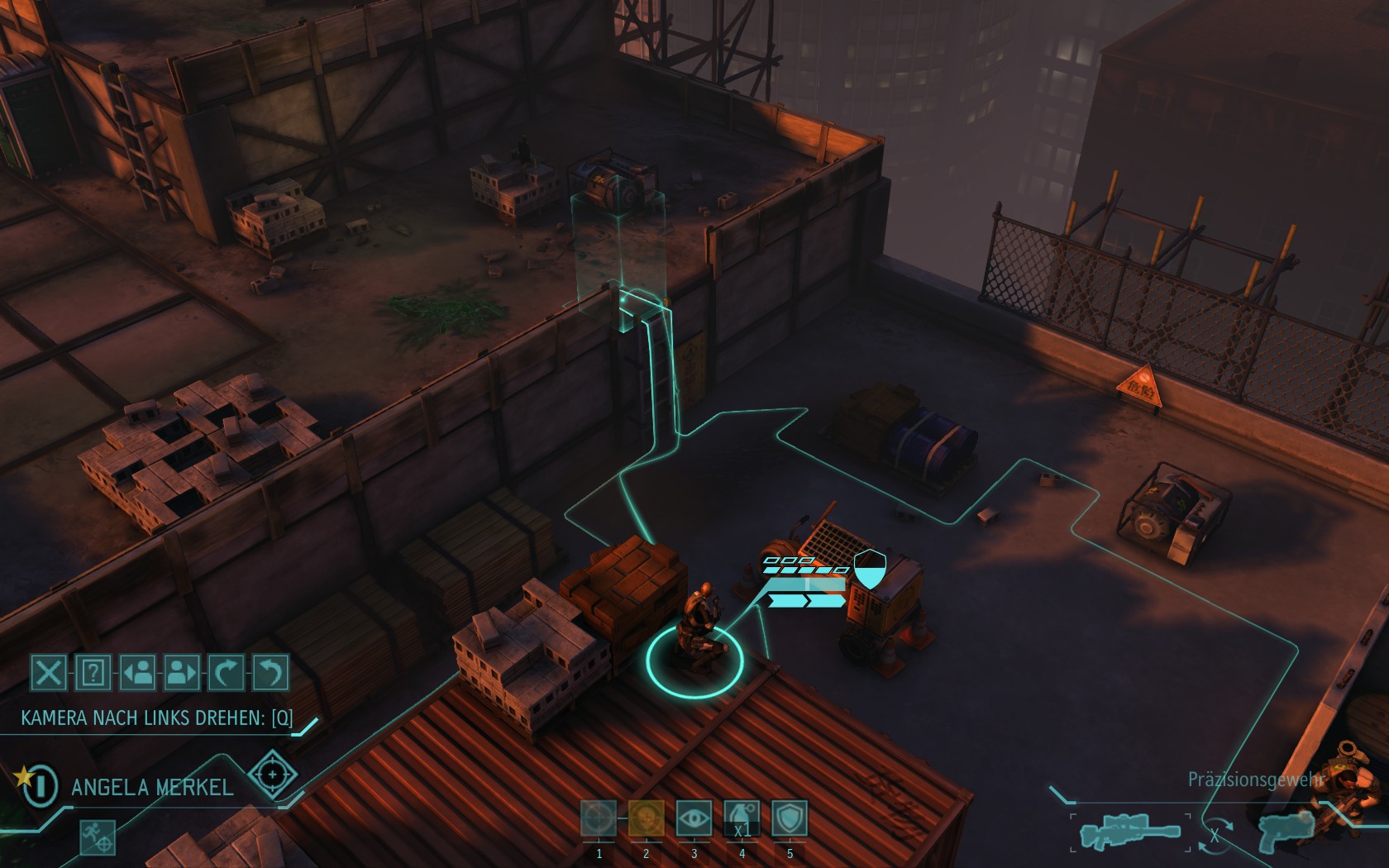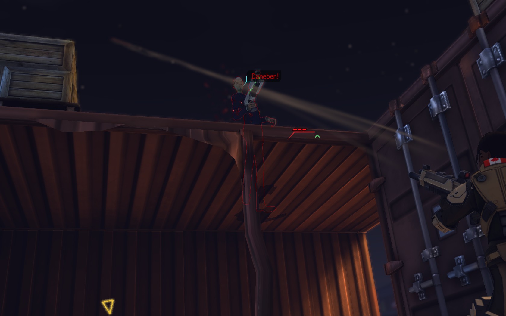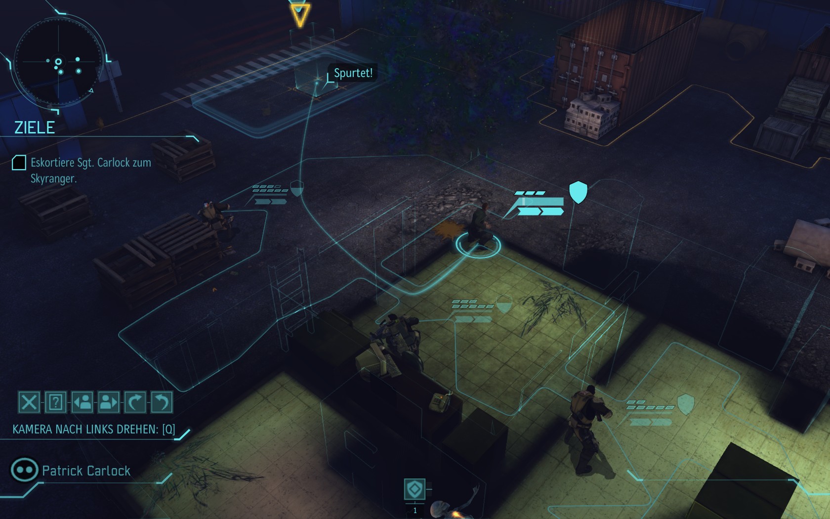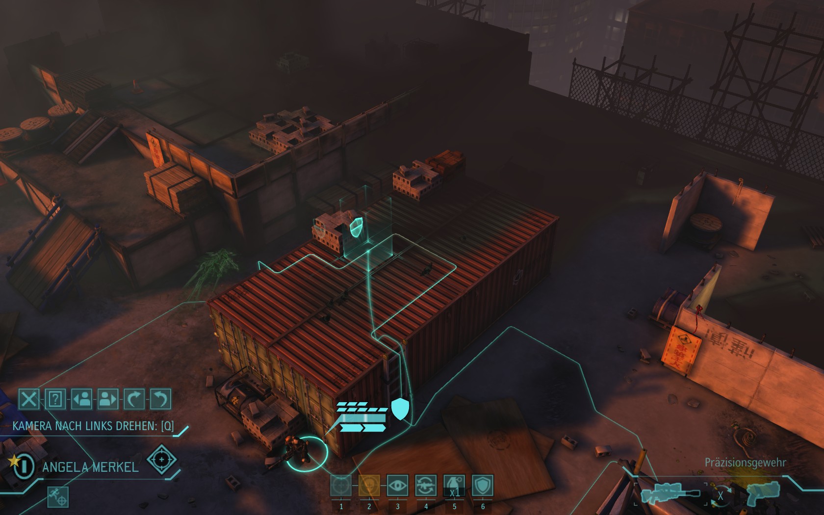 Die Aliens schicken neue Truppen. Einer landet direkt vor uns auf dem Container: