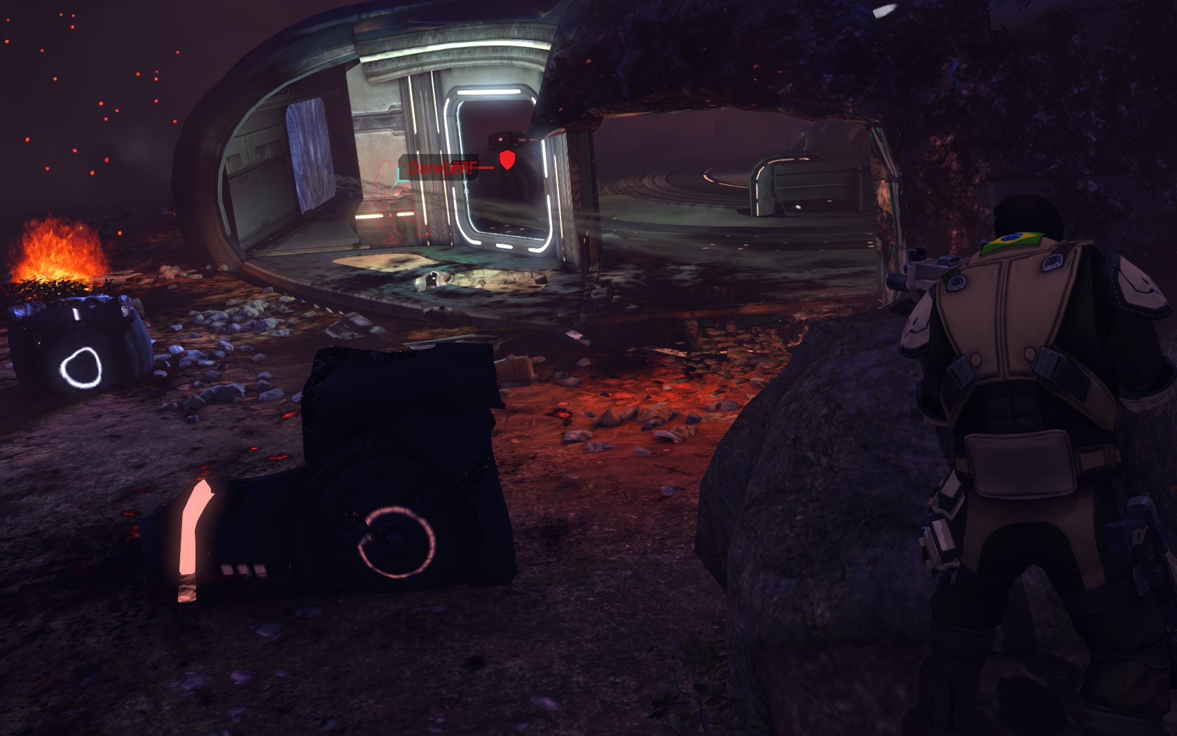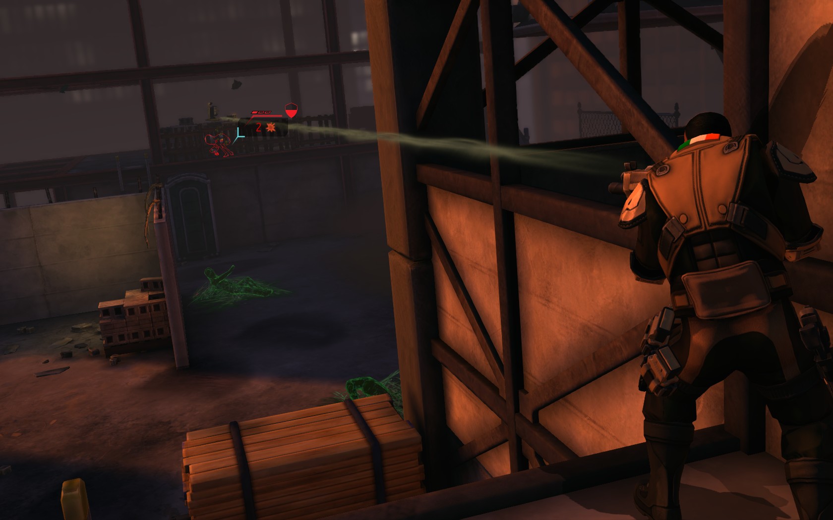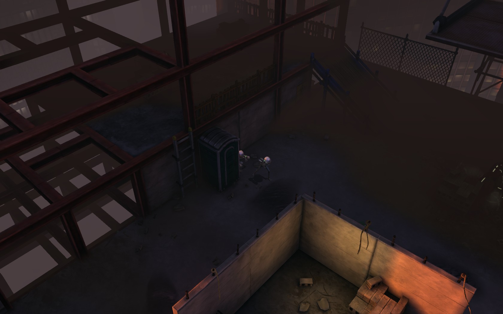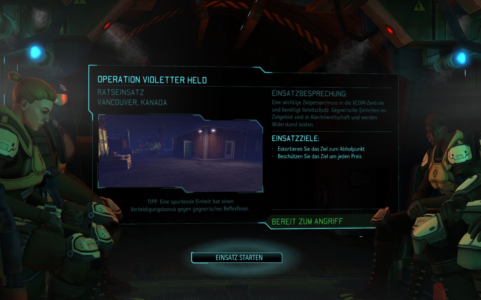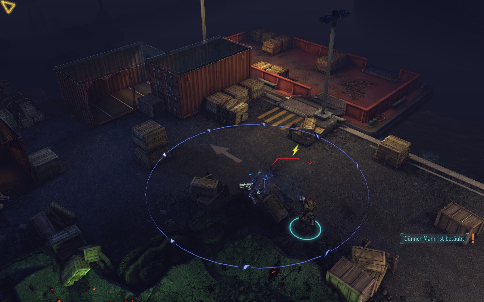 Die Aliens schicken neue Truppen. Einer landet direkt vor uns auf dem Container: