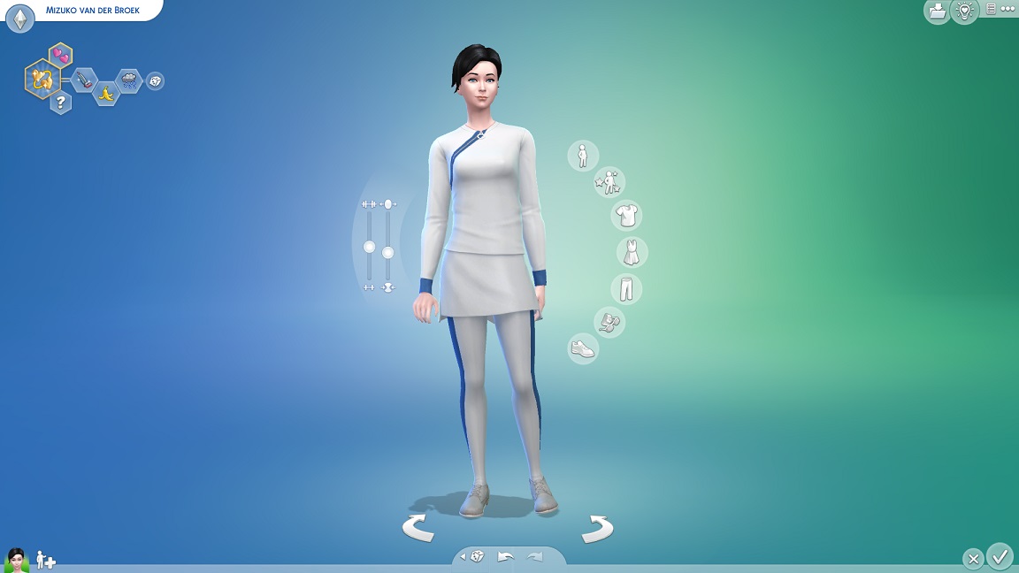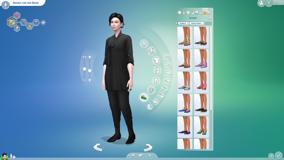 Ihr Flottenjob stellt eher eine Episode in ihrem Leben dar, sodass sie sowohl bei Hitze wie auch bei Kälte ihre Kleidung wechselt. Ich hätte gerne für eines eine Uniform und für das andere etwas Business-Mäßiges gehabt, aber zu beidem fehlen mir die wirklich schicken Angebote. Sie nutzt für die Wärme etwas, das an den Schnitt ihrer Jacke erinnert.