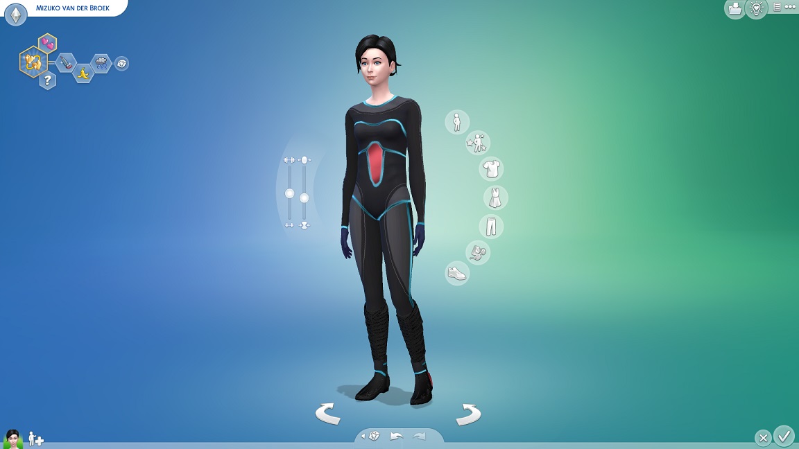 Dies hier wäre meine beste Möglichkeit, Veenas Anzugdesign umzusetzen - leider eben mit Lurleis identisch. (Bei den Handschuhen kommen generische der Vision besser entgegen als die vom Mod mitgelieferte, während ich bei den Stiefeln Glück habe, dass sie genau auf diese Weise aufeinander glitchen.)