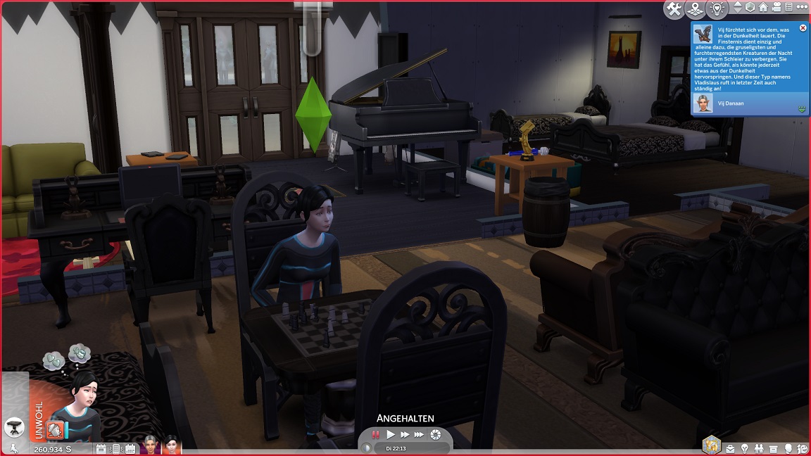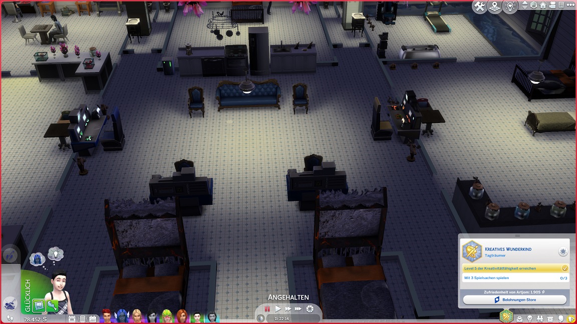 Ich wiederhole auch viele der verschütteten Schritte: Angel-Bestrebung und Schlafverzicht für Lurlei, drei Spielsachen samt Sammelkiste für Artjom, zwei weitere Konsoltentische auf der Brücke.