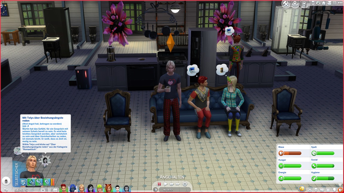 "Dritte" Denkblasen erscheinen oft wegen ernst werdender Grundbedürfnisse. Hier zieht es Martin dringend aufs Klo.