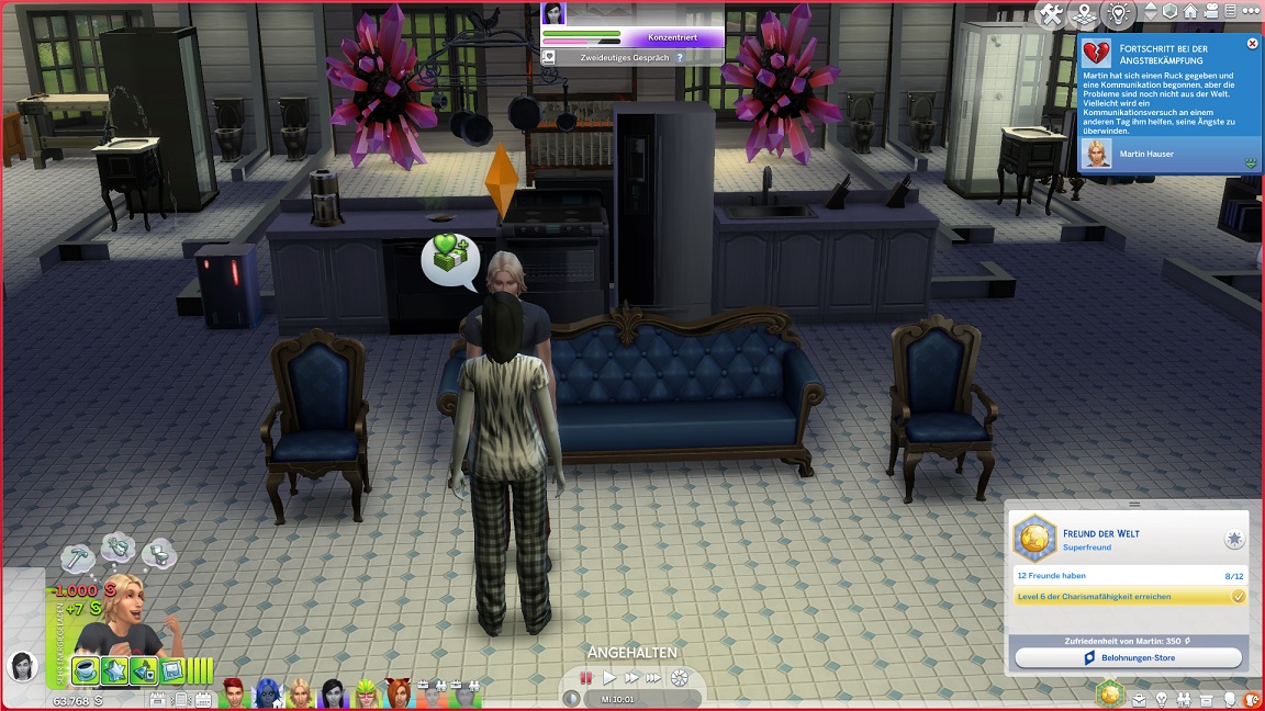 Lurlei besitzt an Bord quasi eine Auszubildendenstelle, und auch wenn sie vorwiegend unter Telys an den Maschinen arbeitet, wird sie innerhalb der Abteilungen gerne herumrotiert und taucht somit so ziemlich überall einmal auf. (Ich würde auch gerne ihre Sims-Eigenart übernehmen, dass sie keinen Schlaf benötigt; das macht sie fremdartig, aber nicht zum Zauberkind, und schließlich stammt ihr Volk ja von Fischen ab.) Sie besitzt immer noch ihren moralischen Kompass, wurde von ihrem Vater im Guten auf die Reise geschickt und befindet sich jenseits irgendwelcher Gräben innerhalb der Mannschaft, sodass sie mit ihrem jugendlichen Optimismus allen als Gesprächspartner dienen kann. Telys wuchs in dem letzten Jahr zu einer Mentorin für sie heran, doch kann sie bei ihrem eigenen Background nicht verstehen, warum Telys ihr Kind so von sich weist. Sie bringt die Mannschaft auch zu einer weiteren Person, doch dafür muss ich ausholen.