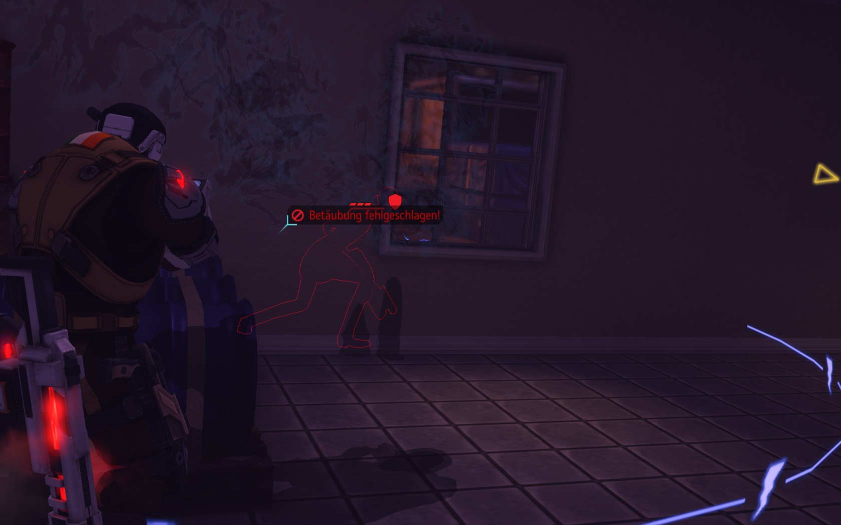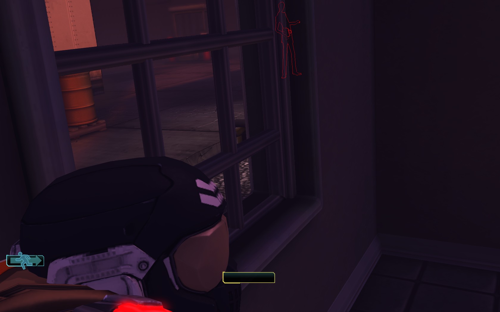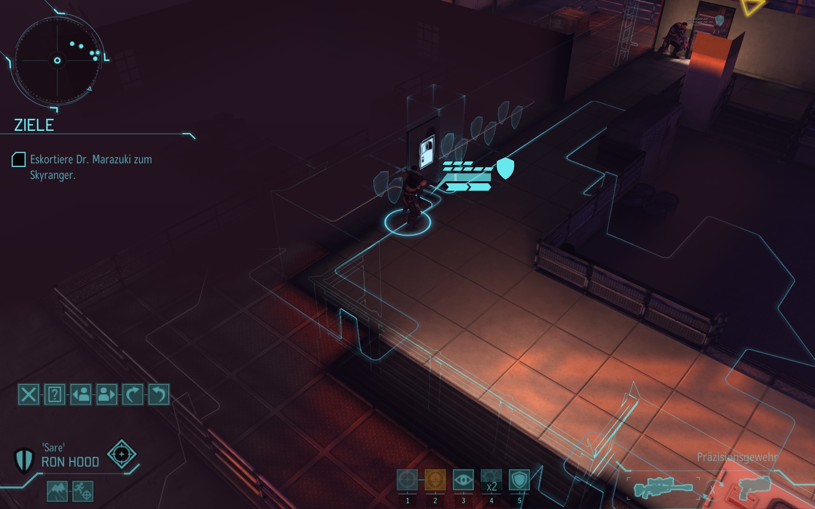 Sare verlässt durch einen Nebenausgang das Labor. Erstmal an der Türe vorbeischauen: