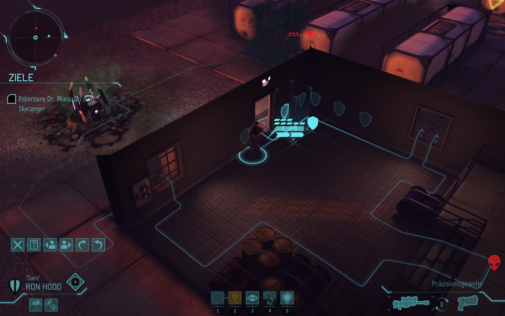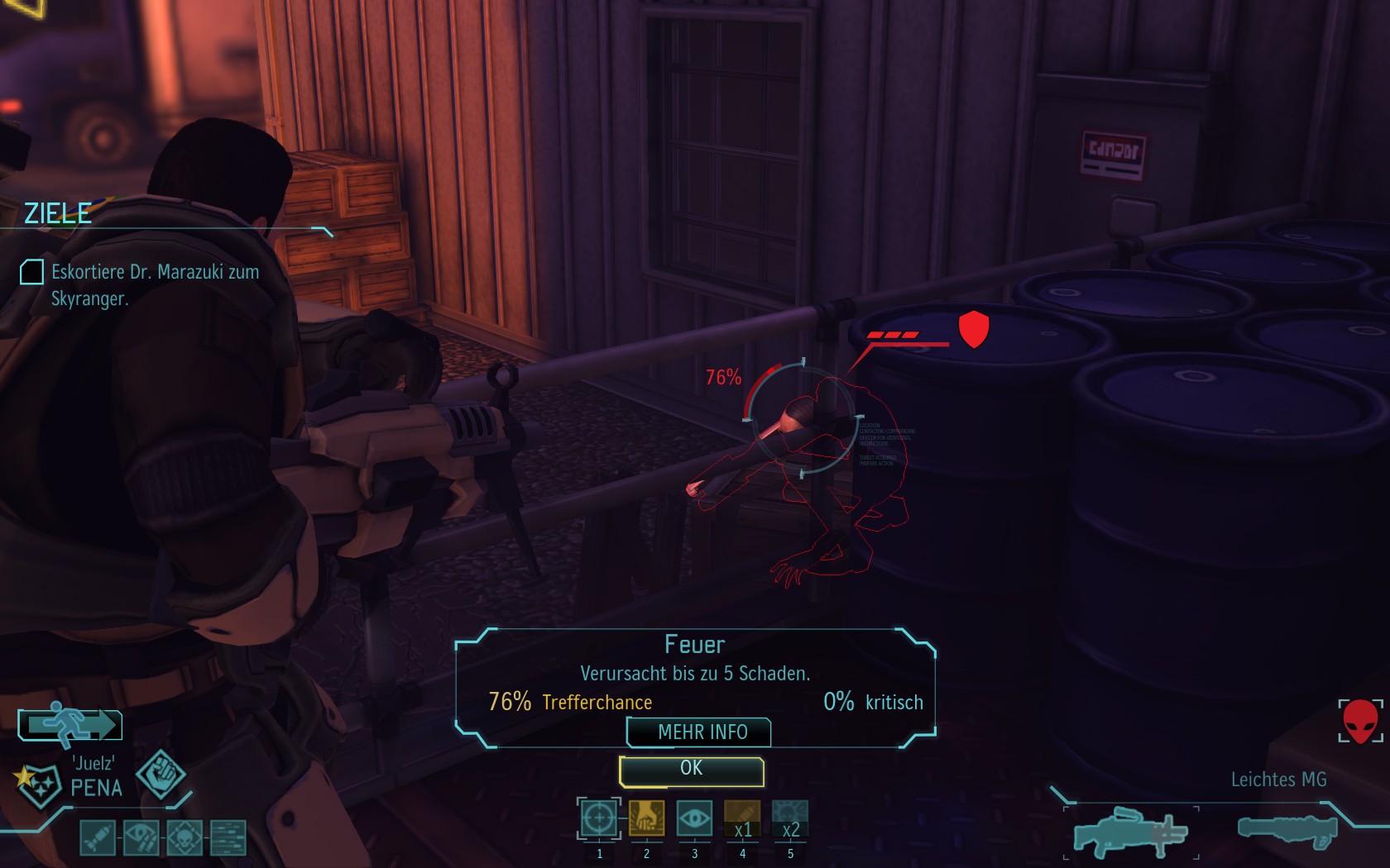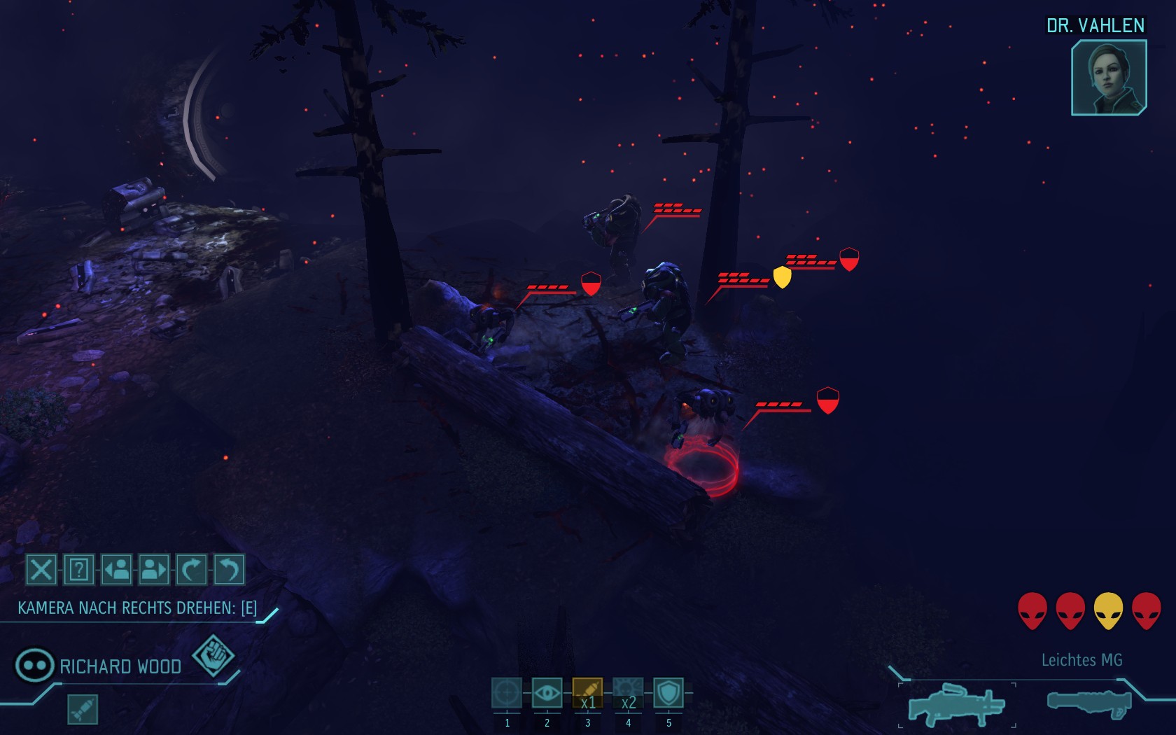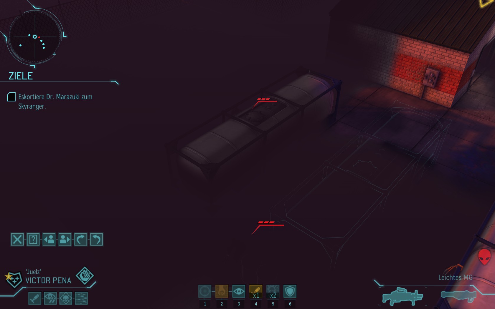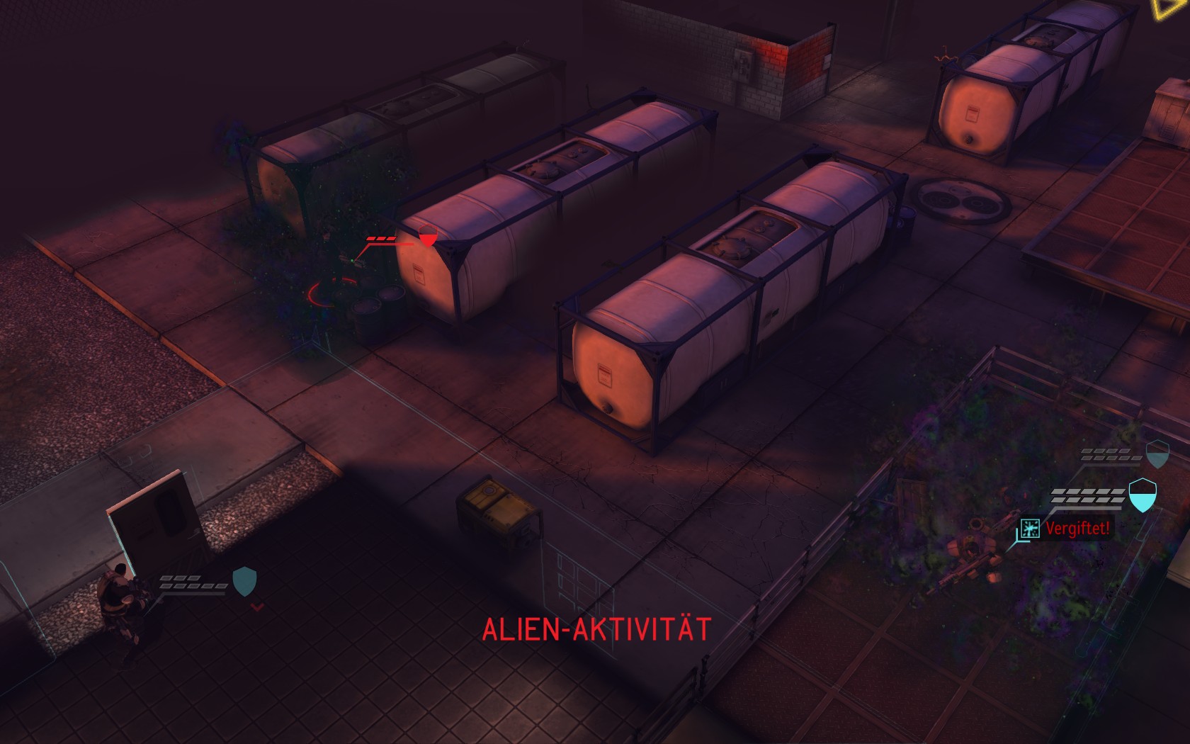 Eine sehr große Gruppe Aliens: 2 Schweber und 3 Mutons! Das sind sehr kräftige und einschüchternde Gegner...