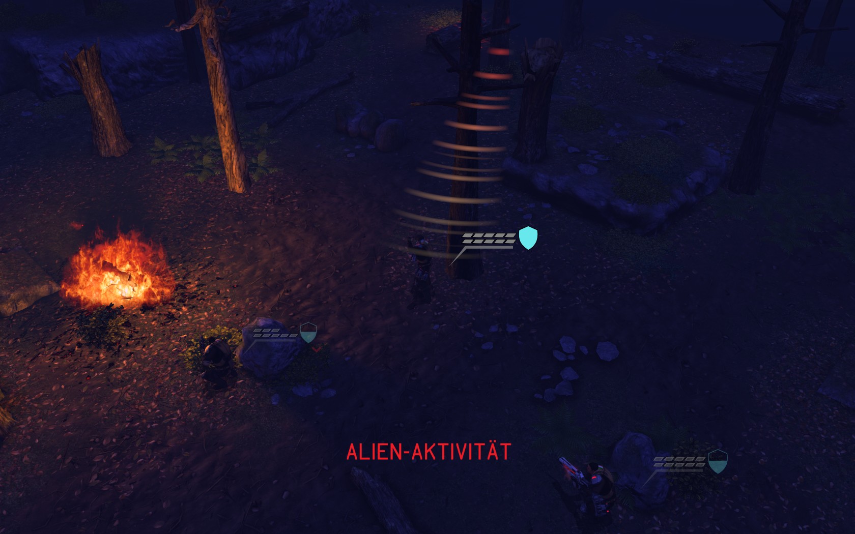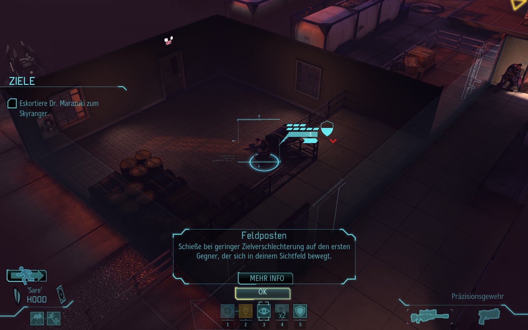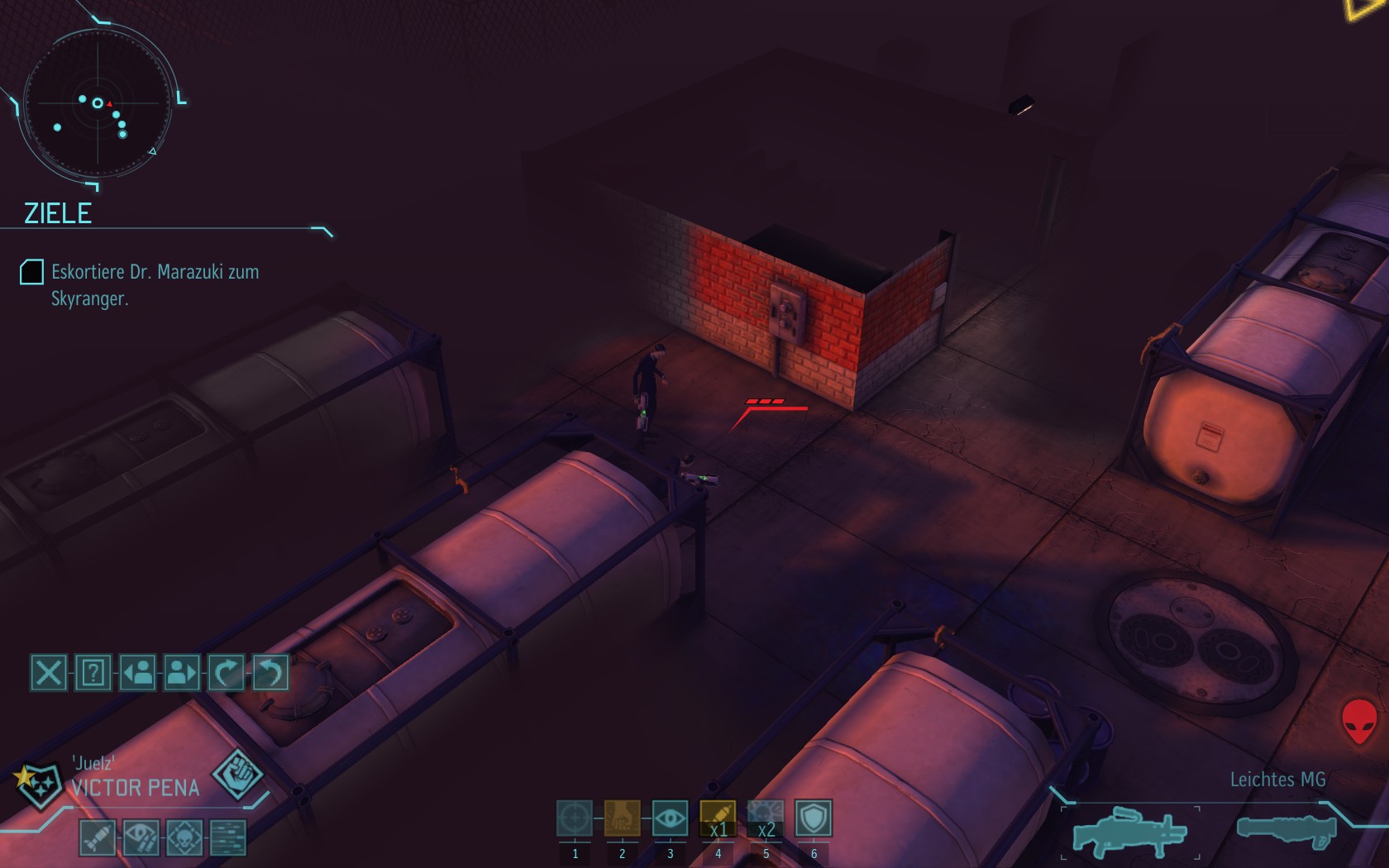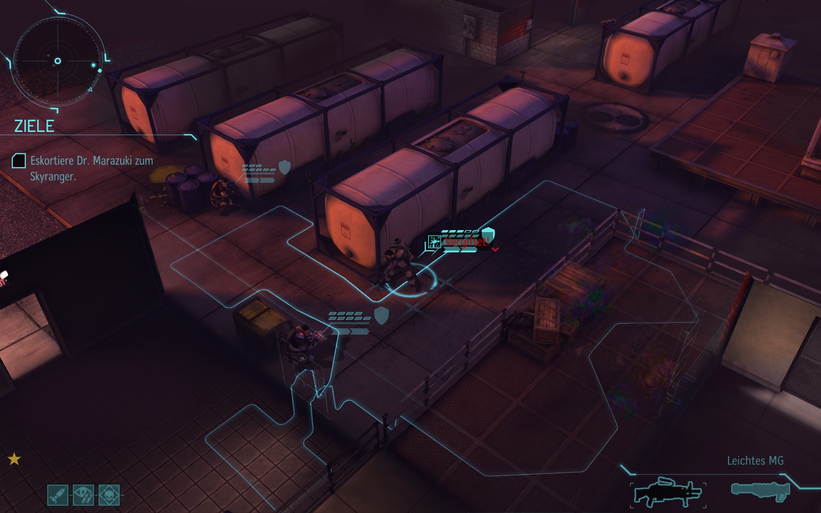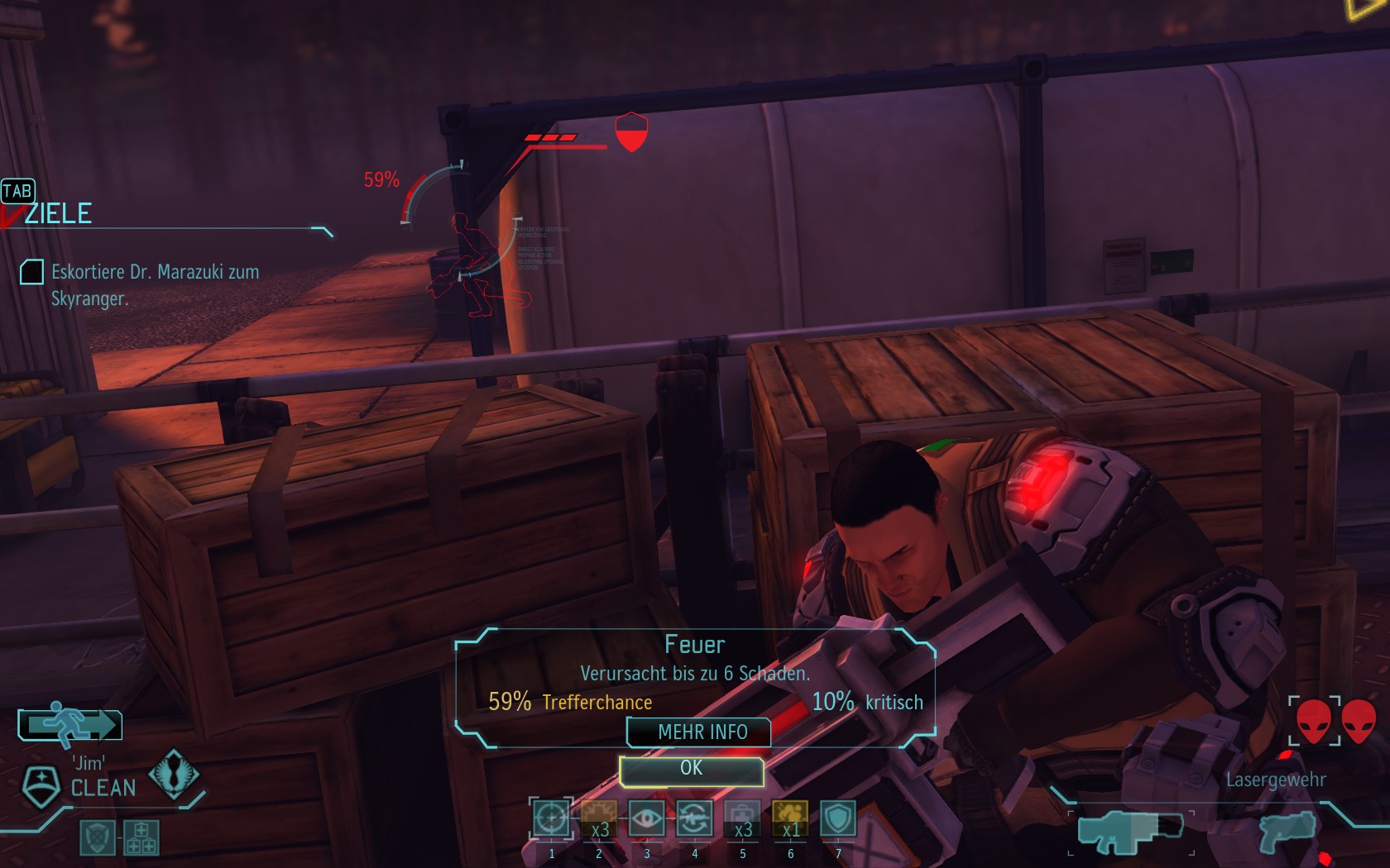 Eine sehr große Gruppe Aliens: 2 Schweber und 3 Mutons! Das sind sehr kräftige und einschüchternde Gegner...