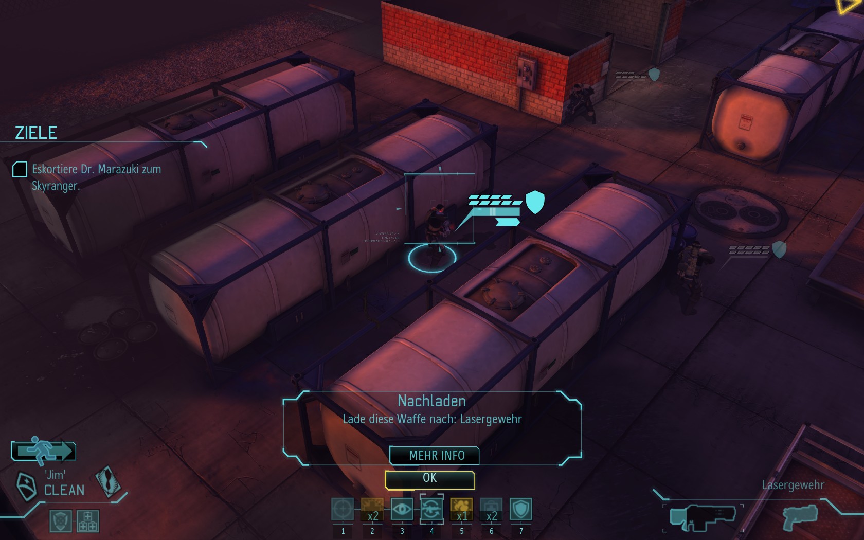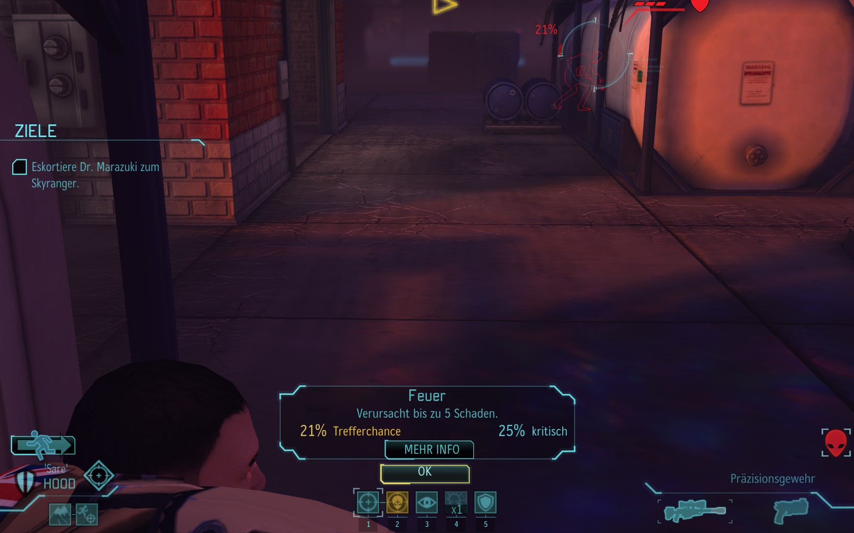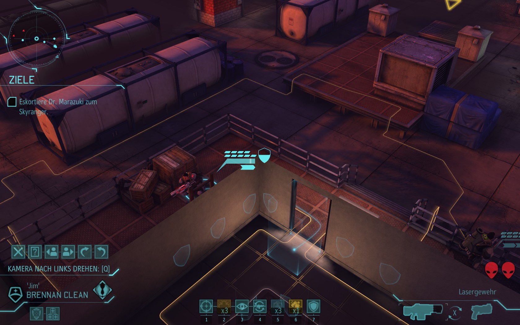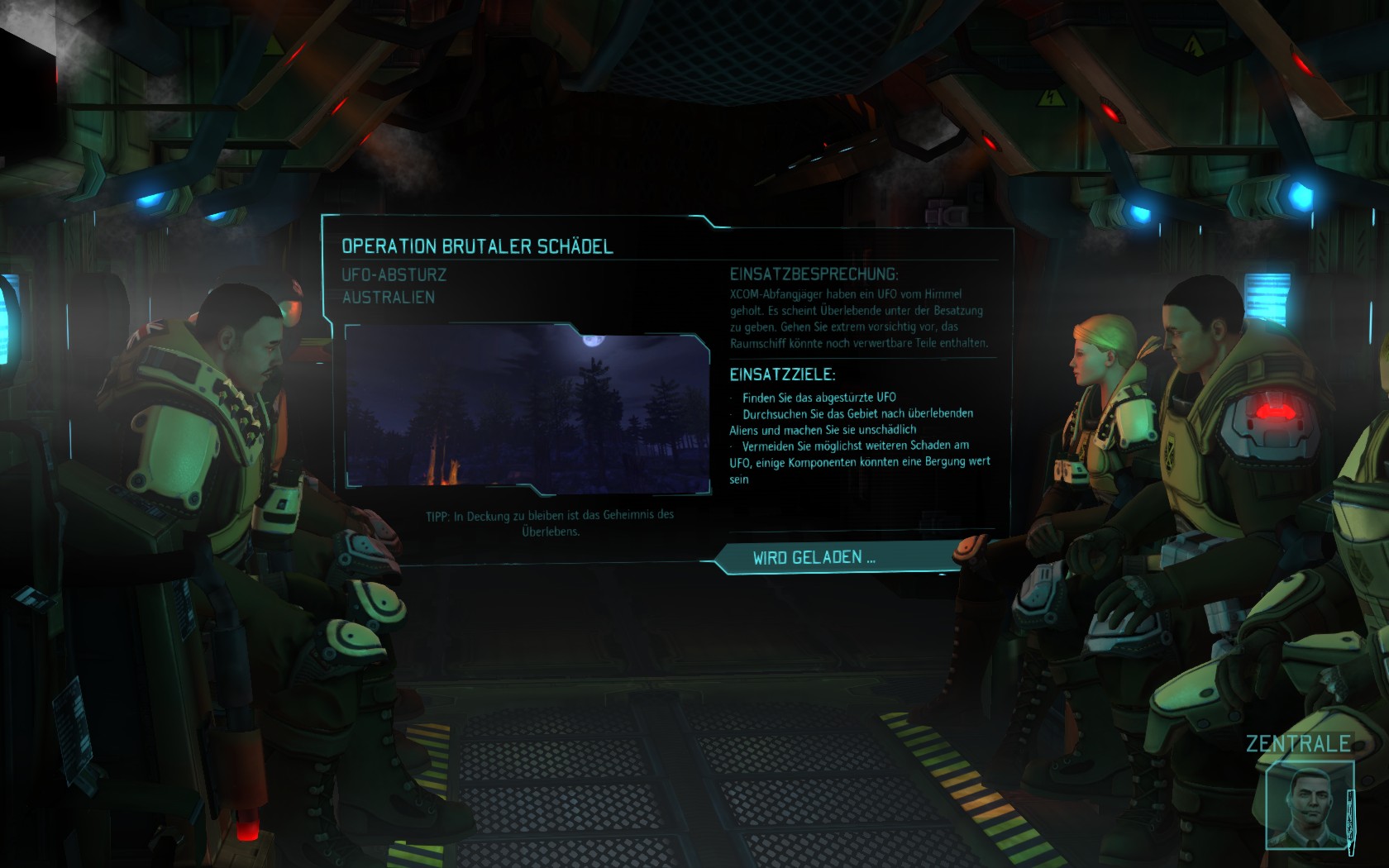 Eine sehr große Gruppe Aliens: 2 Schweber und 3 Mutons! Das sind sehr kräftige und einschüchternde Gegner...