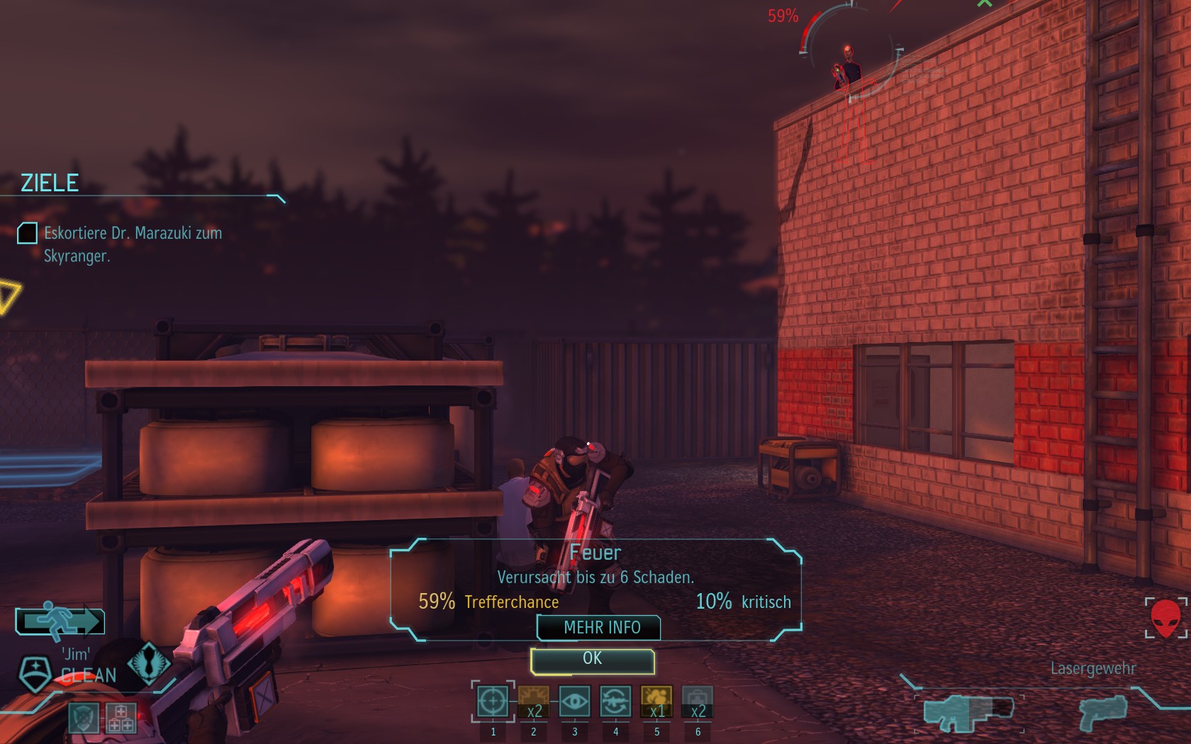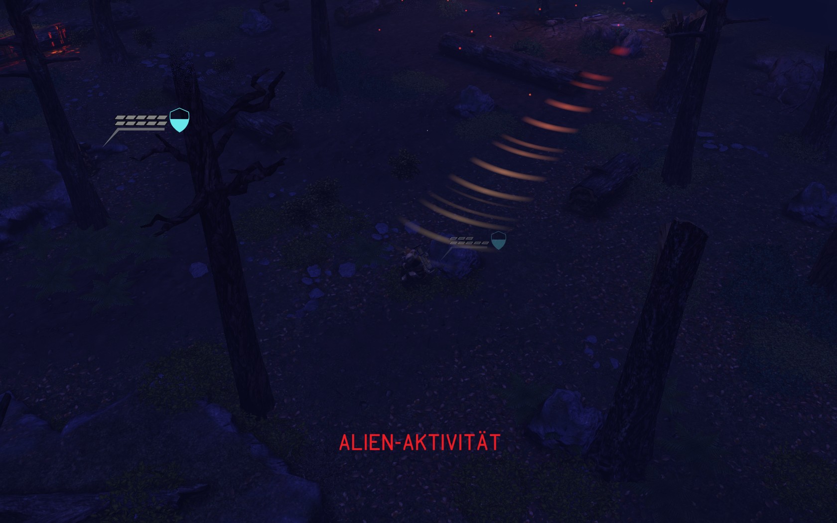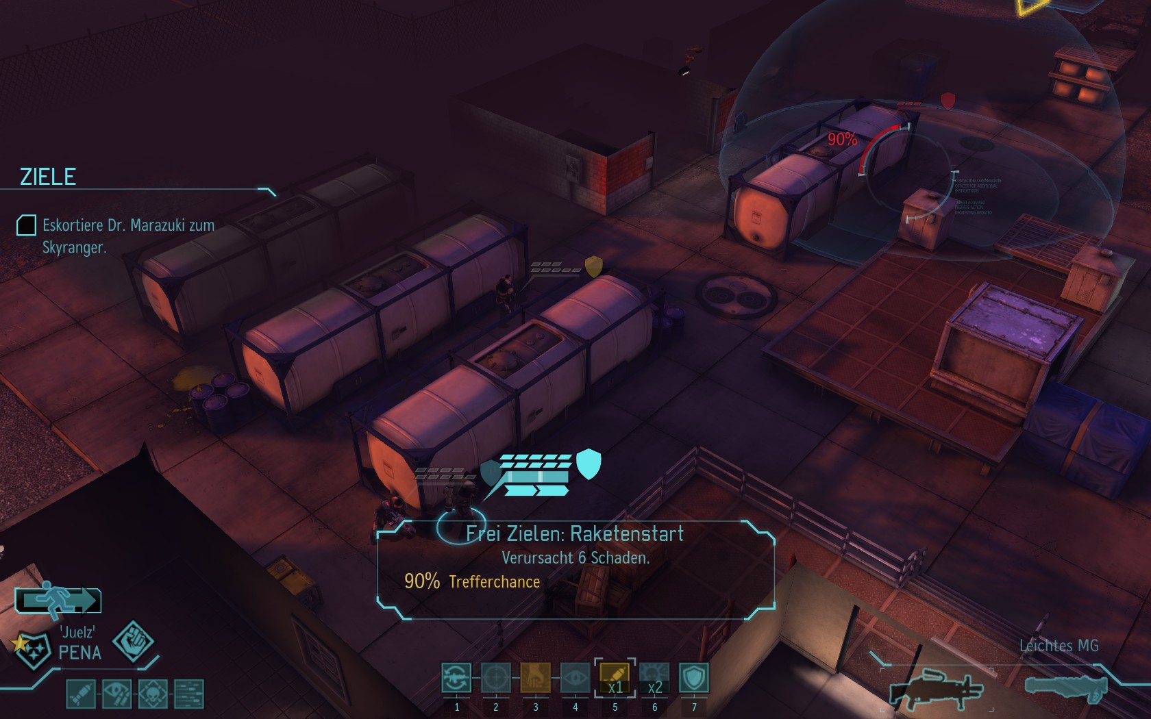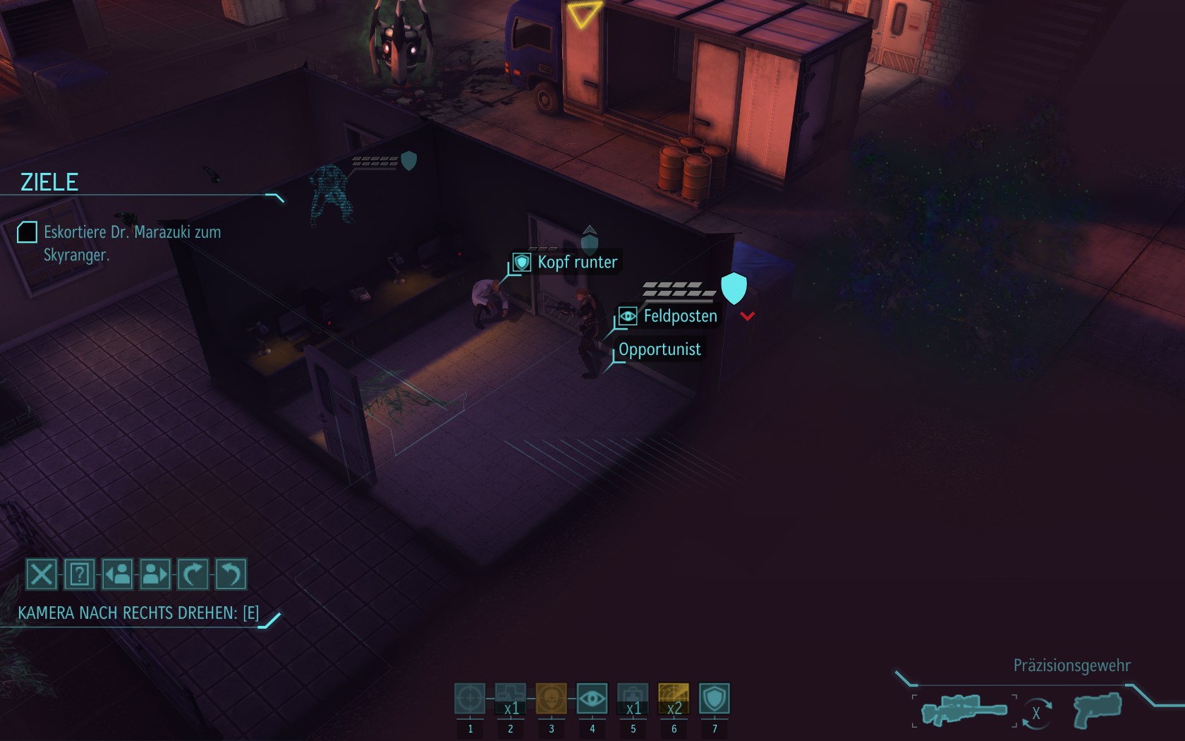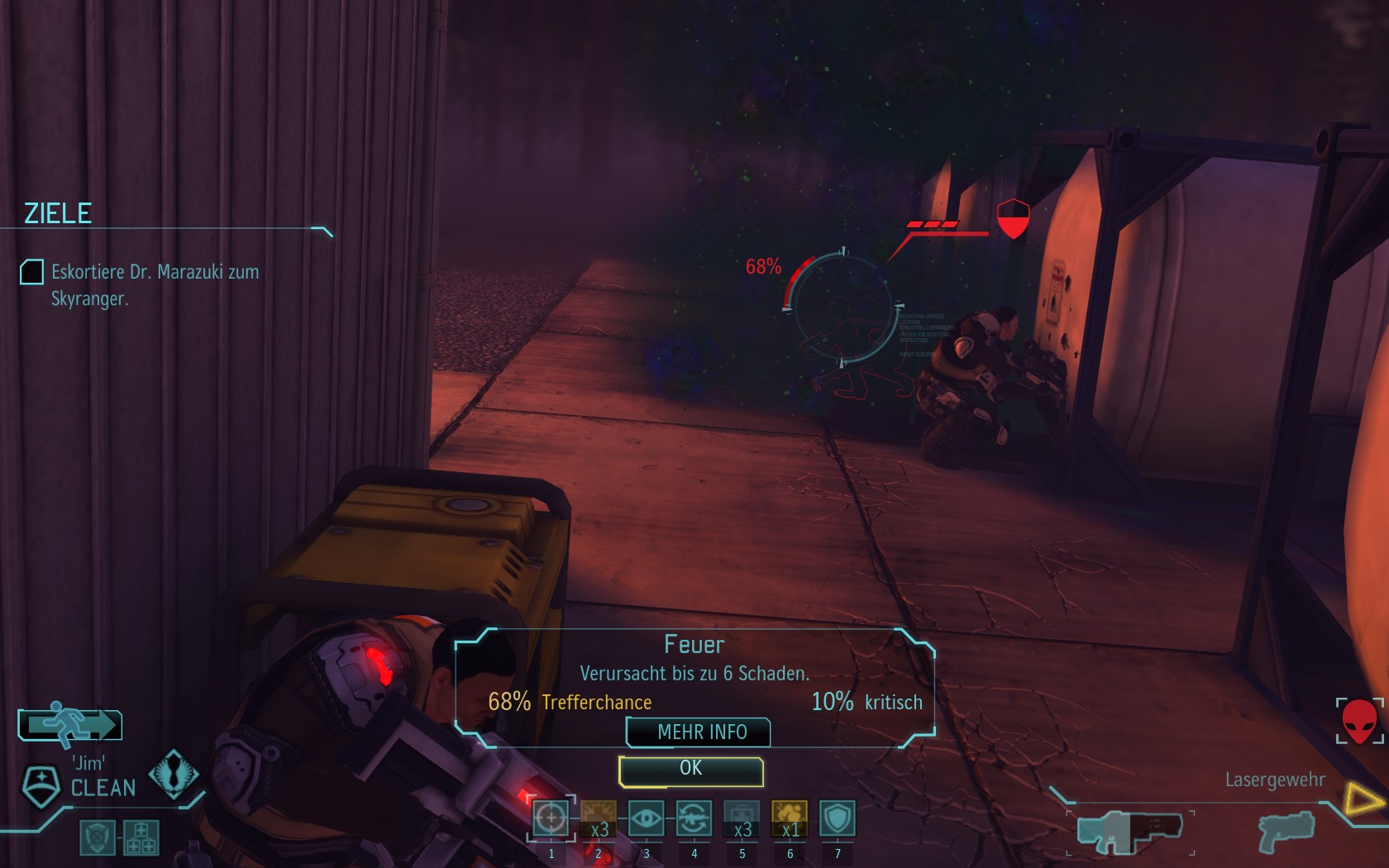 Eine sehr große Gruppe Aliens: 2 Schweber und 3 Mutons! Das sind sehr kräftige und einschüchternde Gegner...