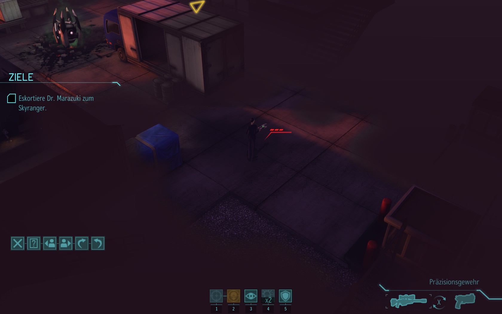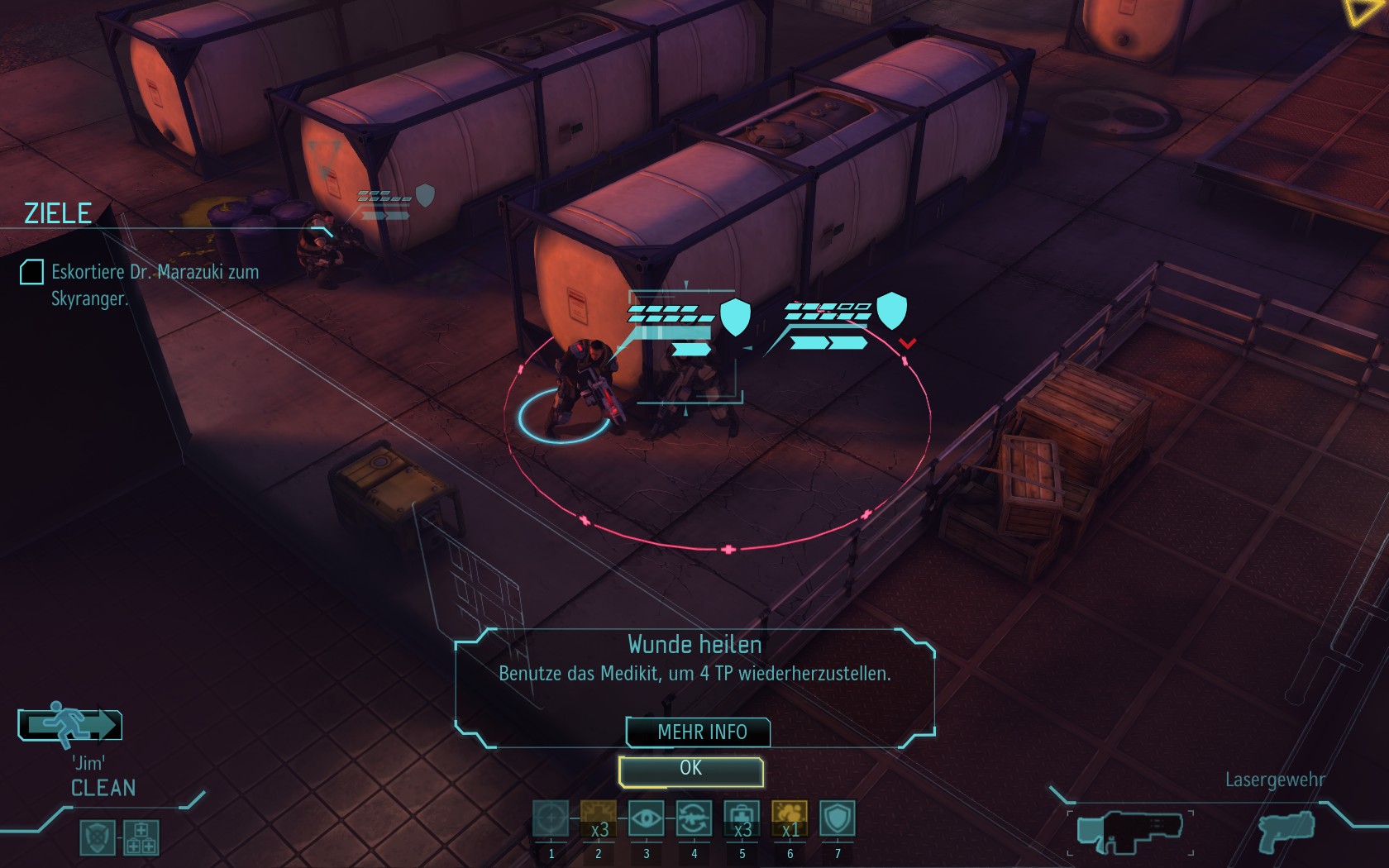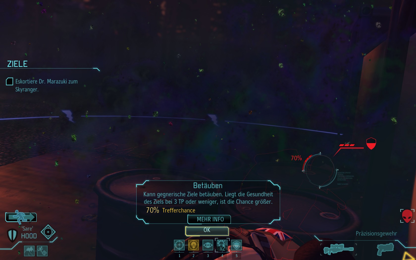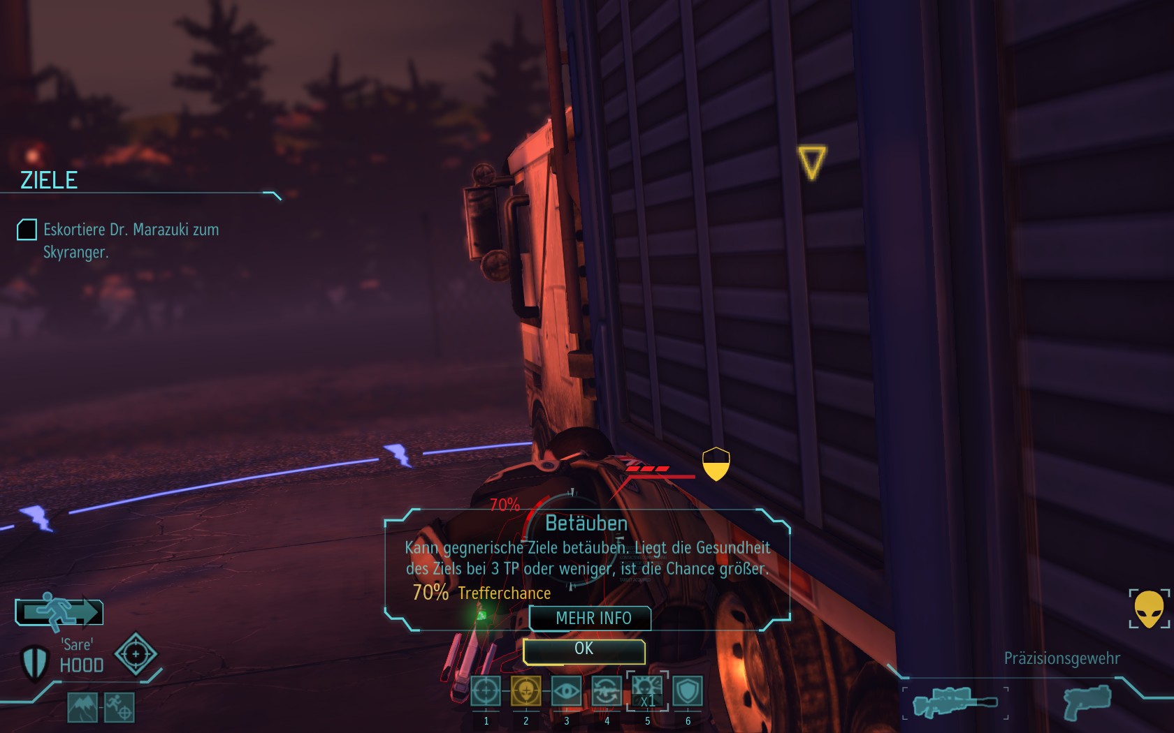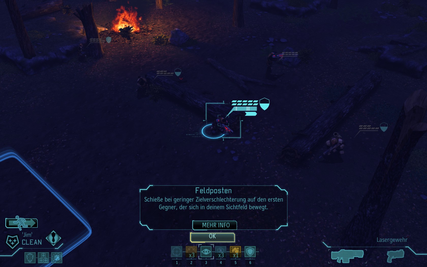 Eine sehr große Gruppe Aliens: 2 Schweber und 3 Mutons! Das sind sehr kräftige und einschüchternde Gegner...