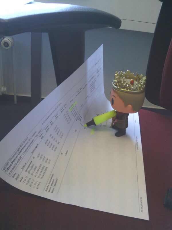 Mein Zimmerkollege ist heute krank, da habe ich ein Vertretungsschild gebastelt und den kleinen Joffrey auf seinen Stuhl gesetzt. Fanden alle bis jetzt witzig, selbst die Wirtschaftsprüfer (alle junge Spunde, unglaublich) die gerade wieder hier rum rennen. :D