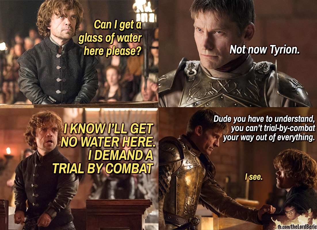 Neben Tyrion fand ich Oberyn sehr toll. Der interessierte Gesichtsausdruck, als der Zwerg ein Trial by Combat fordert. :D