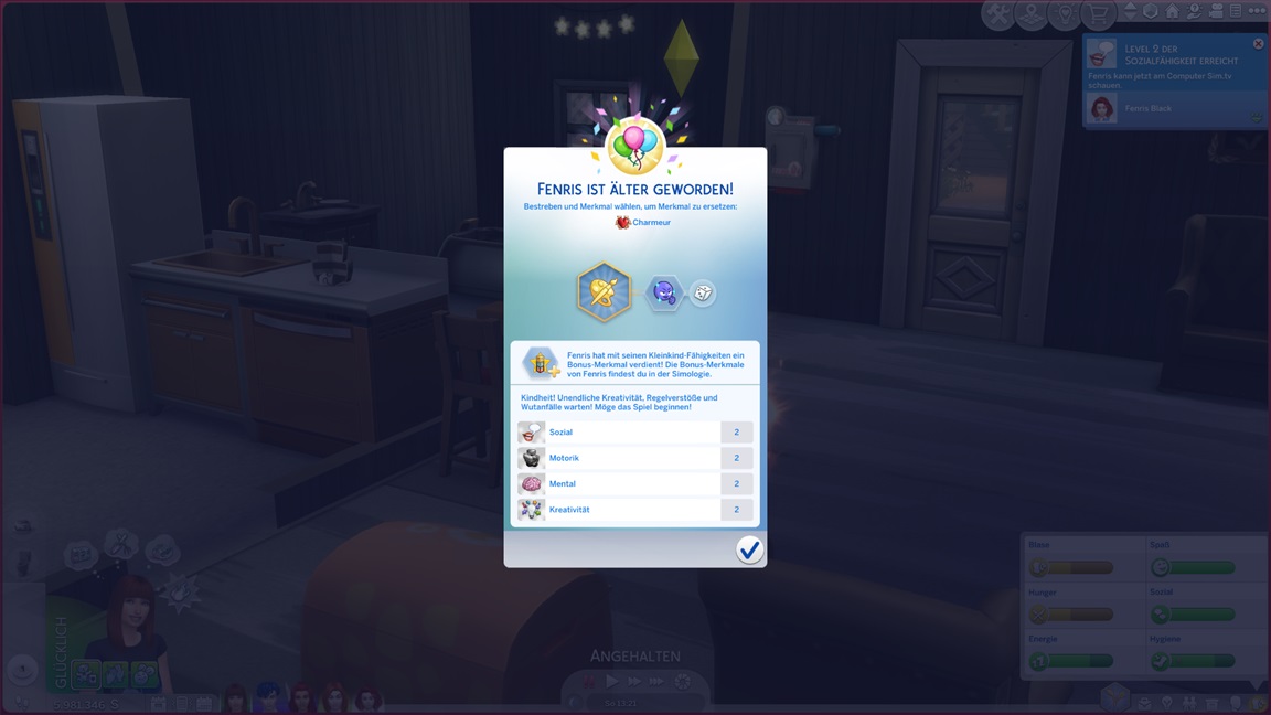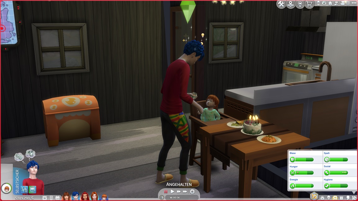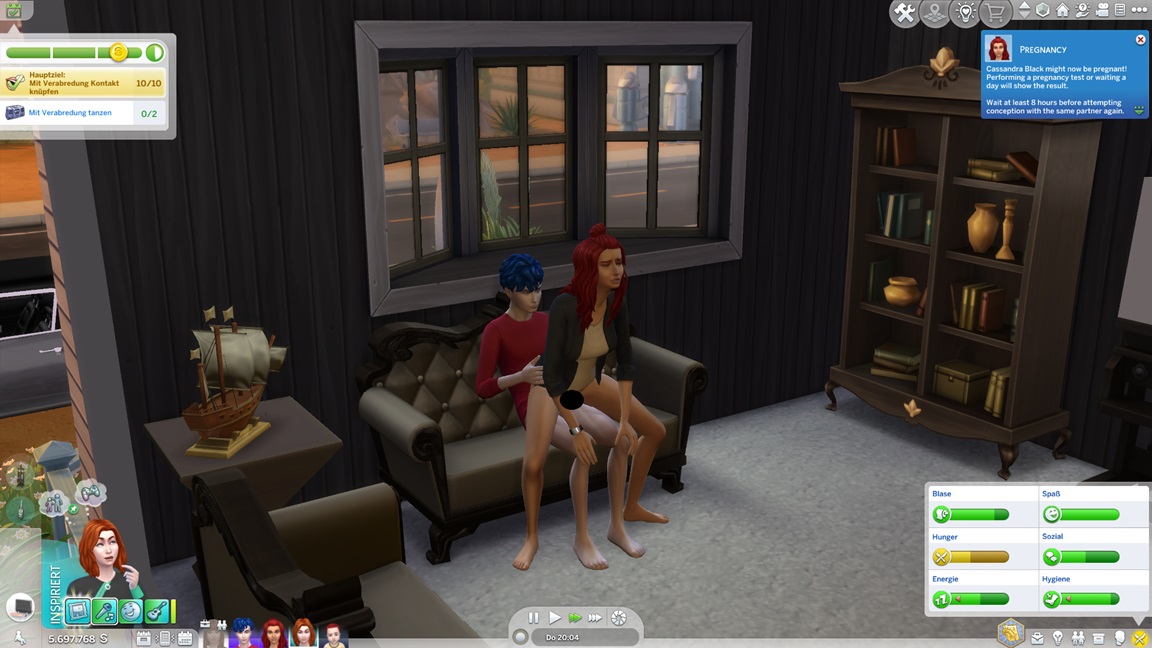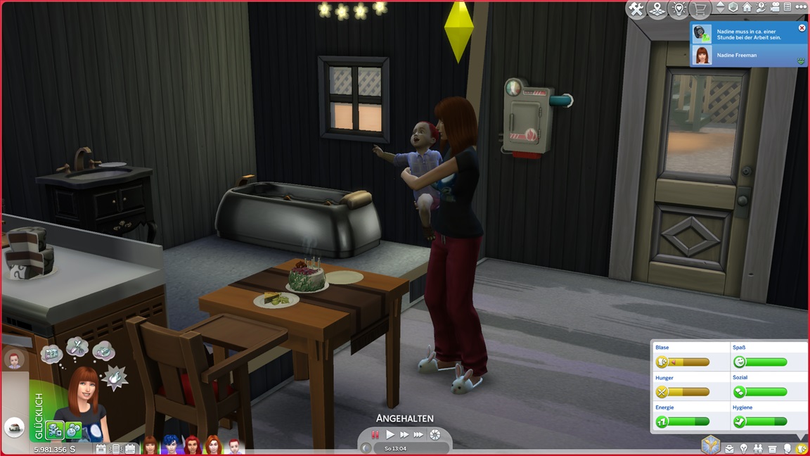 Zum Glück bleibt der von mir ungewollte Nachwuchs aus. Nadine schließt ihre Toast-Bestrebung (dank Konsolenhilfe wegen des Sensenmanns) ab...