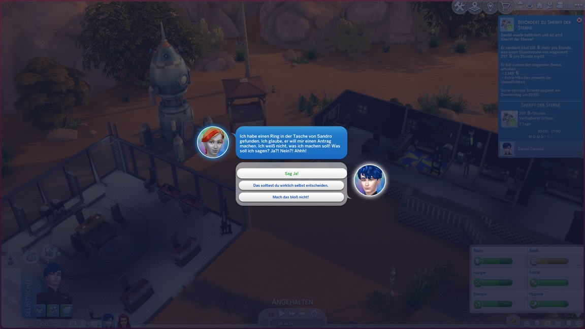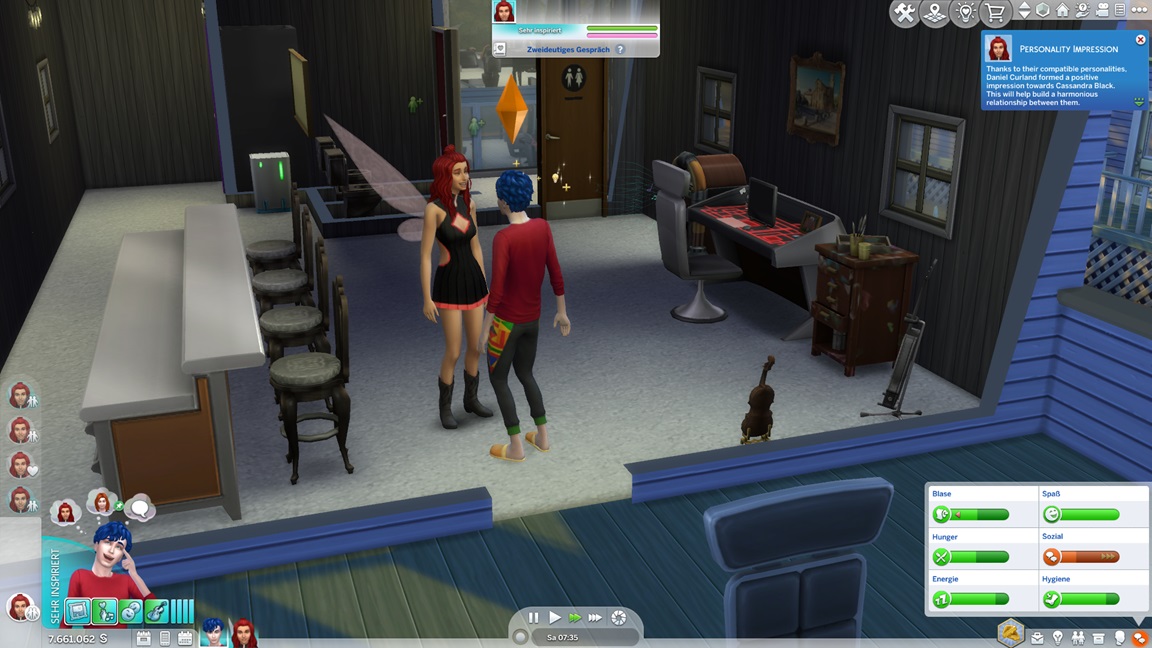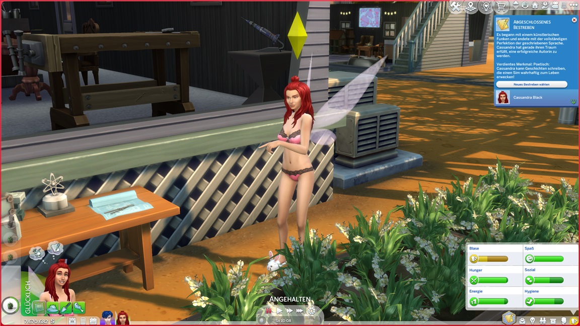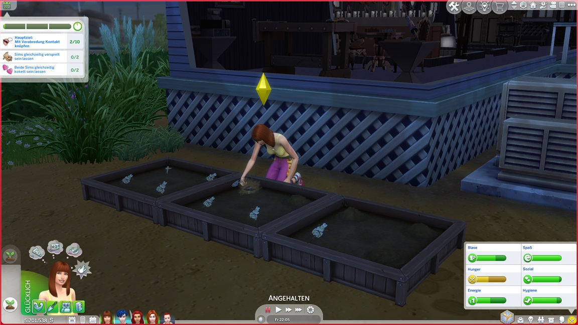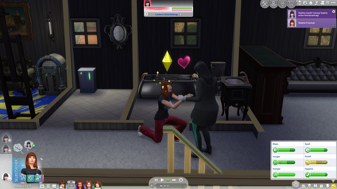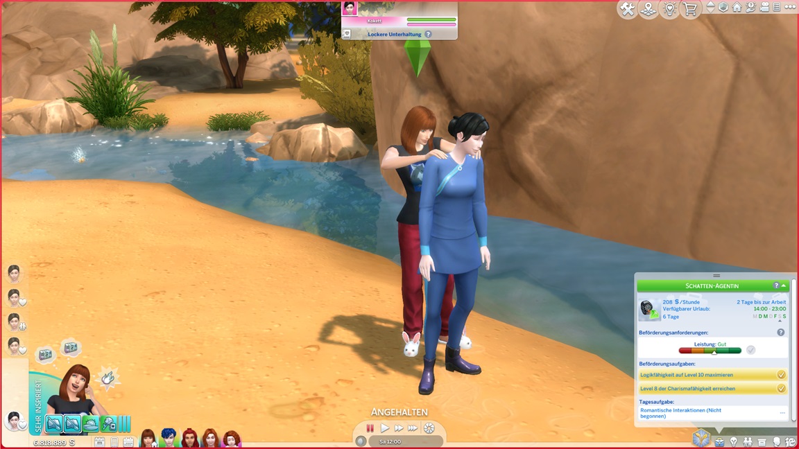 Nadine benötigt für die Arbeitsfortschritte romantische Interaktionen, und da die Versuche mit Lisa und Andromeda so krachend scheiterten, ruft sie sich meist ihre Gattin dafür herbei - oder findet sie hier beim Angeln.